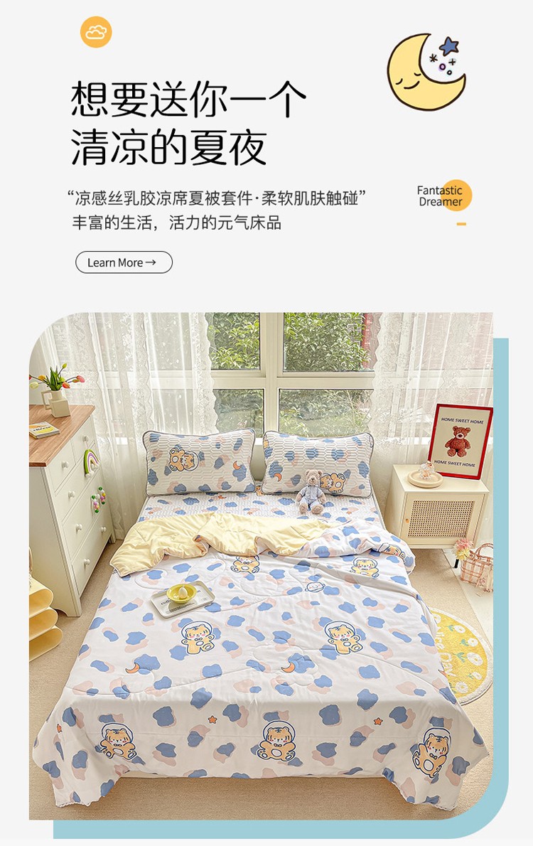 • 91家纺网 家纺一手货源 找家纺 寐居 2022新款乳胶凉席水洗棉夏被三件套四件套 豹纹虎