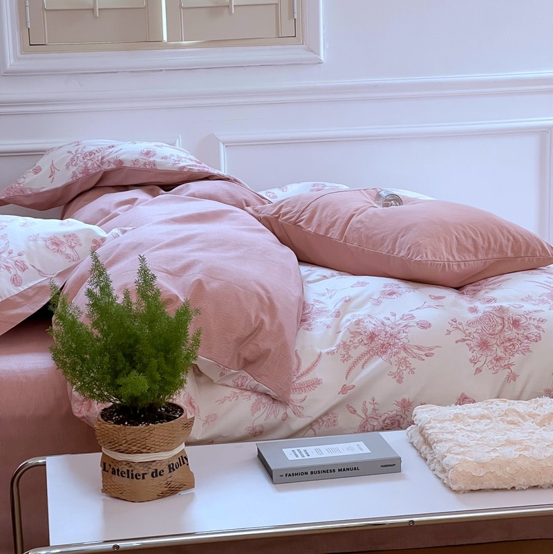 昔可2022新款轻奢dior风四件套 蝴蝶玫瑰 粉