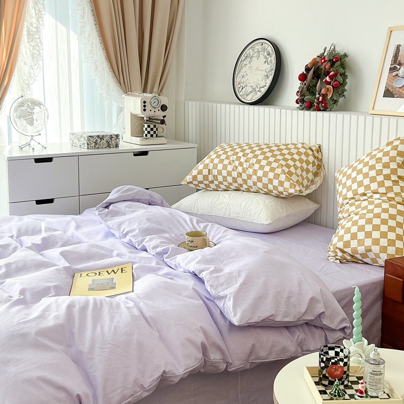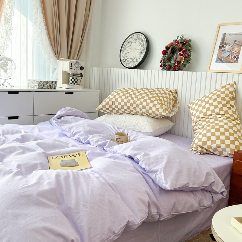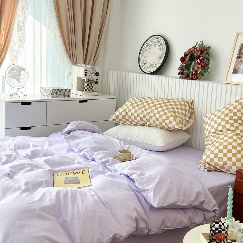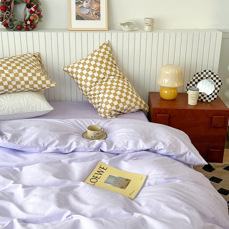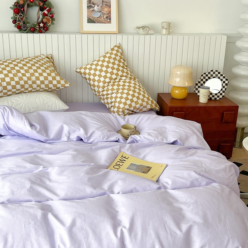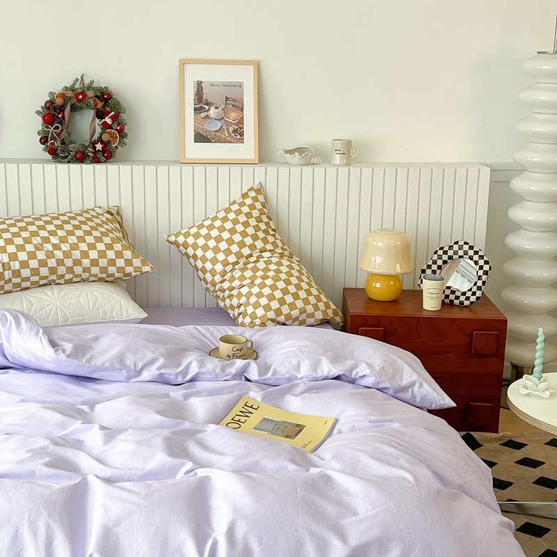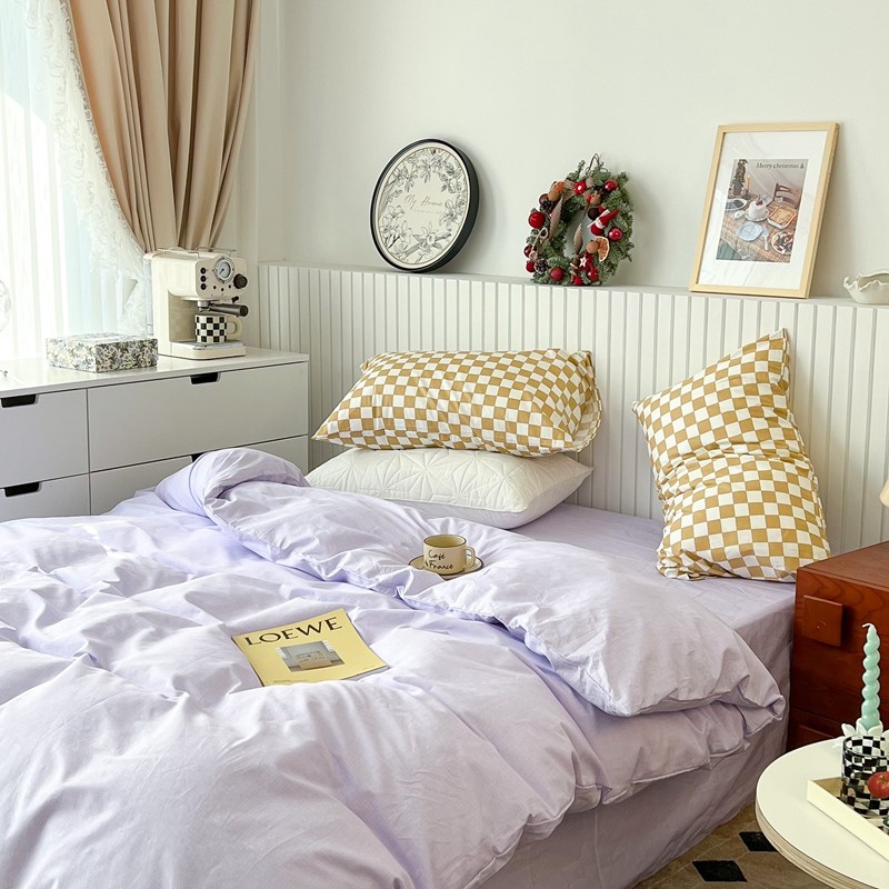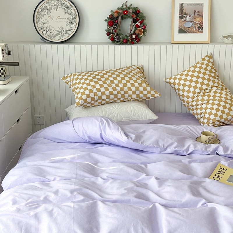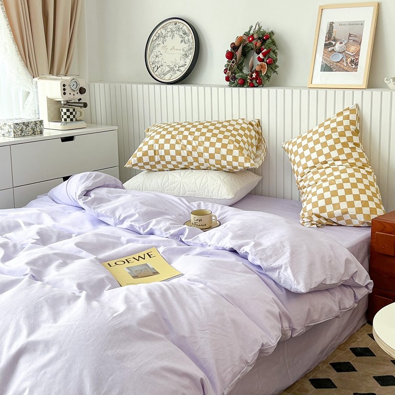 昔可2022新款混搭纯色棋盘格套件四件套梦幻紫黄棋盘