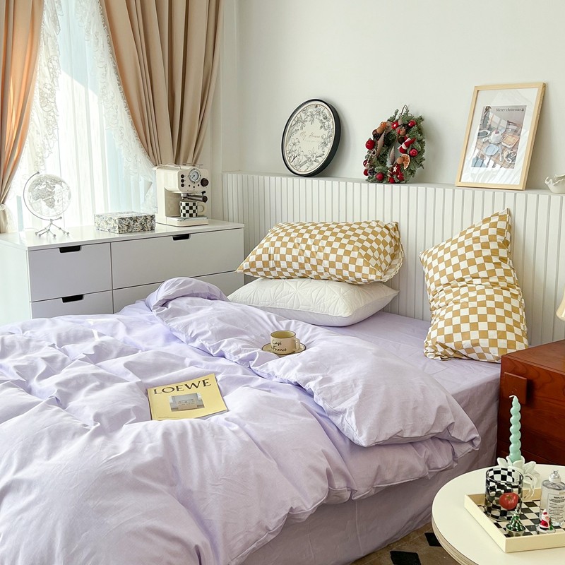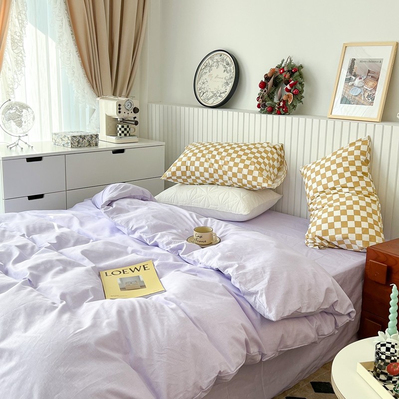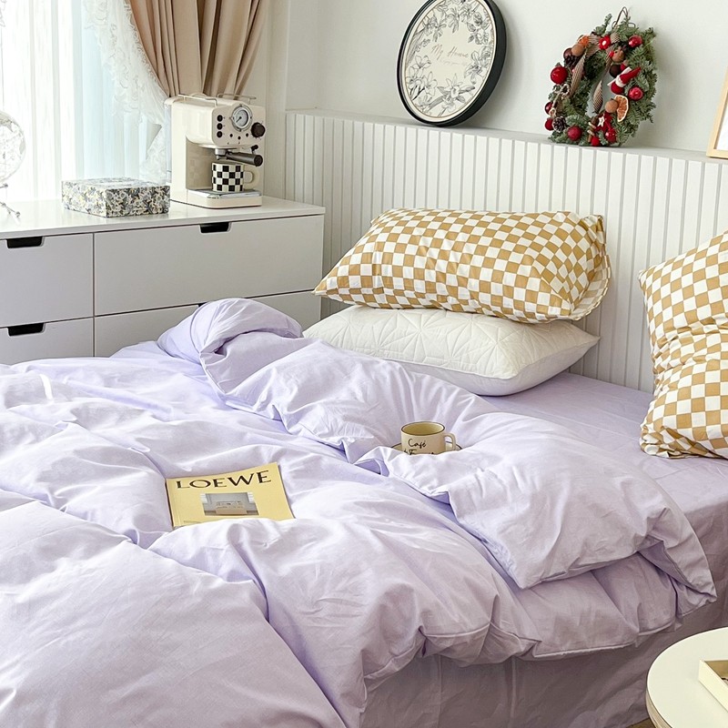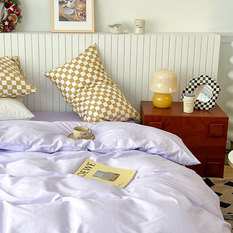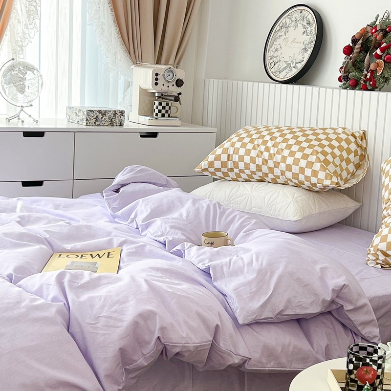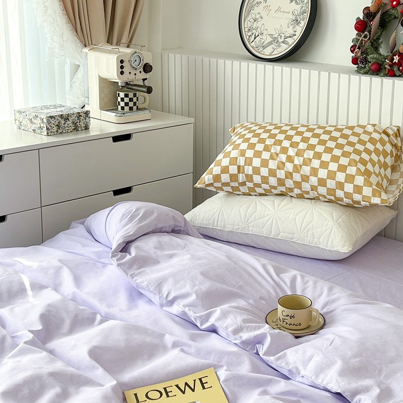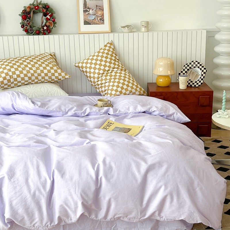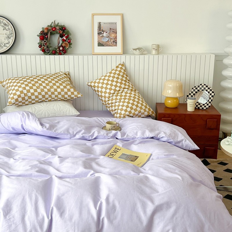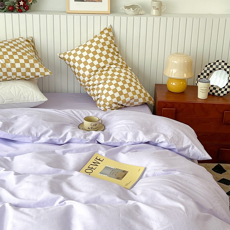 昔可2022新款混搭纯色棋盘格套件四件套梦幻紫黄棋盘