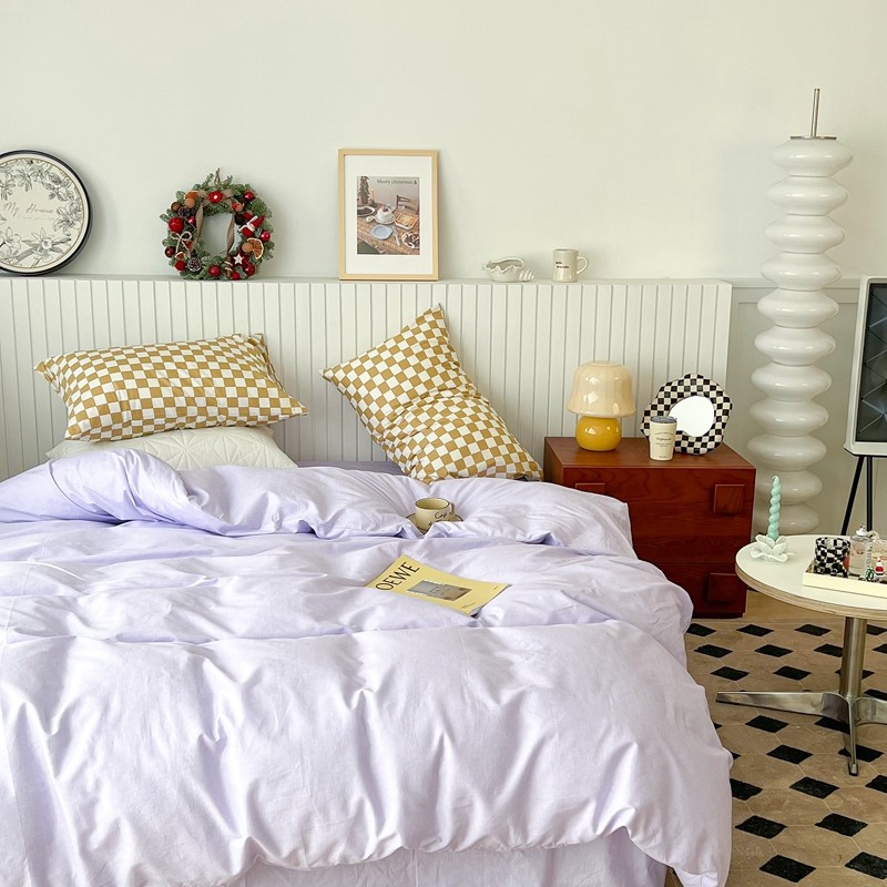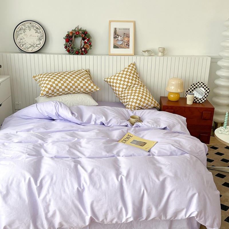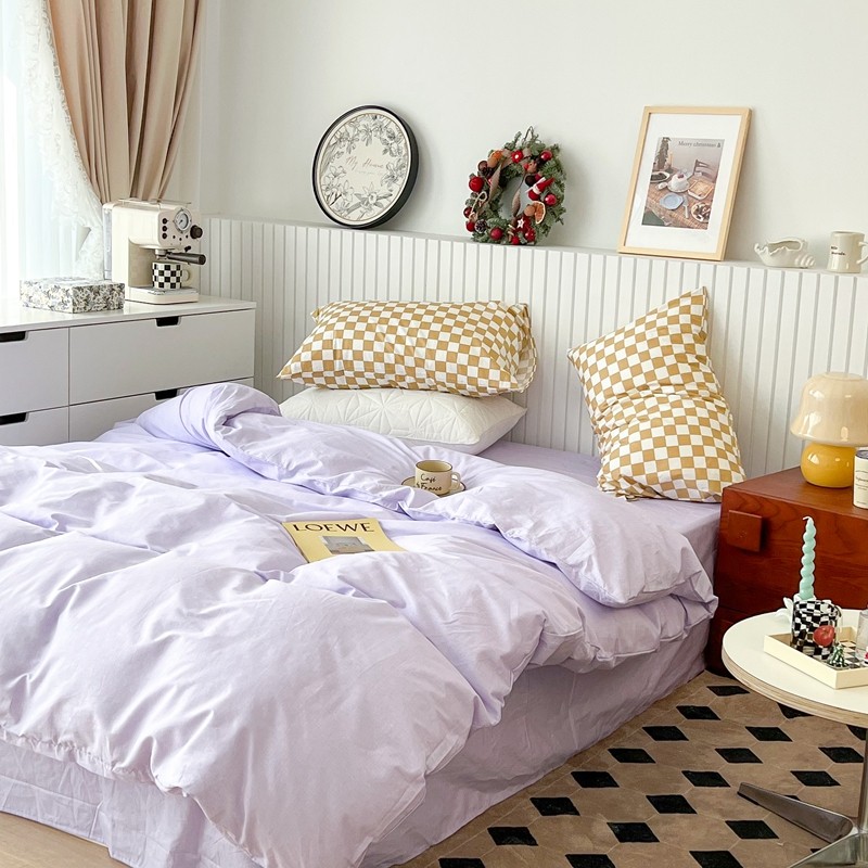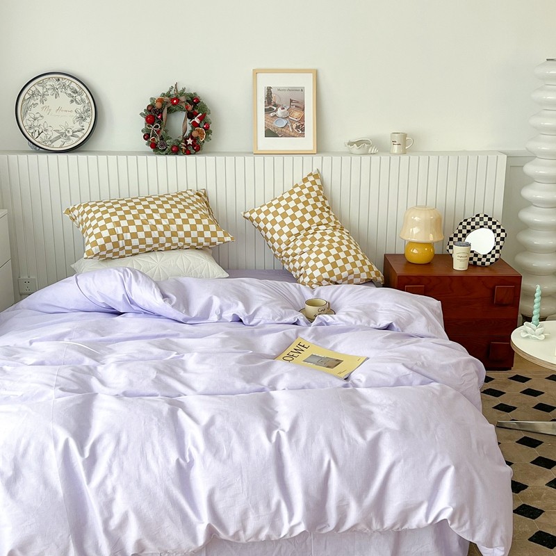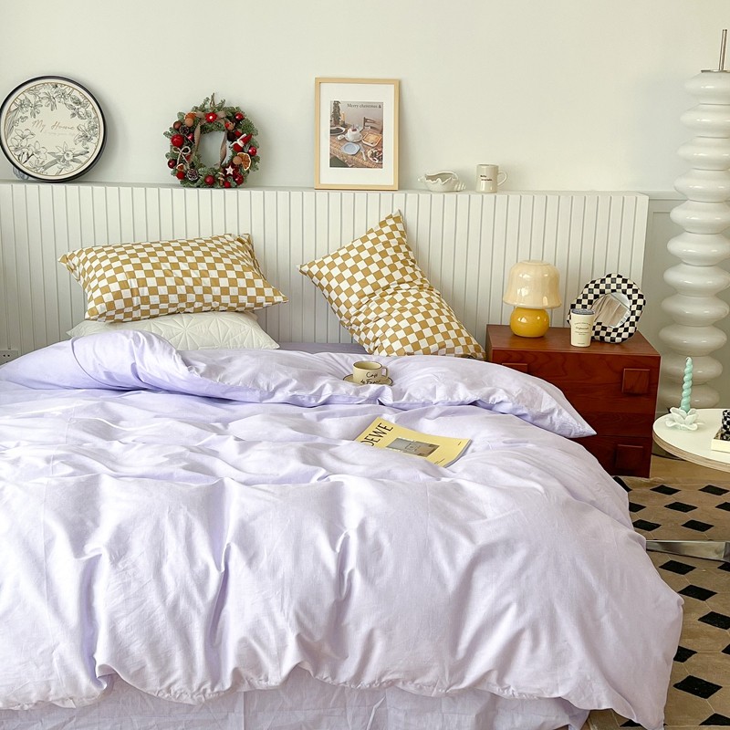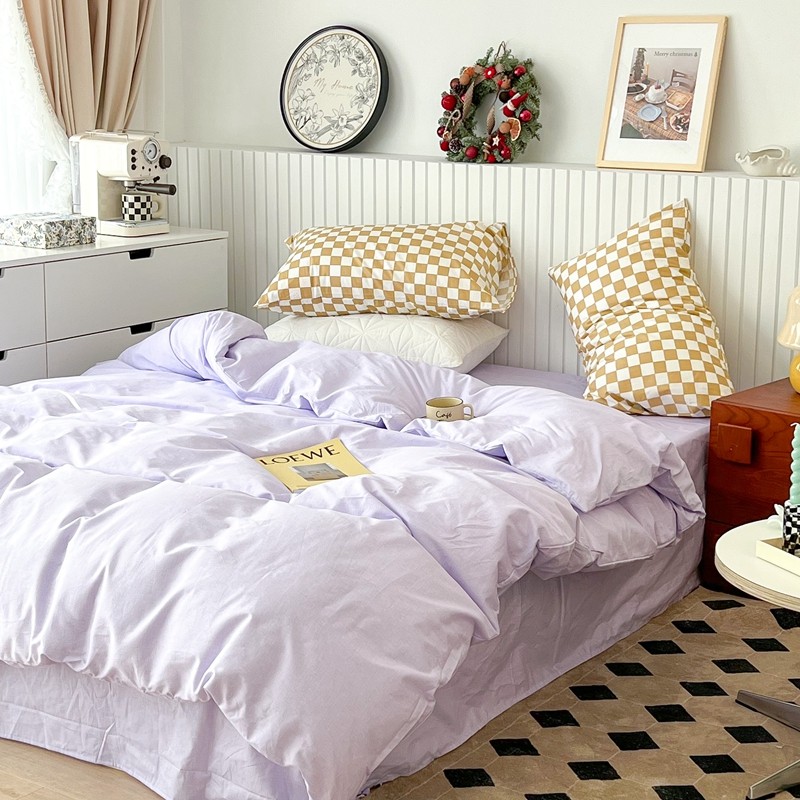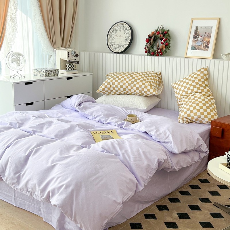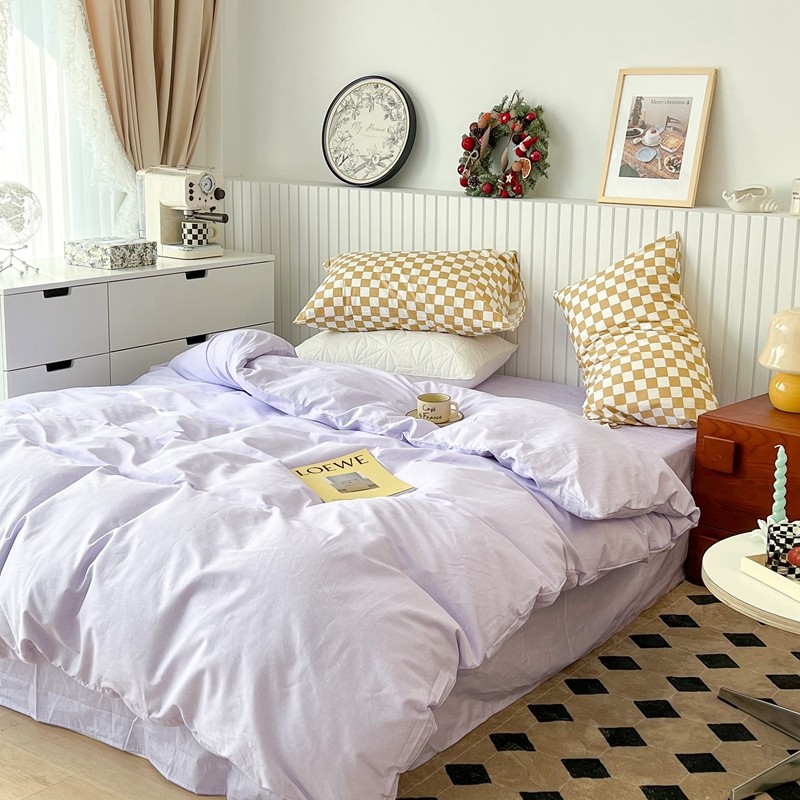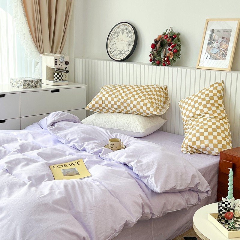 昔可2022新款混搭纯色棋盘格套件四件套梦幻紫黄棋盘