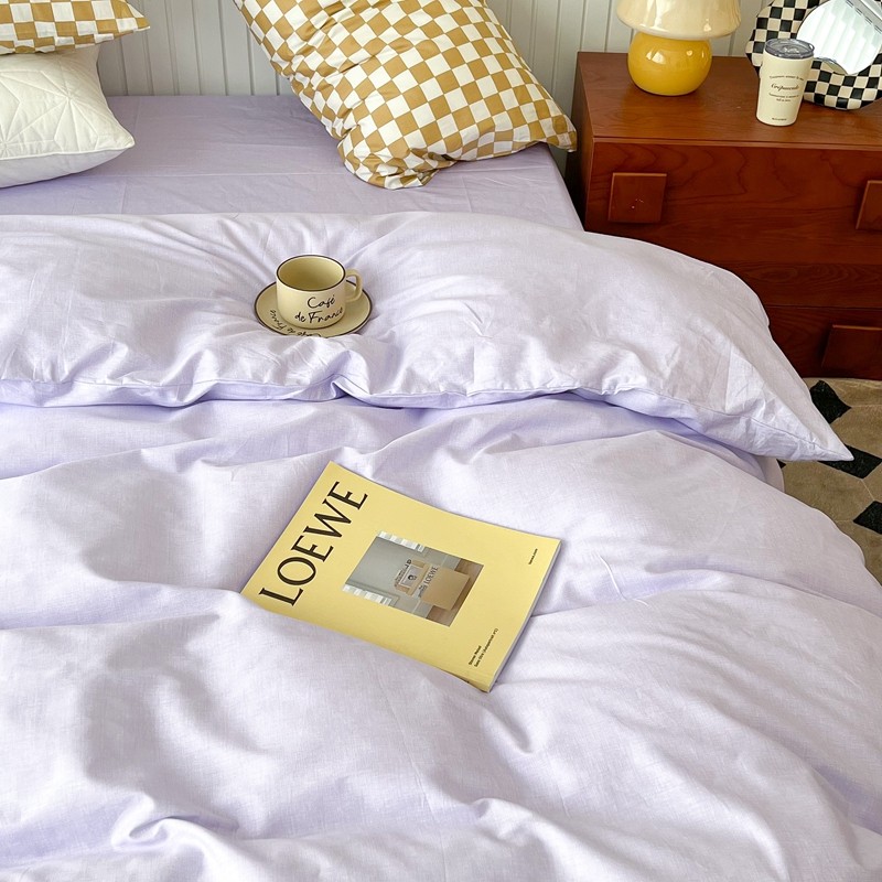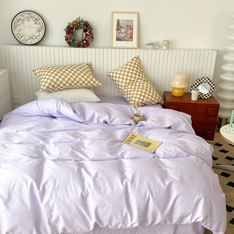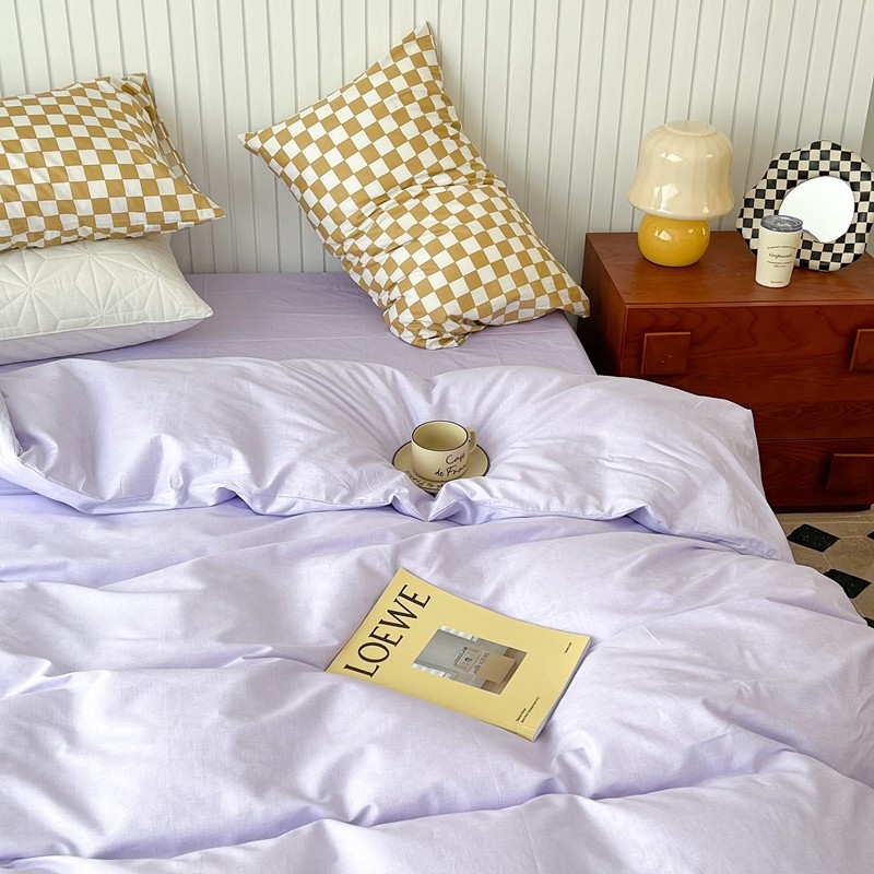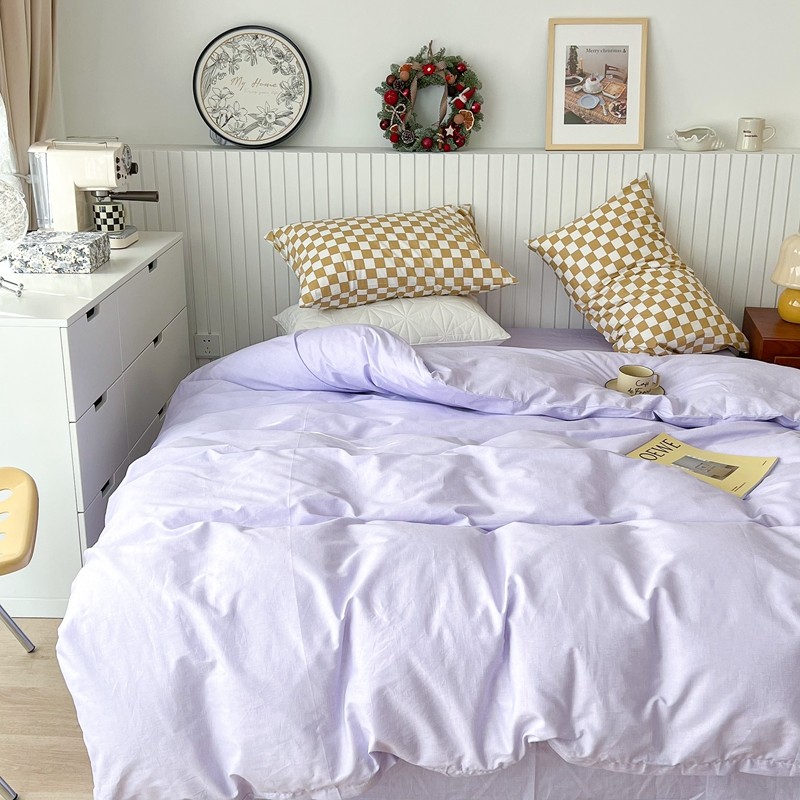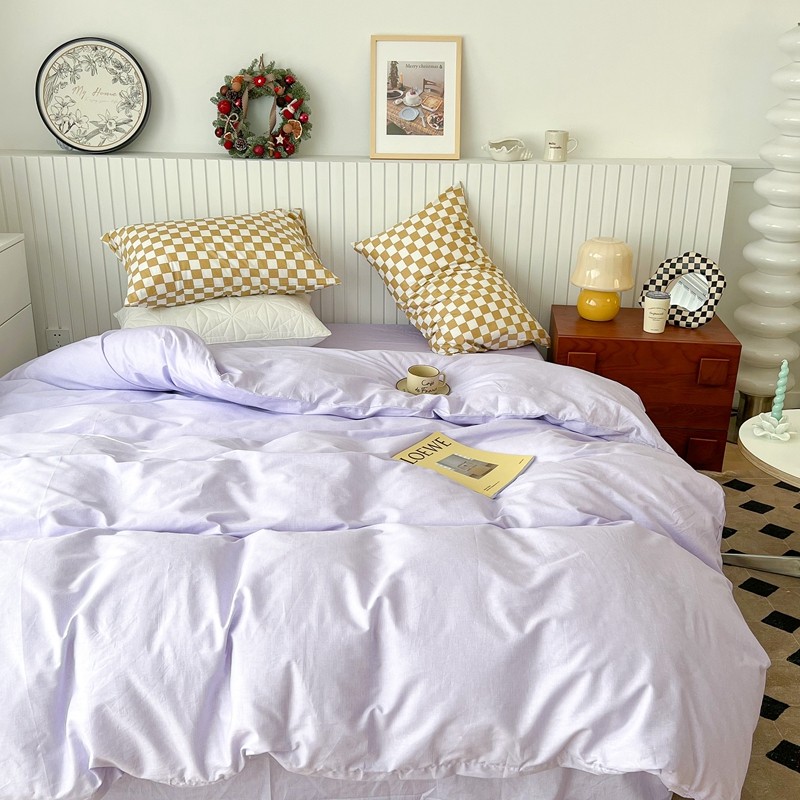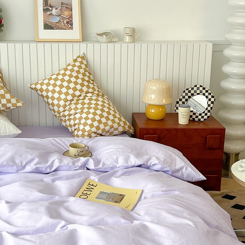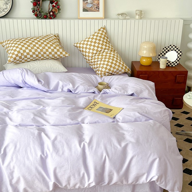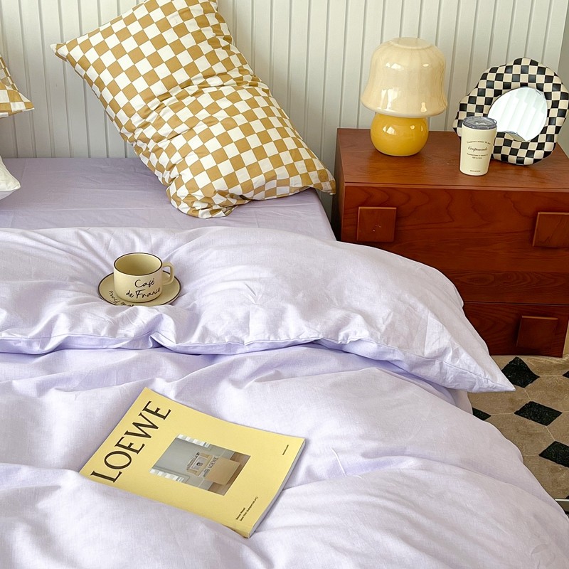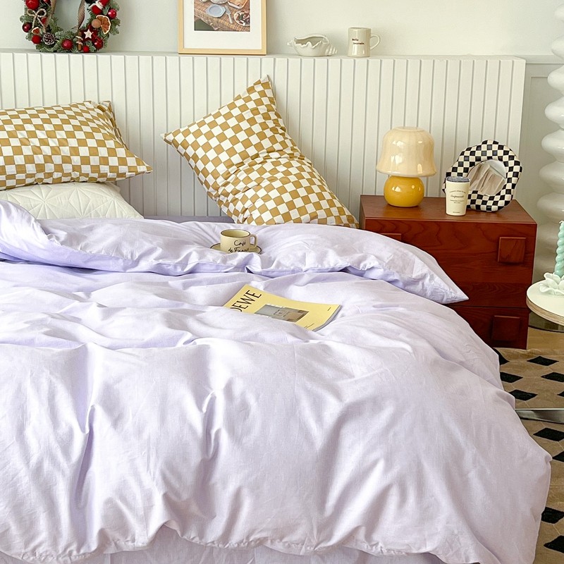 昔可2022新款混搭纯色棋盘格套件四件套梦幻紫黄棋盘