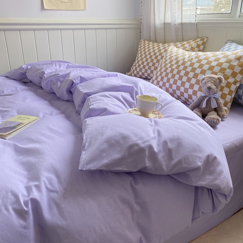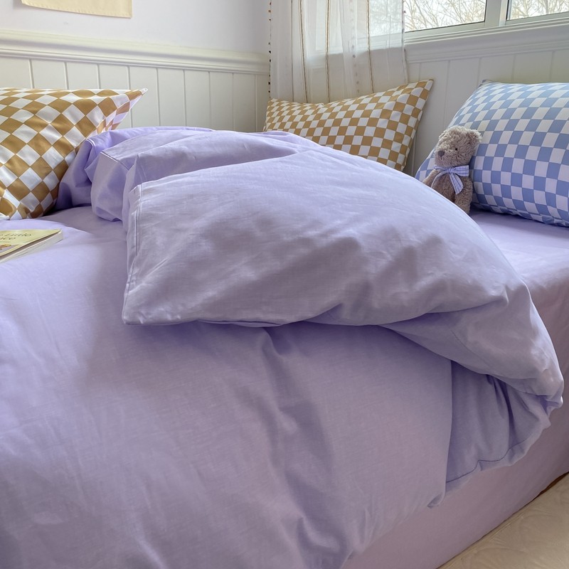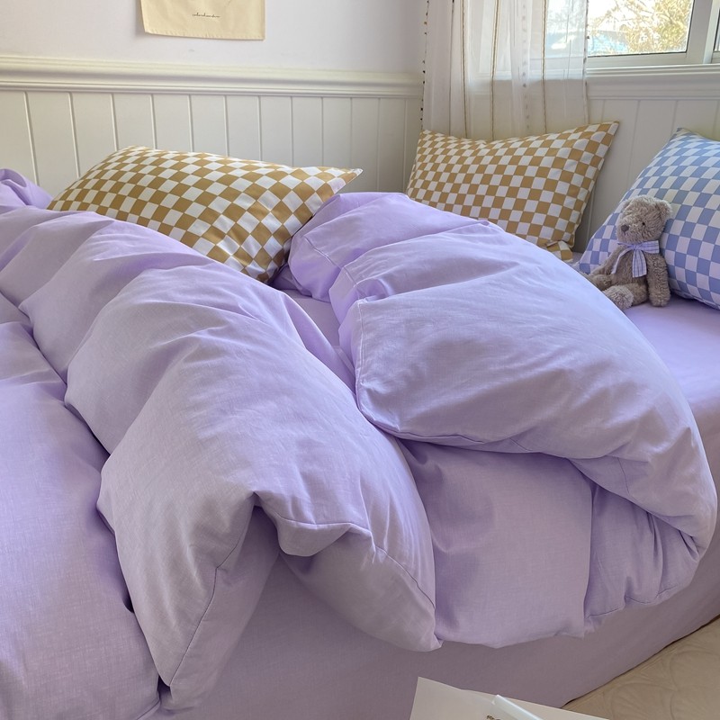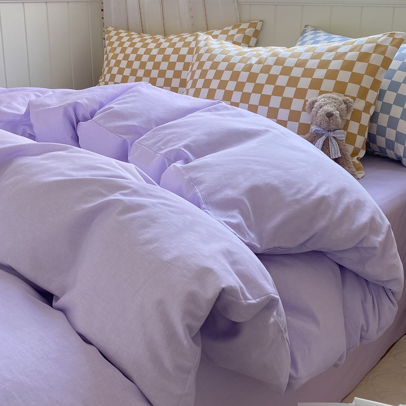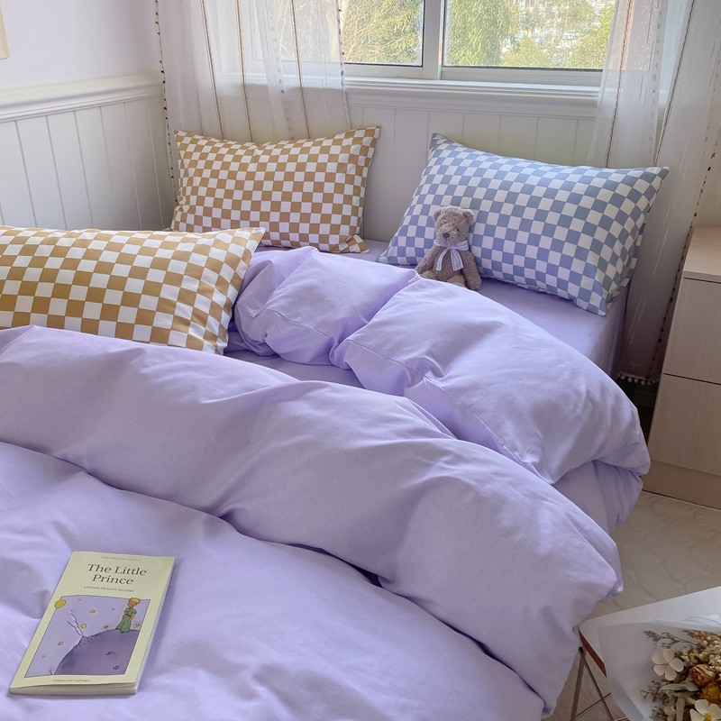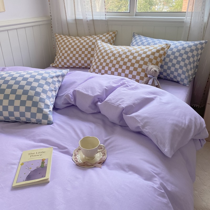 昔可2022新款混搭纯色棋盘格套件四件套 梦幻紫黄棋盘