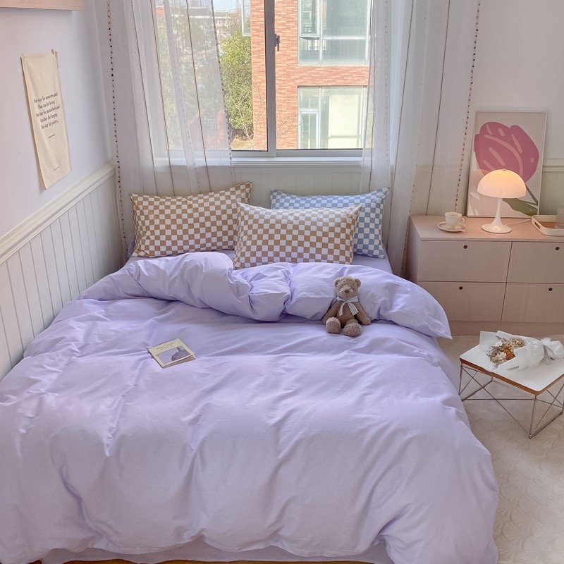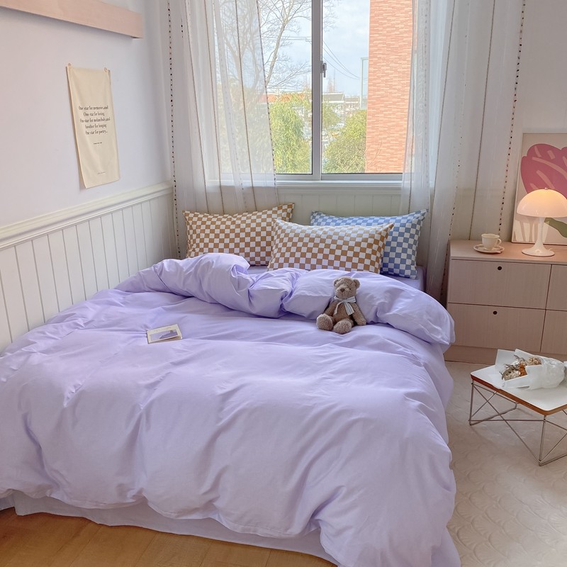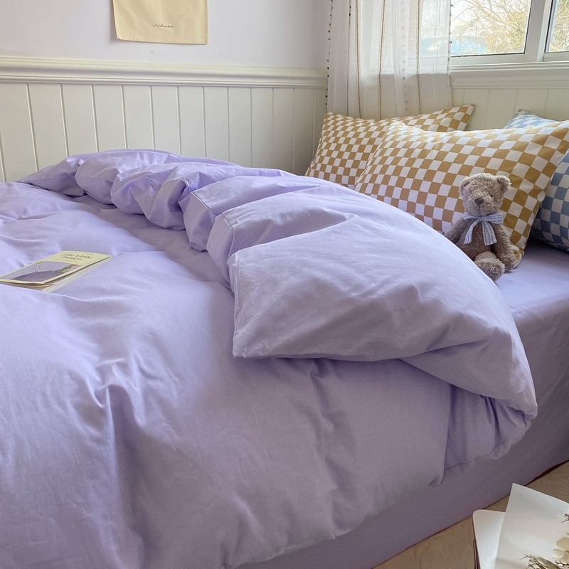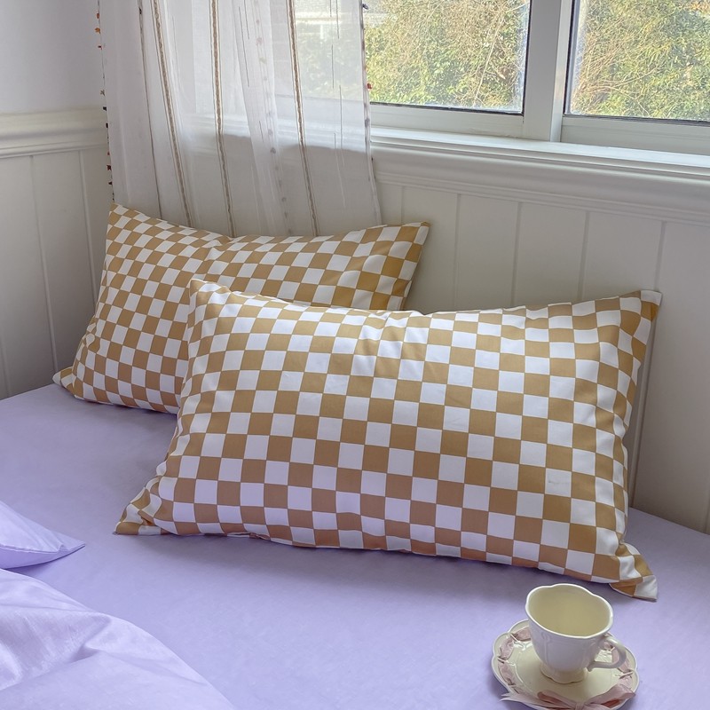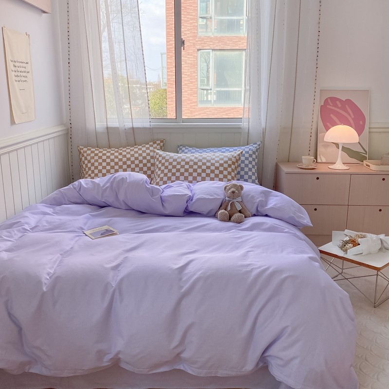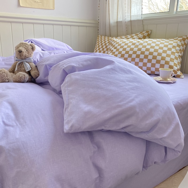 昔可2022新款混搭纯色棋盘格套件四件套 梦幻紫黄棋盘