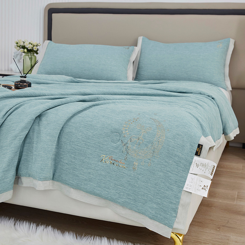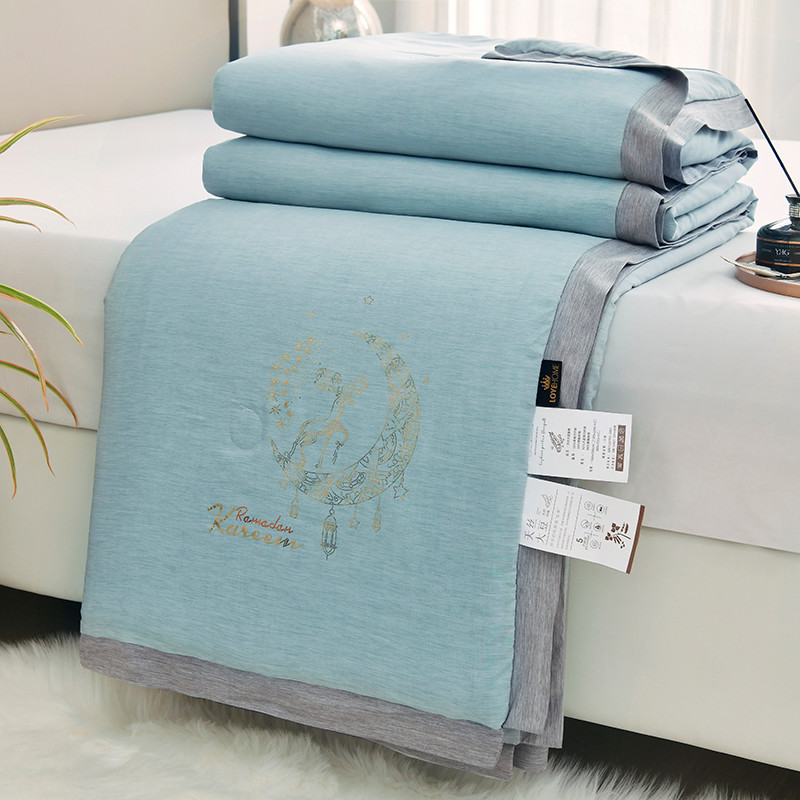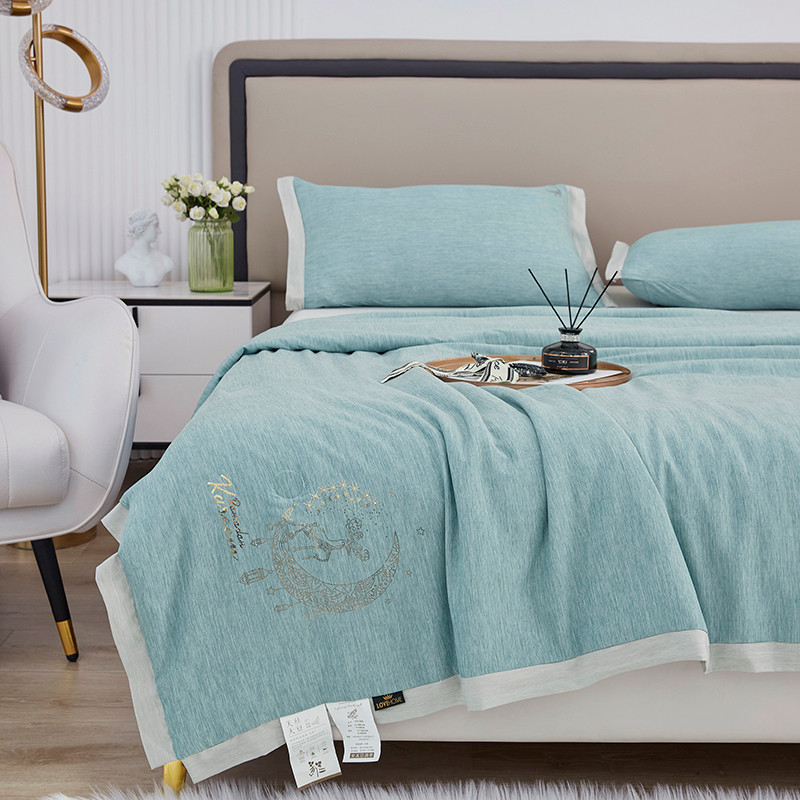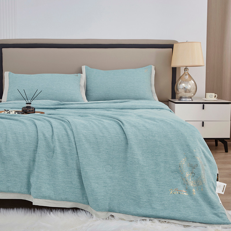 当前位置: 91家纺网 > 商品网购 > 被子 > 莱赛尔夏被 > 21度c 2023新款件天丝夏被四套直播夏凉被空调被 天丝-月鹿海蓝色
