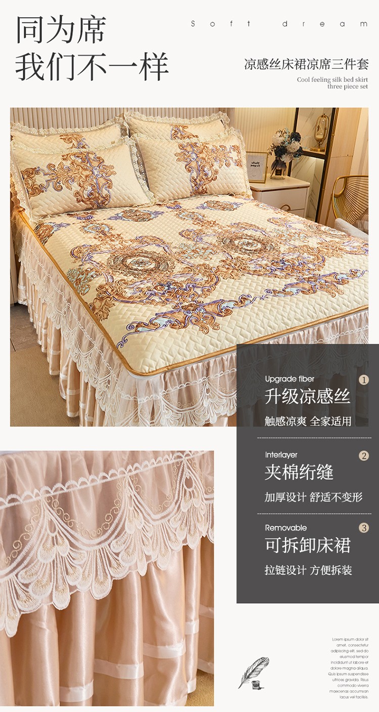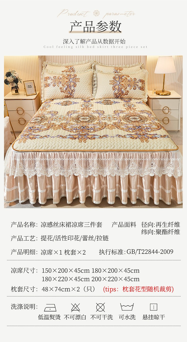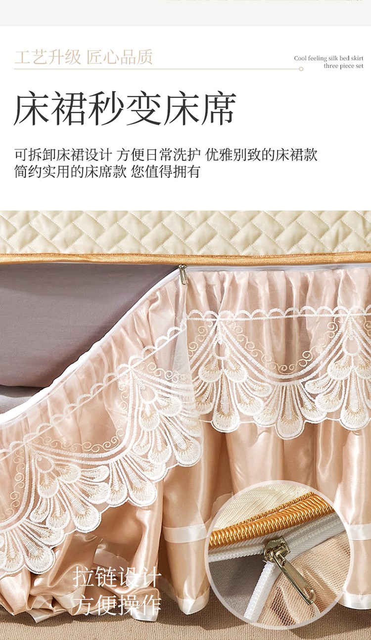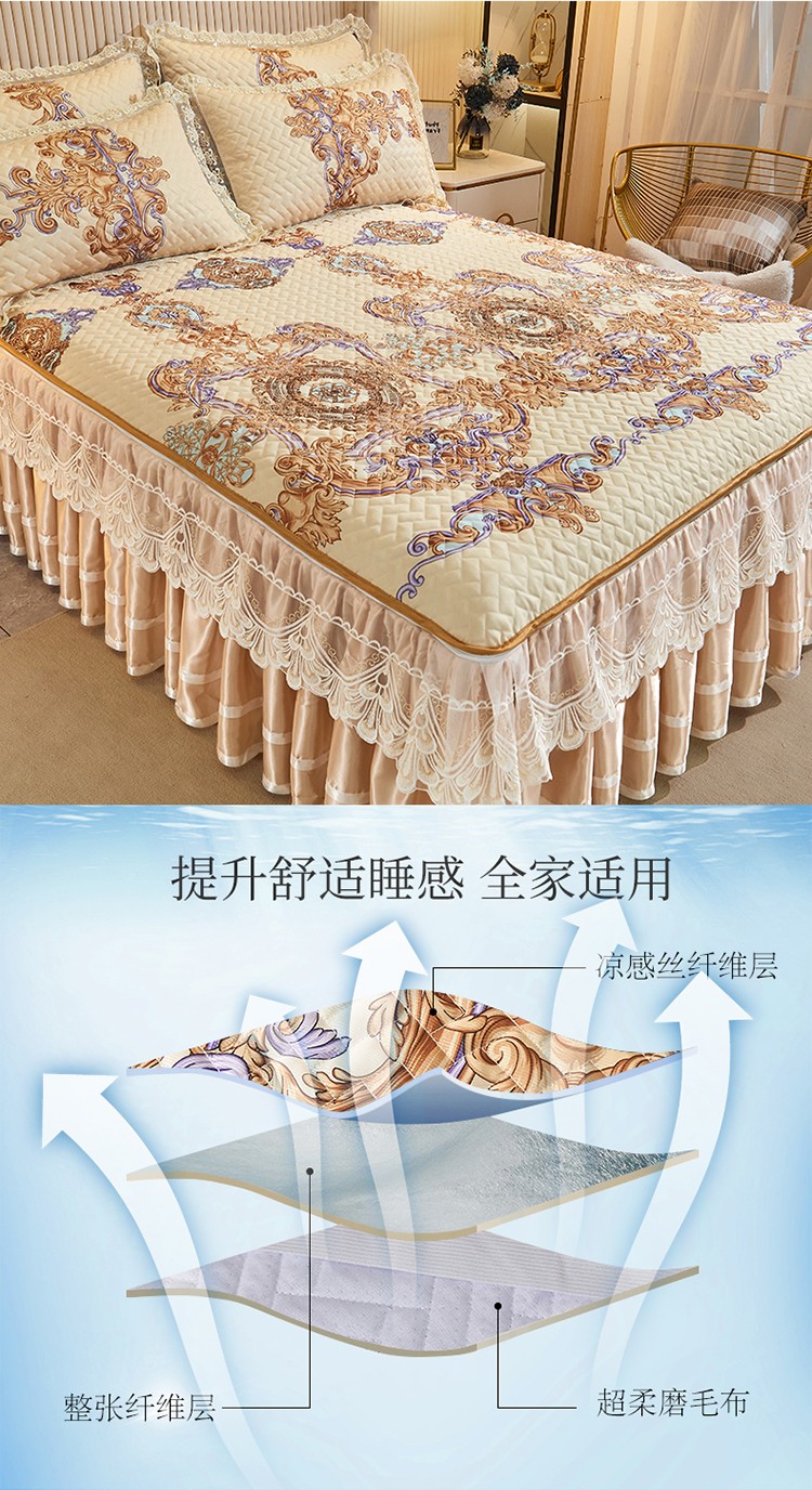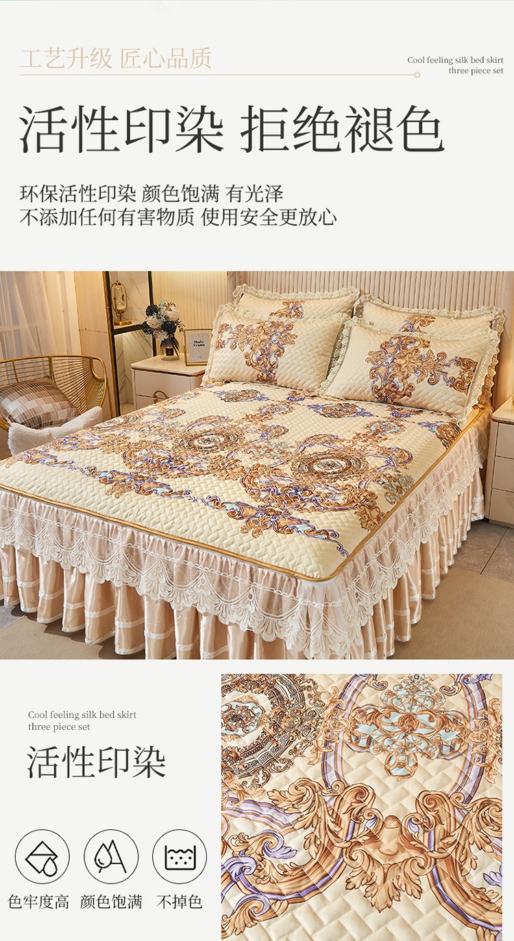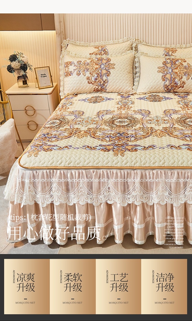 商品名称:(总)网红馆 2025新款凉感丝夹棉绗缝蕾丝床裙款冰丝席三件套