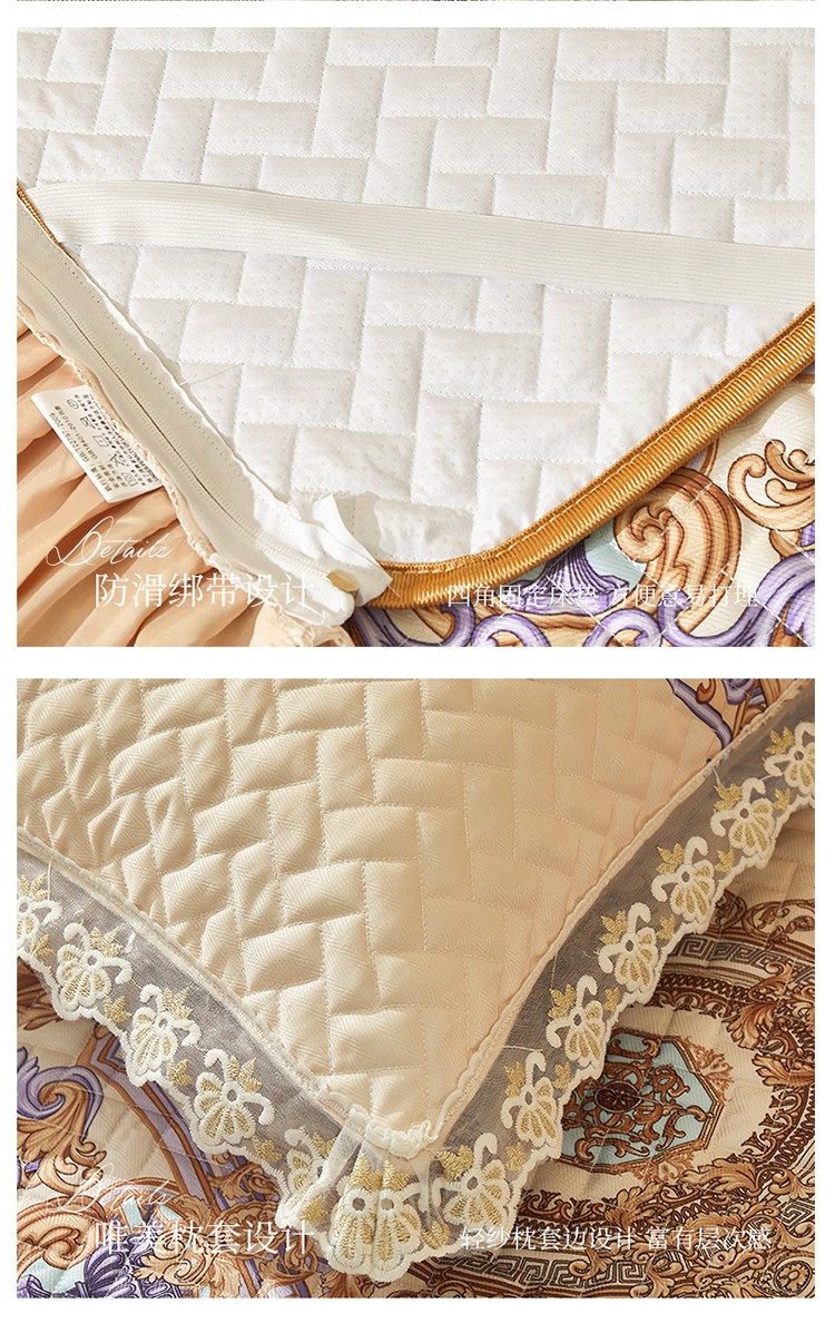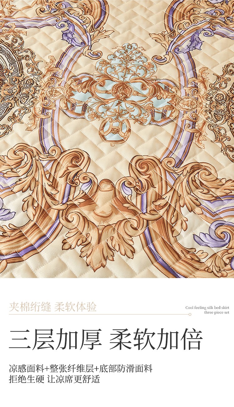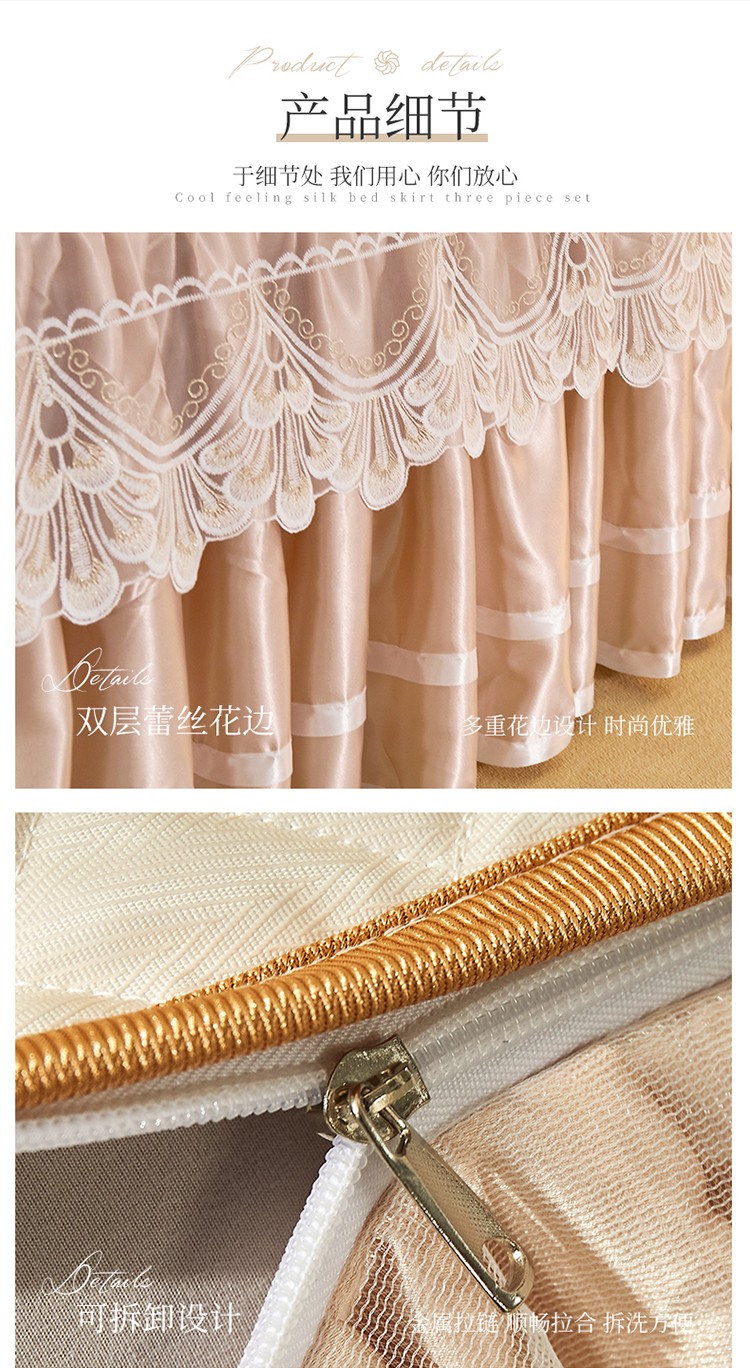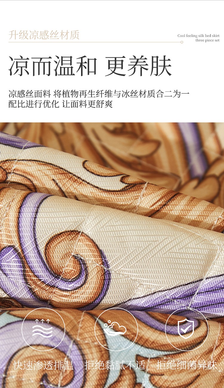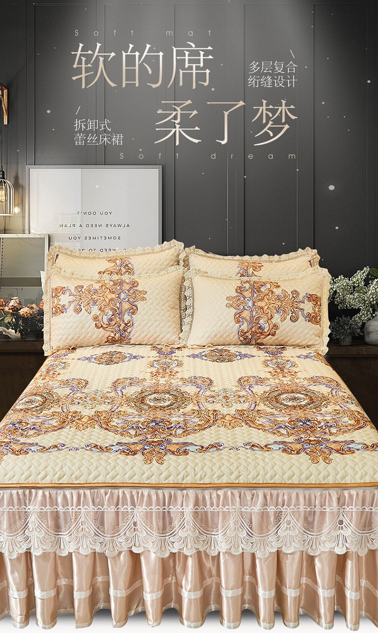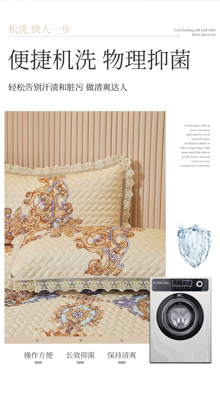 商品名称:(总)网红馆 2025新款凉感丝夹棉绗缝蕾丝床裙款冰丝席三件套