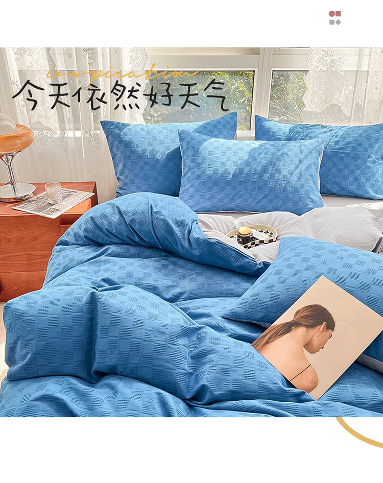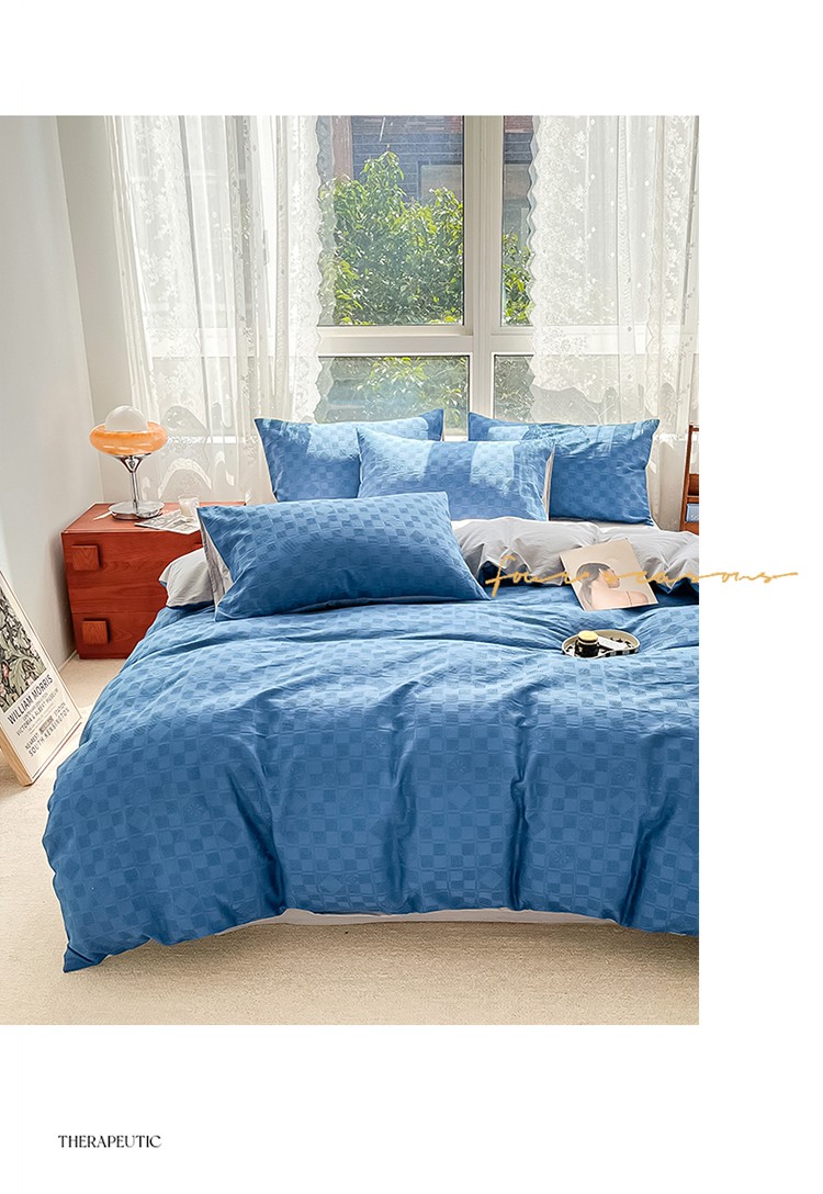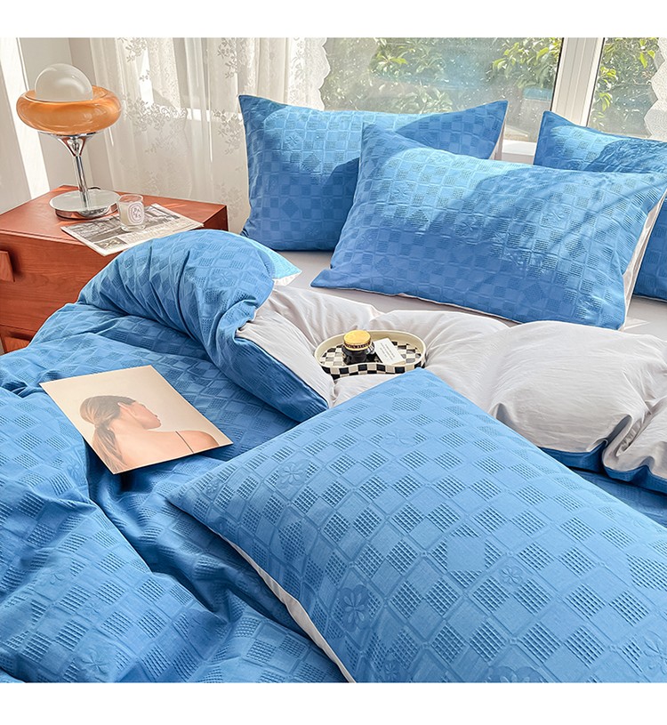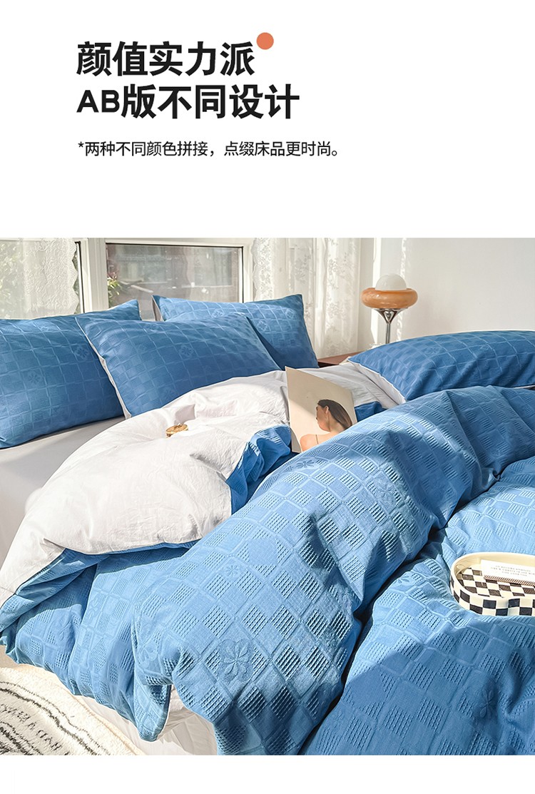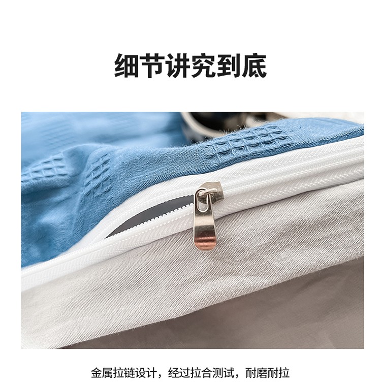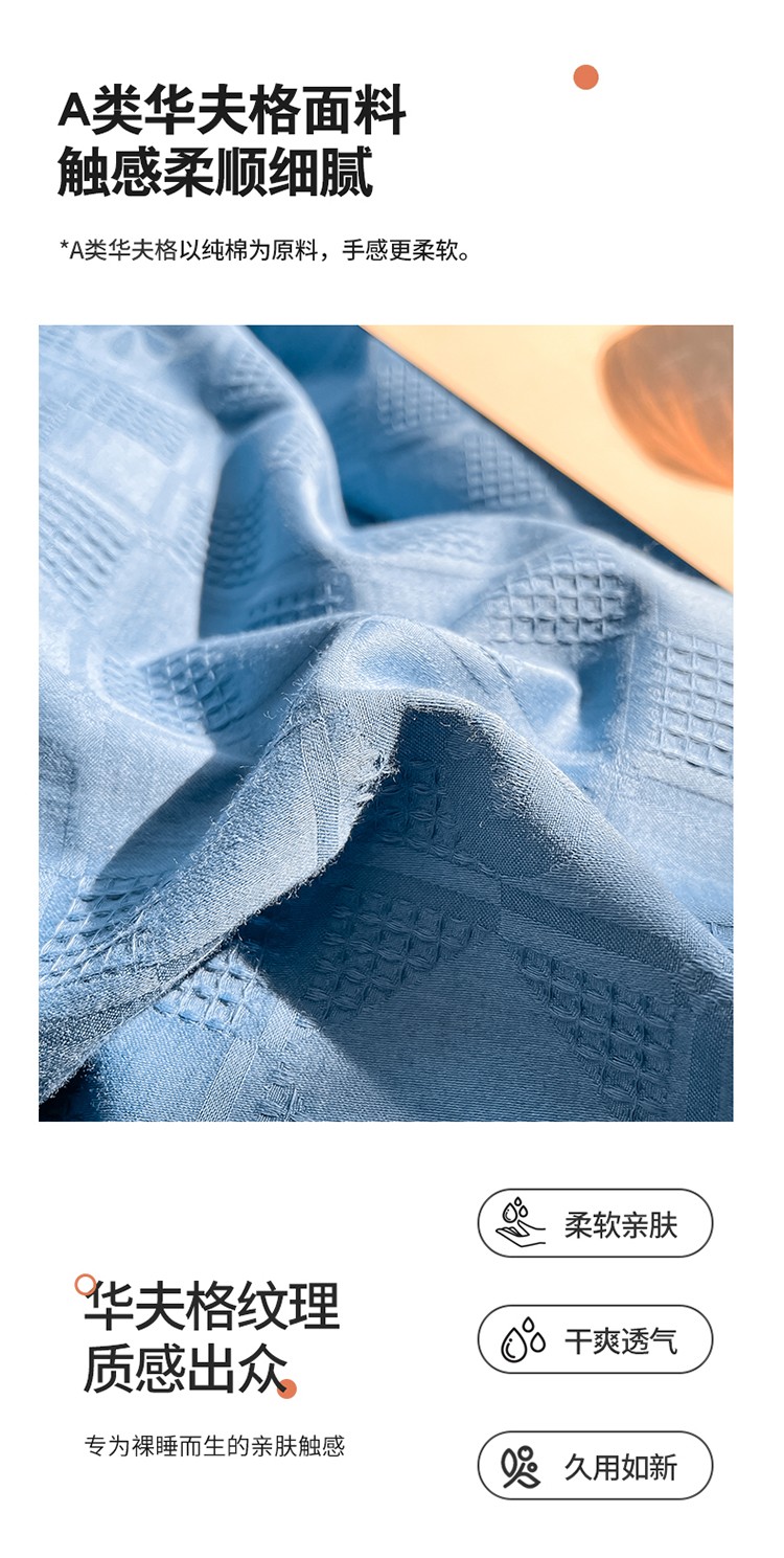 商品名称:蓝米卡夫A类60S华夫格拼色款全棉系列四件套 米夫格-蓝+浅灰