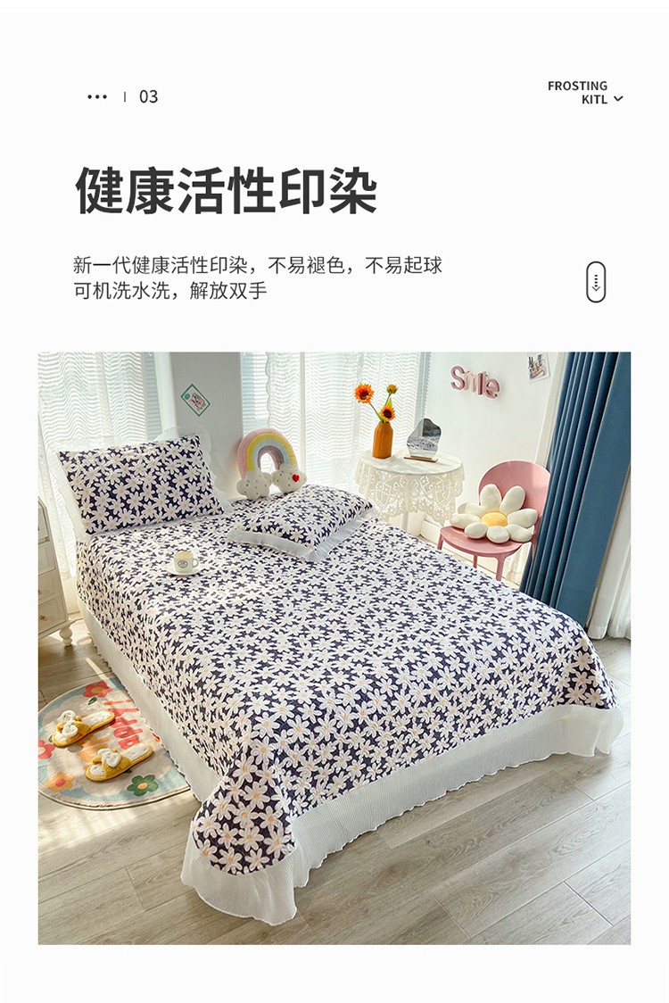 • 91家纺网 家纺一手货源 找家纺 鑫钰 2023全棉印花床盖三件套 蓝馨