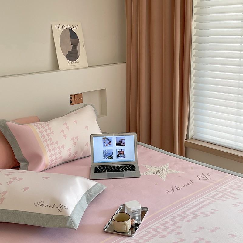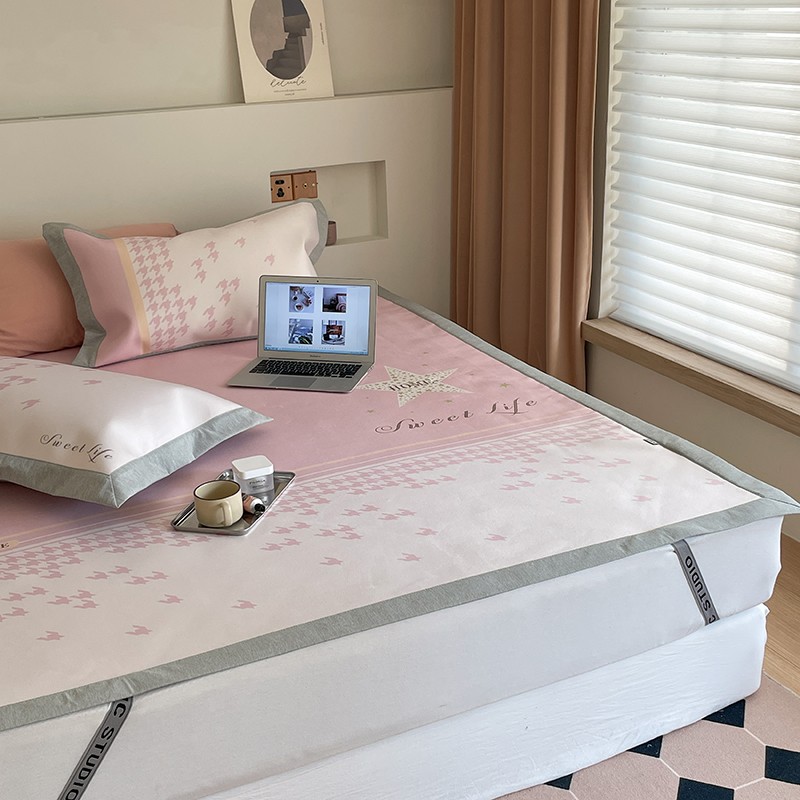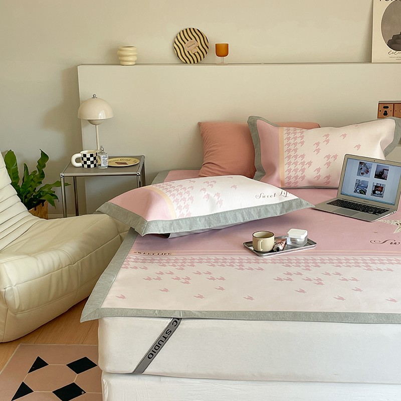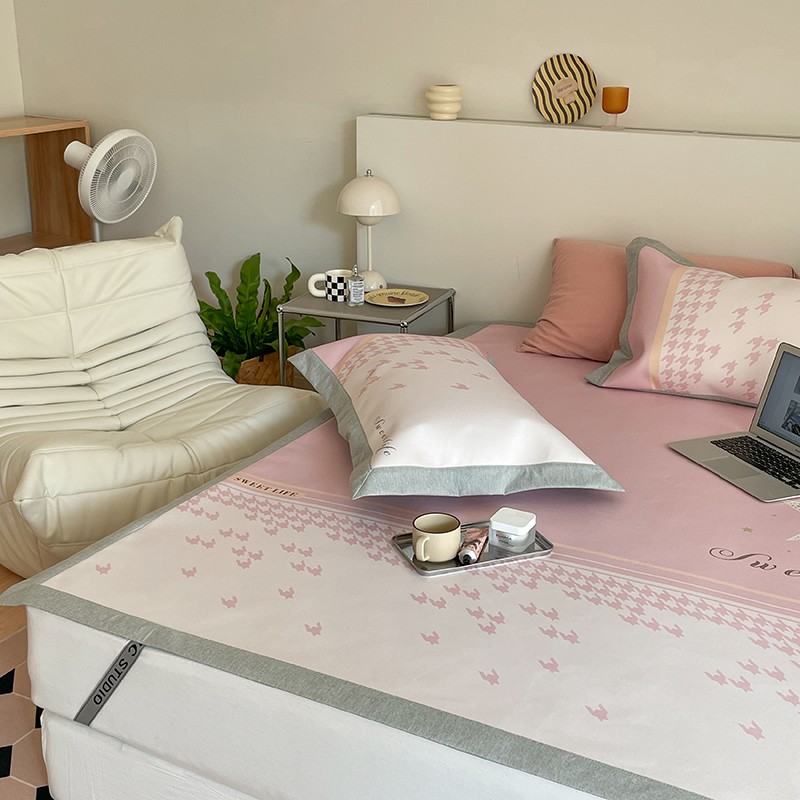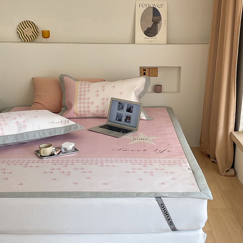 昔可 2022新款高端大版数码印花冰沐丝养生席 星光闪闪-粉