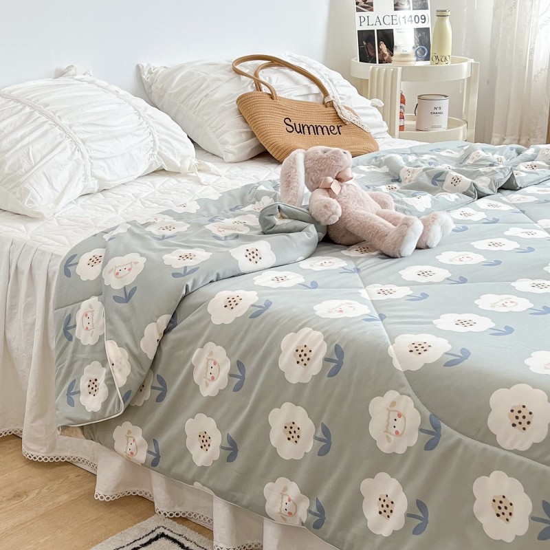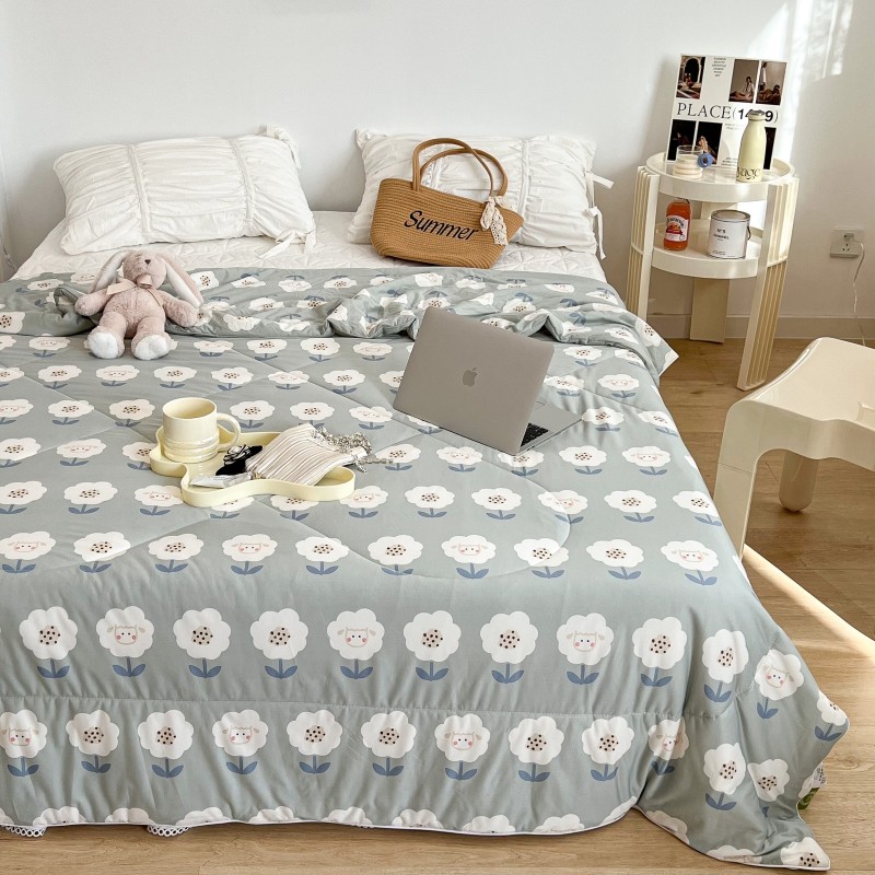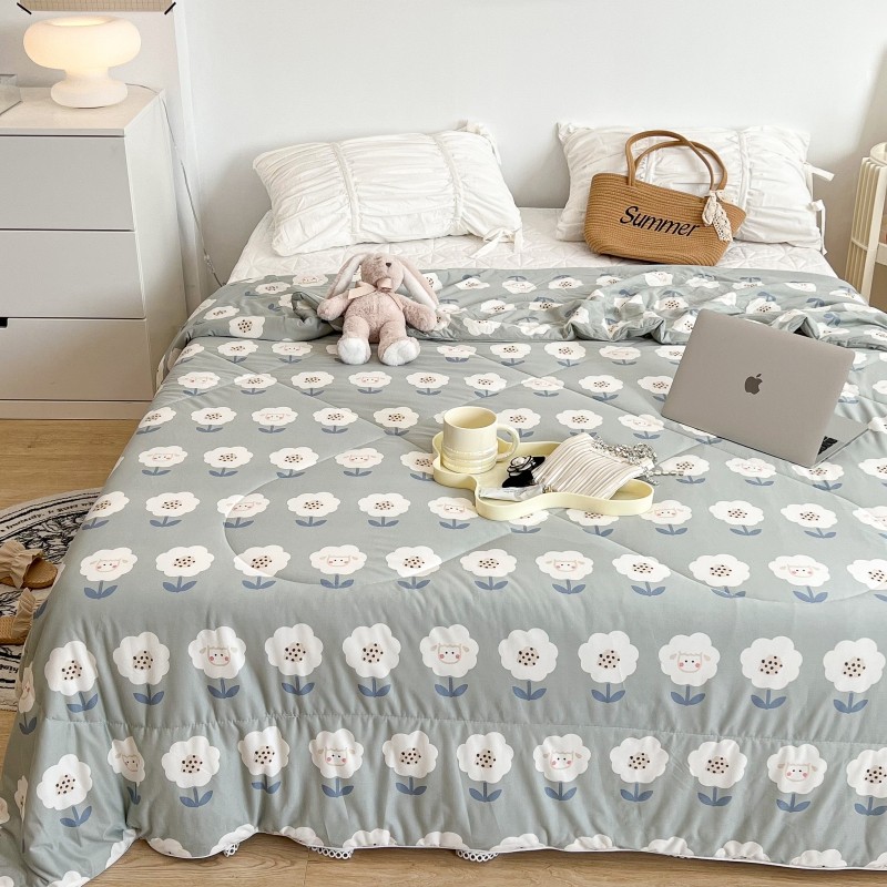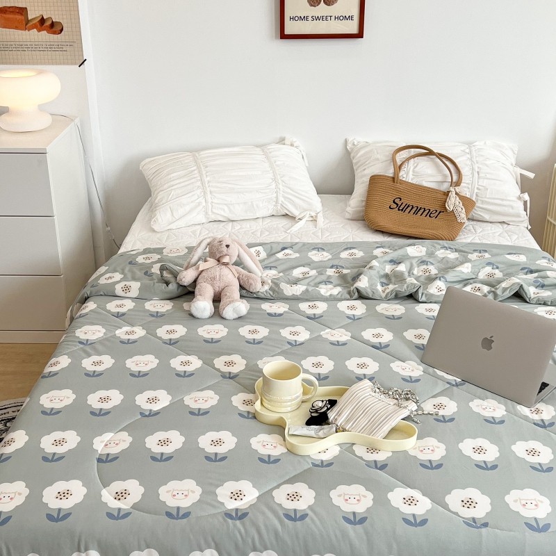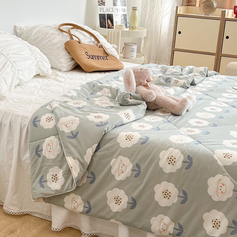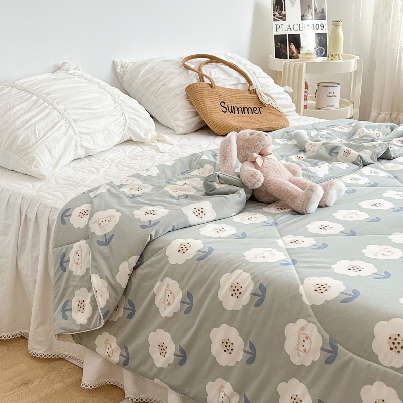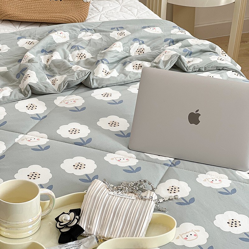 昔可 2022新款卡通印花牛奶丝针织夏被 花花小羊