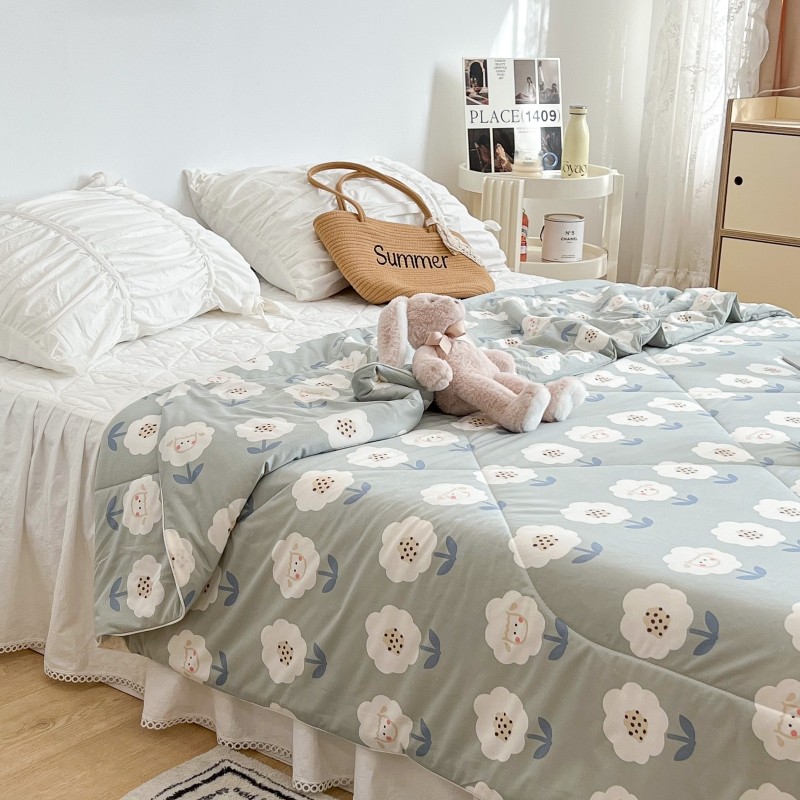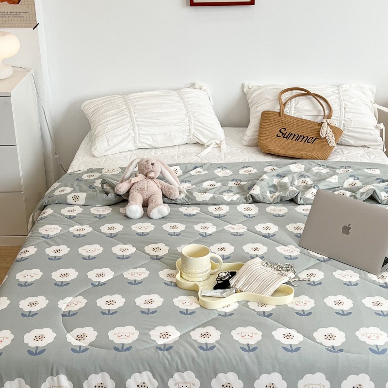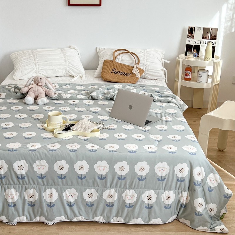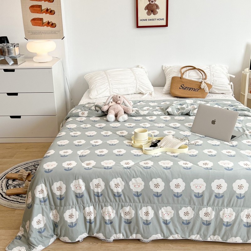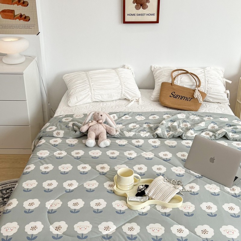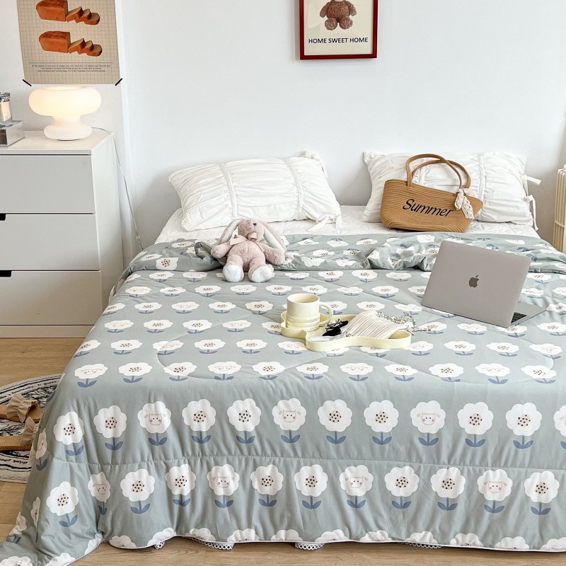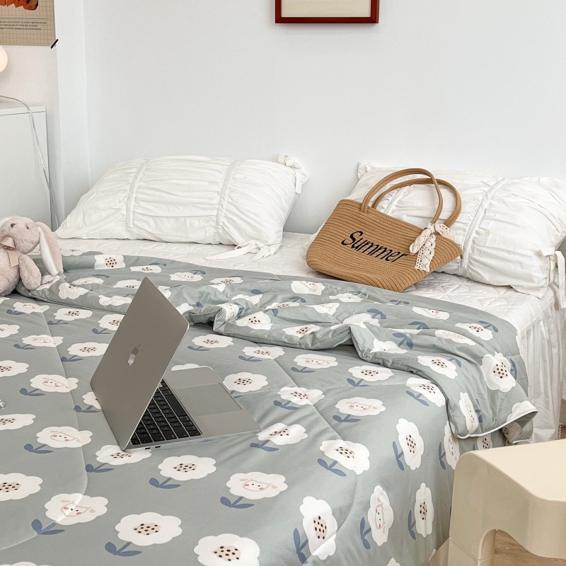 昔可 2022新款卡通印花牛奶丝针织夏被 花花小羊