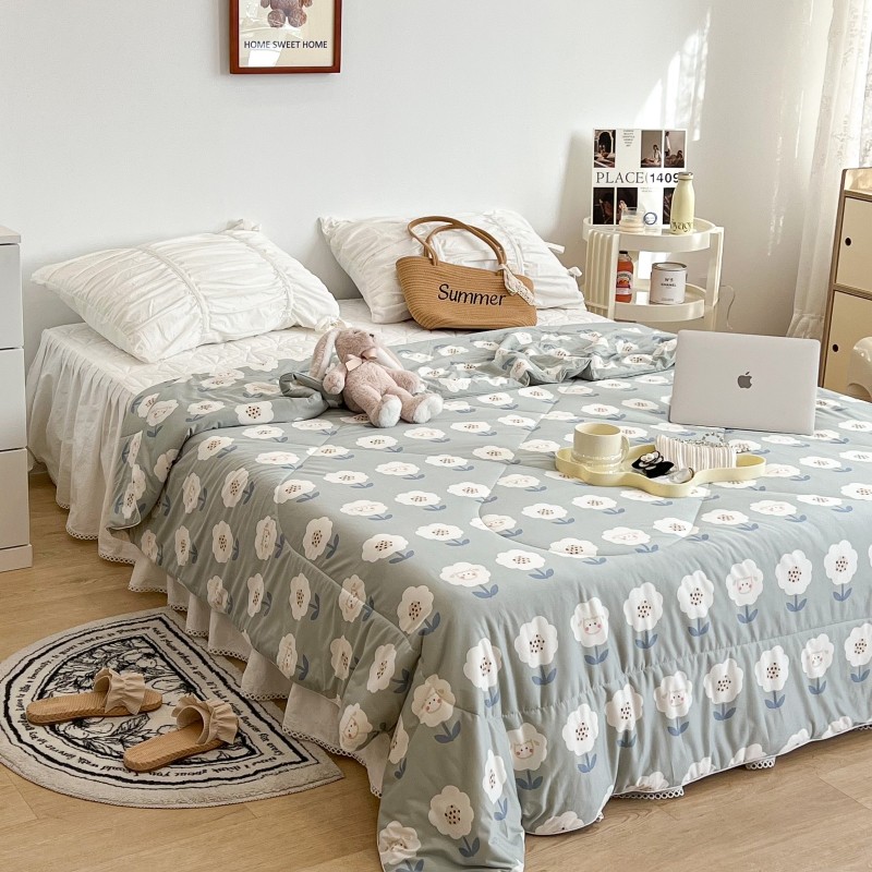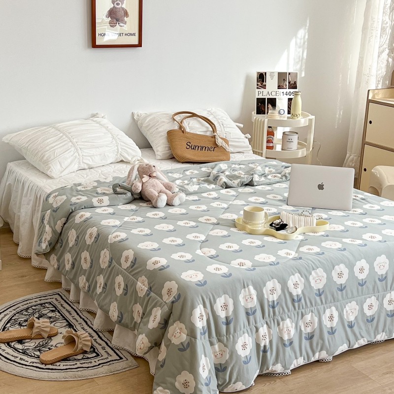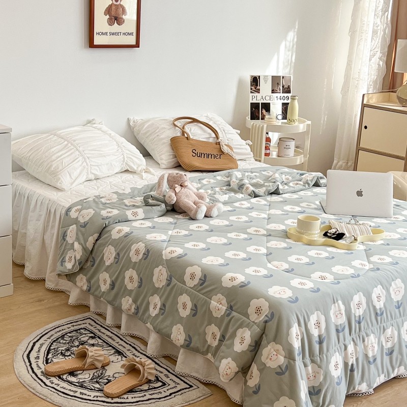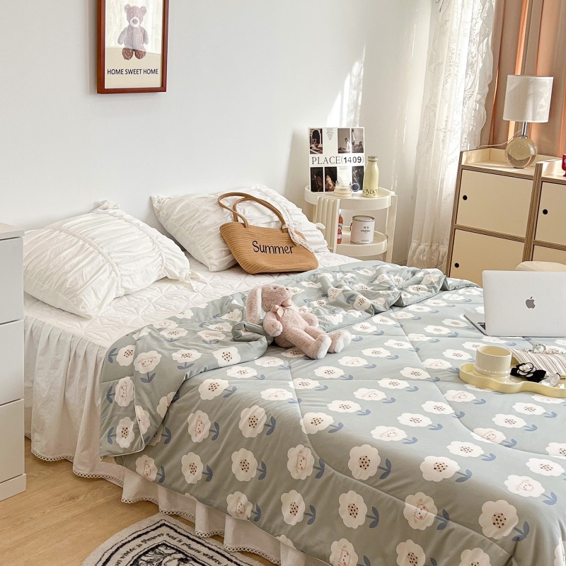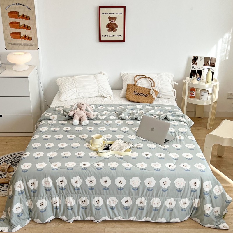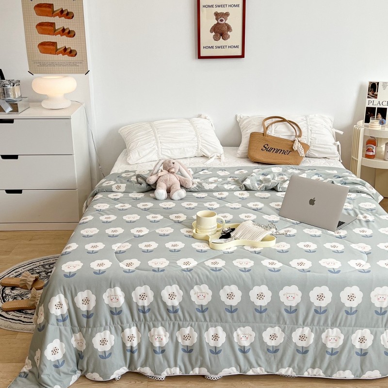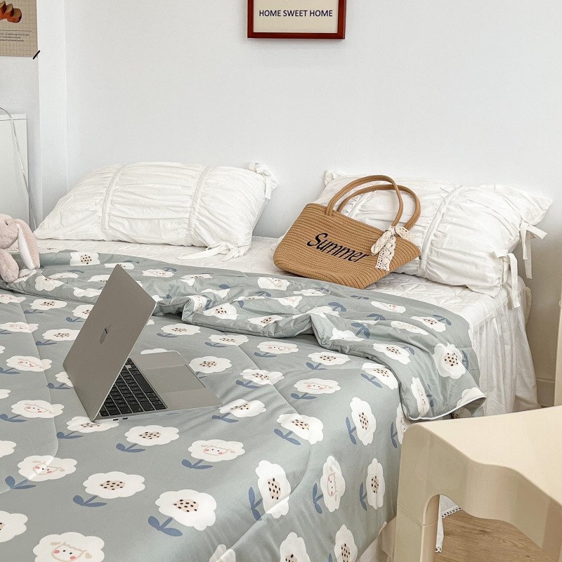 昔可 2022新款卡通印花牛奶丝针织夏被 花花小羊