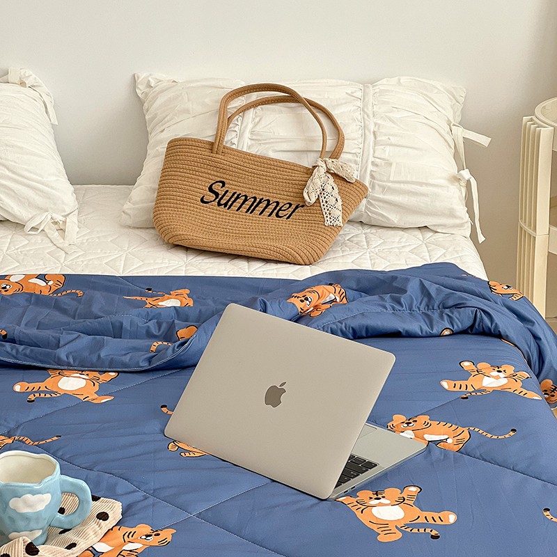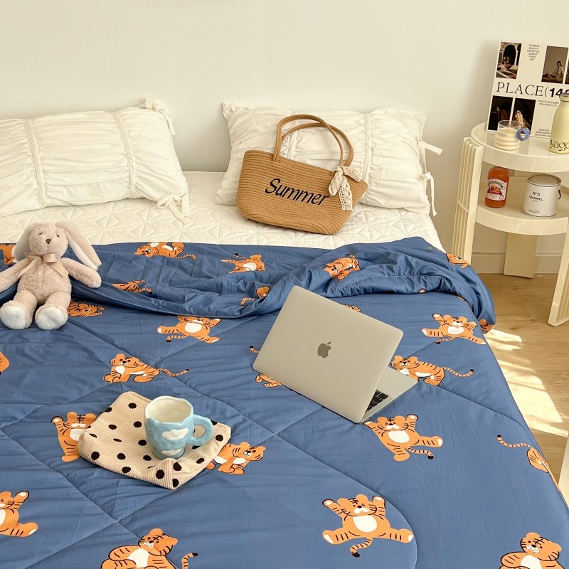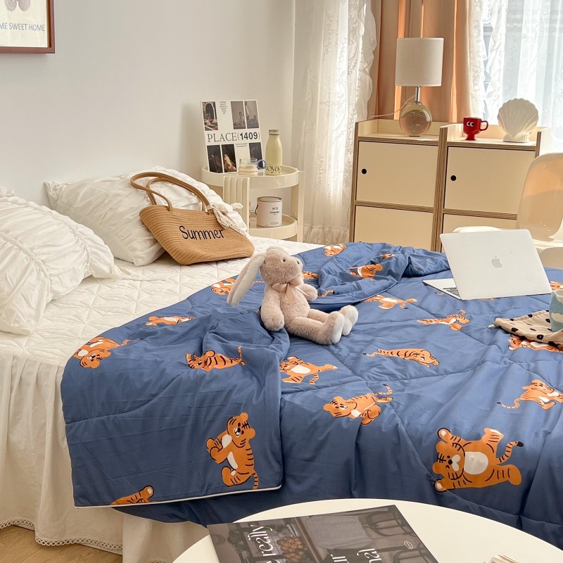 昔可 2022新款卡通印花牛奶丝针织夏被 小顽皮-蓝