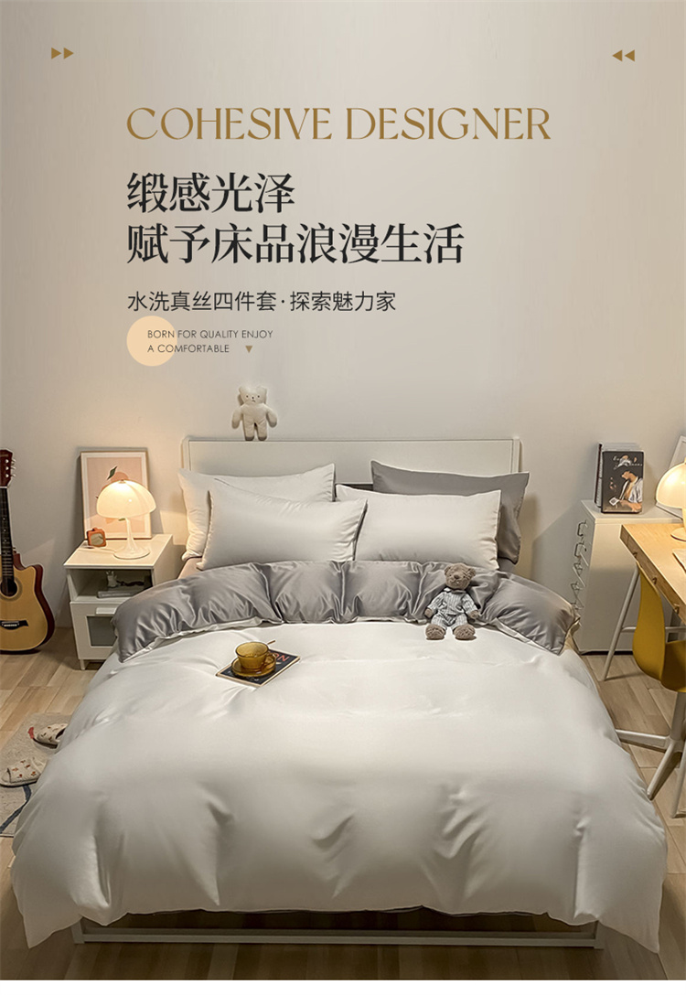 当前位置: 91家纺网 > 商品网购 > 床品套件 > 四件套 > 水洗真丝四件套 > 古吉梦 新款水洗真丝纯色双拼-臻系列四件套 臻-贵族白