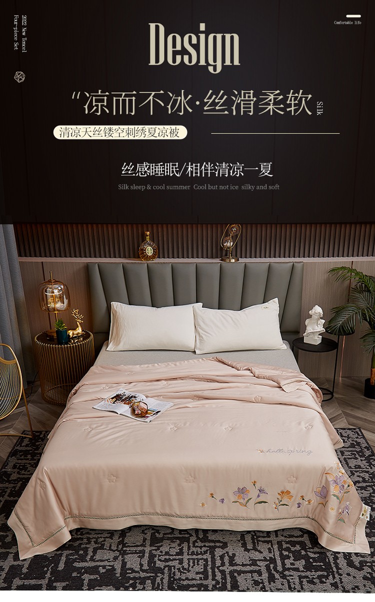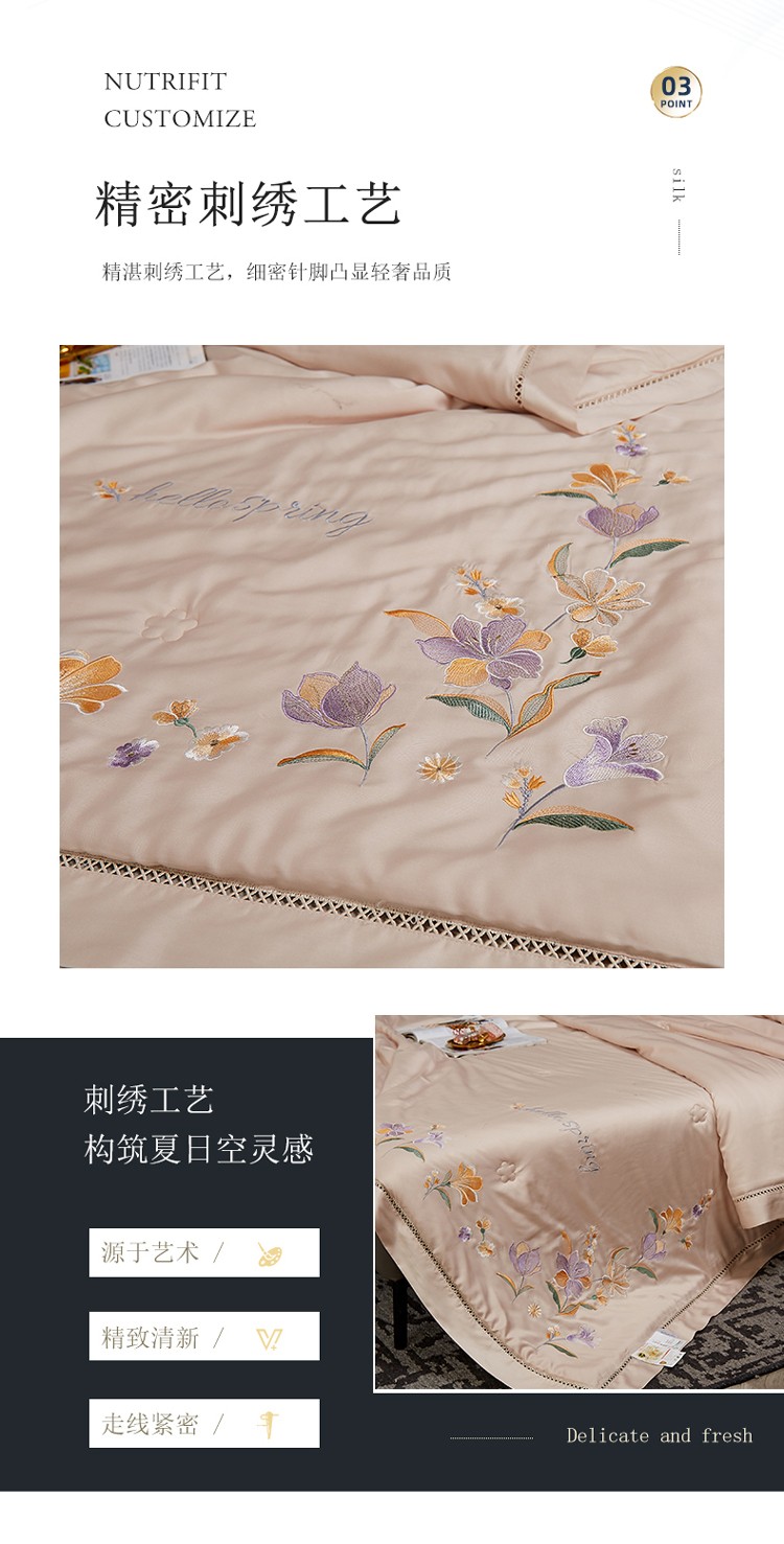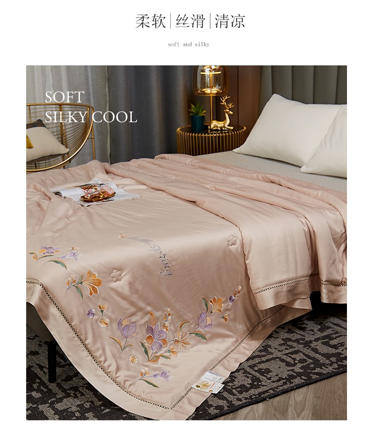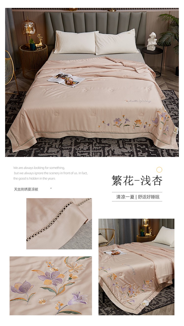 商品名称:暖阳 2023新款天丝镂空刺绣夏凉被 繁花-浅杏