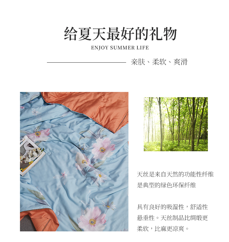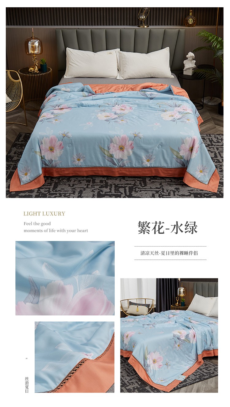 商品名称:暖阳 2023新款天丝印花夏凉被 繁花-水绿