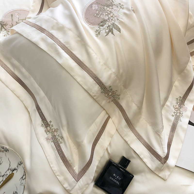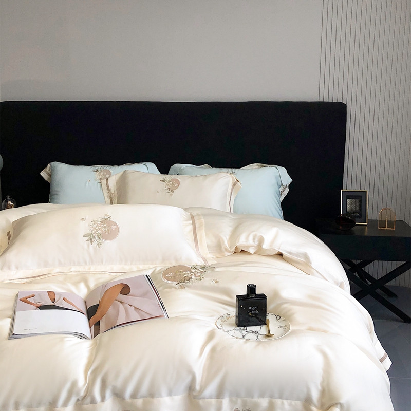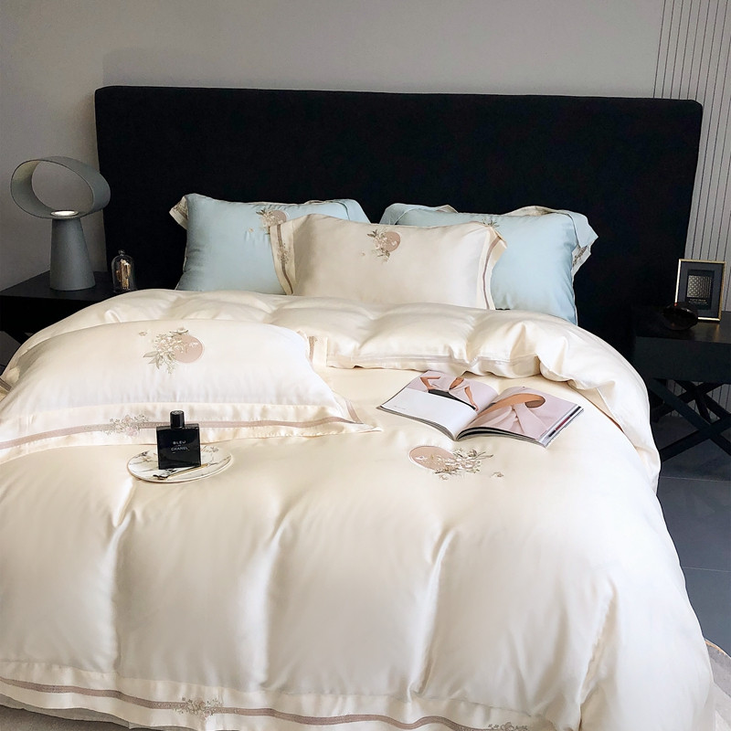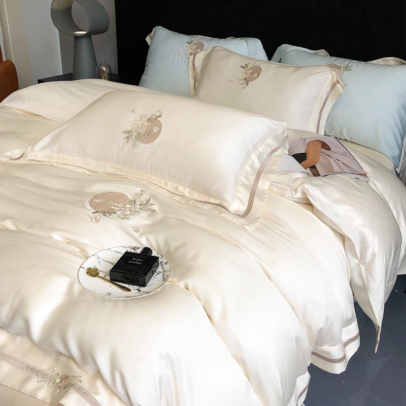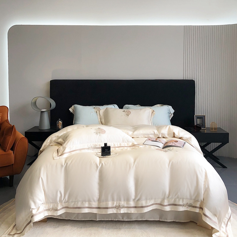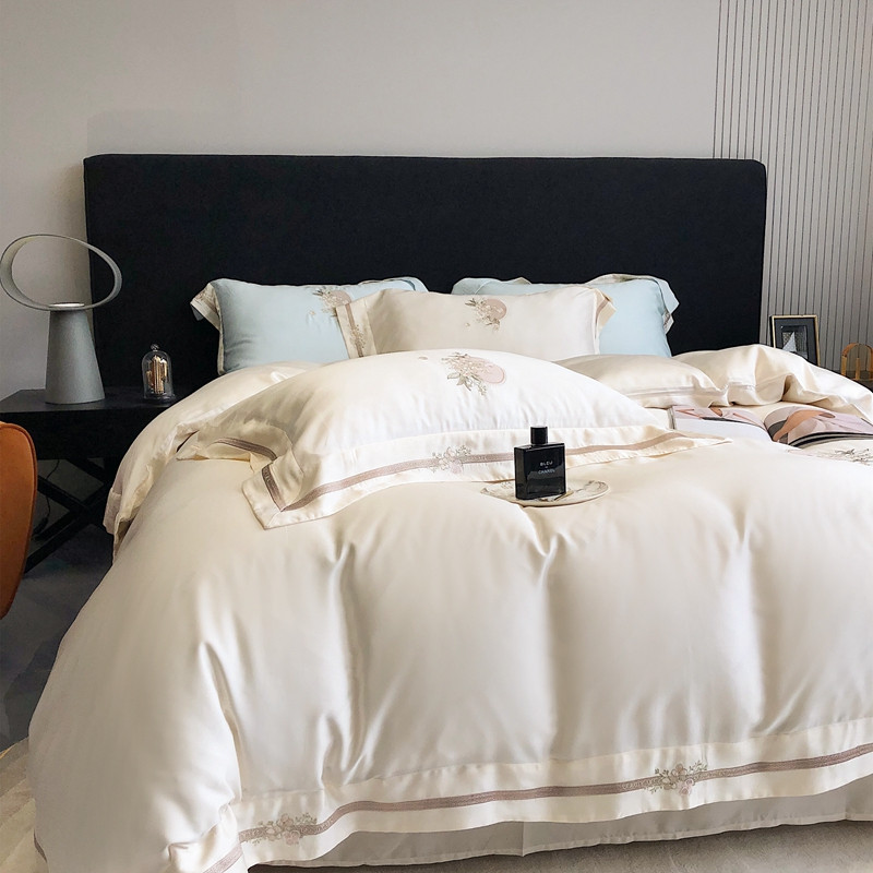 馨蕊 2022秋冬新品100支高定全棉刺绣四件套-蜜恋 蜜恋-月光白