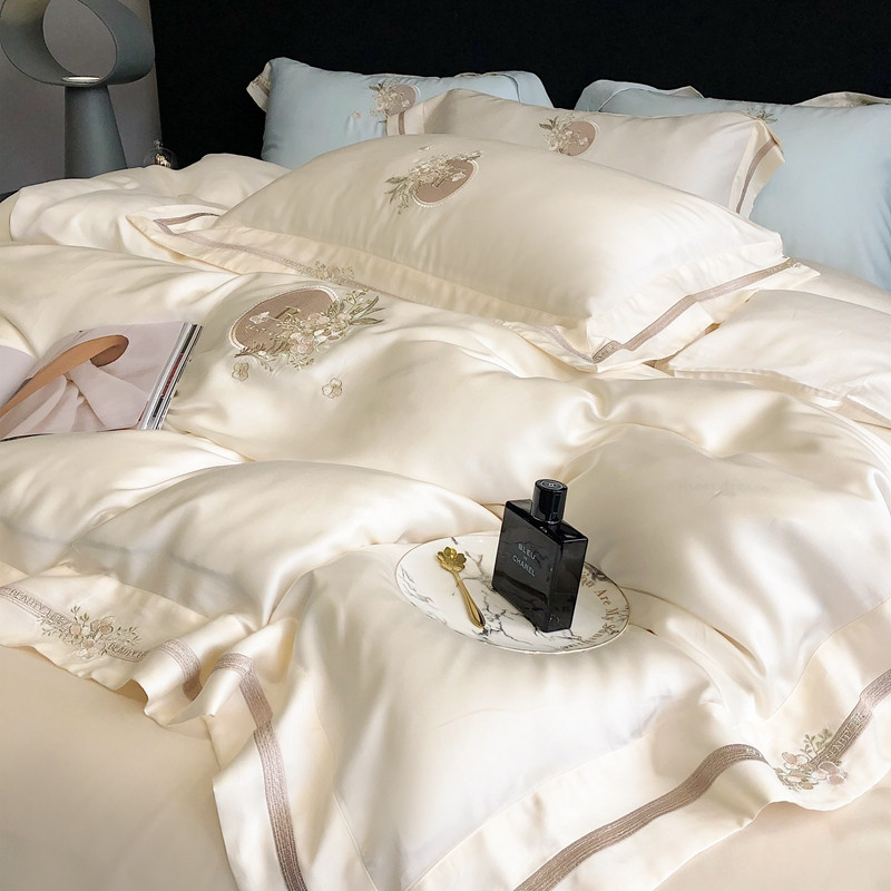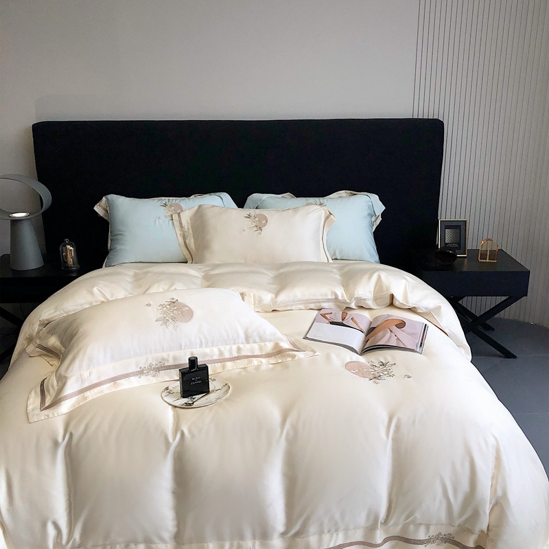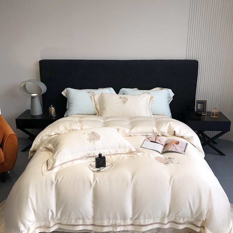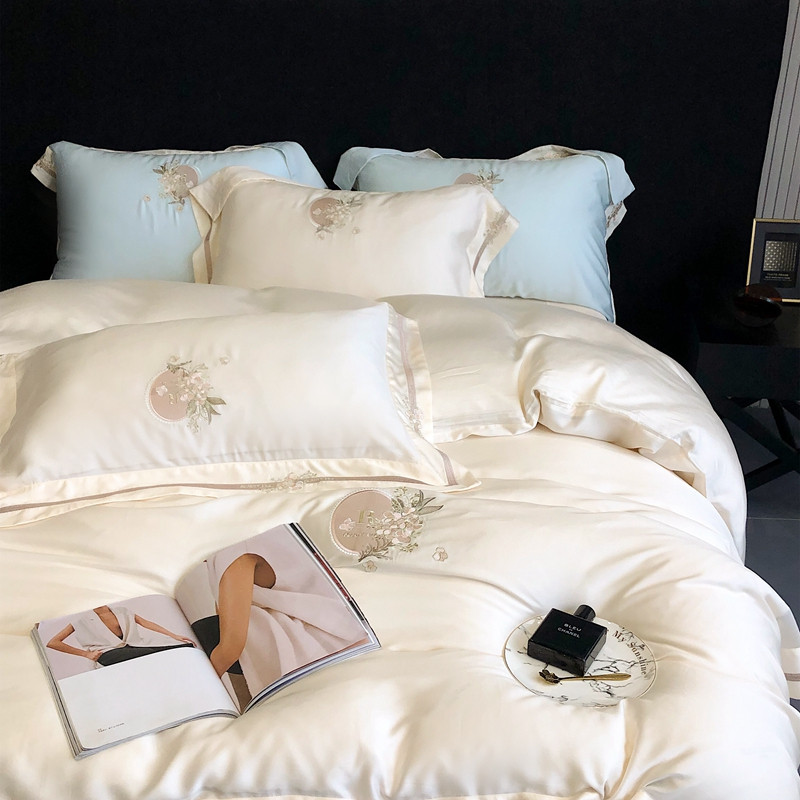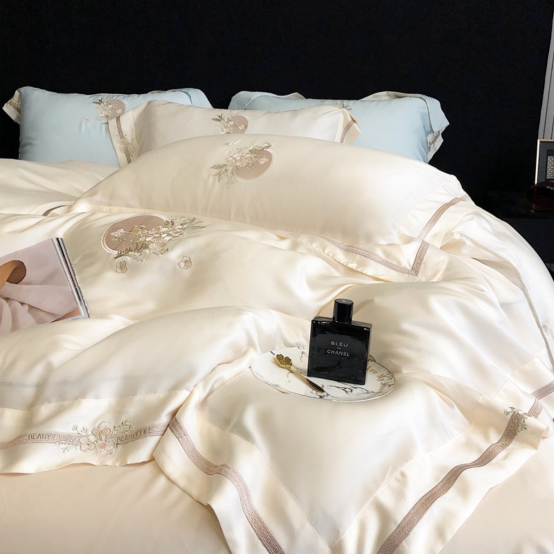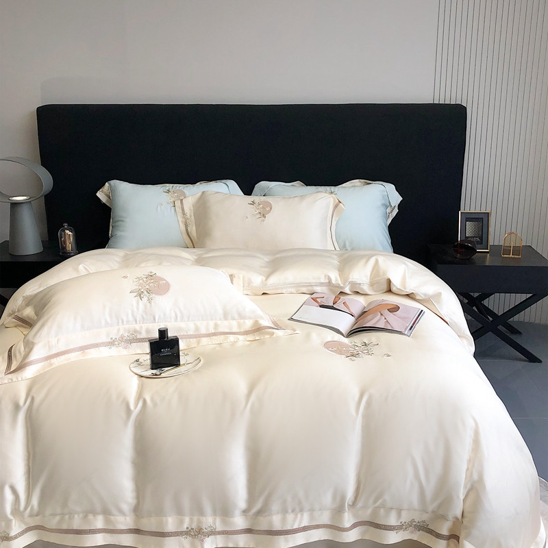 馨蕊 2022秋冬新品100支高定全棉刺绣四件套-蜜恋 蜜恋-月光白