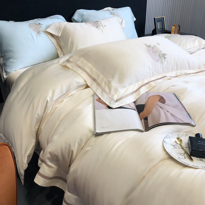 商品名称:馨蕊 2022秋冬新品100支高定全棉刺绣四件套-蜜恋 蜜恋-月光白