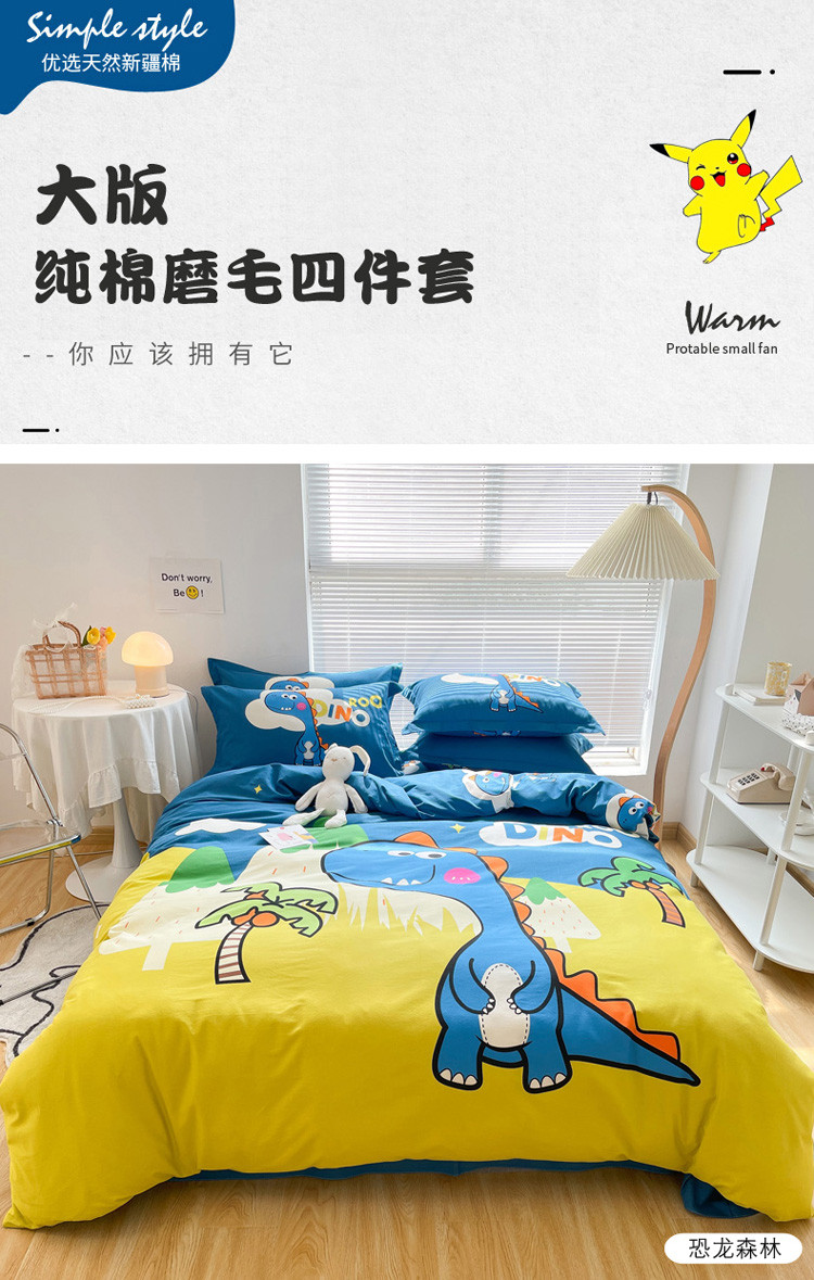 当前位置: 91家纺网 > 商品网购 > 床品套件 > 四件套 > 普通磨毛四件套 > 金爱家 2023新款大版卡通磨毛四件套 恐龙森林