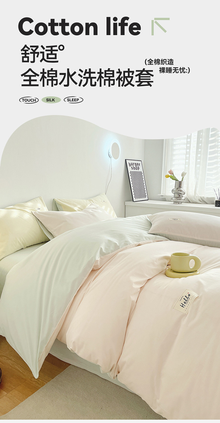 商品名称:798家纺 2022新款纯色全棉水洗棉单品被套 米白+豆绿