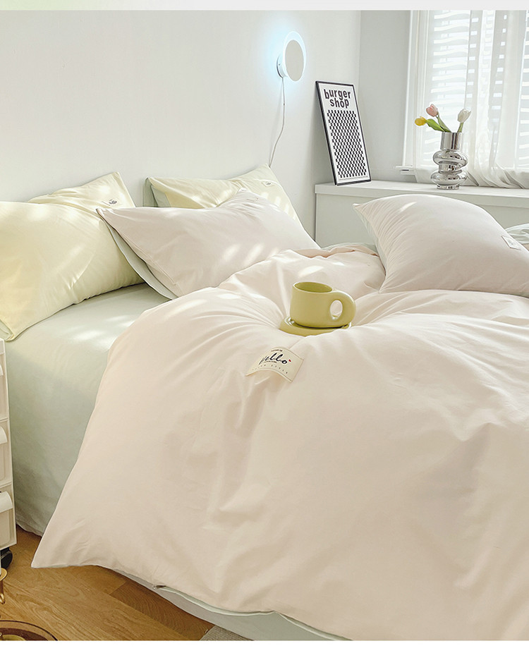 798家纺 2022新款纯色全棉水洗棉单品被套 米白+豆绿