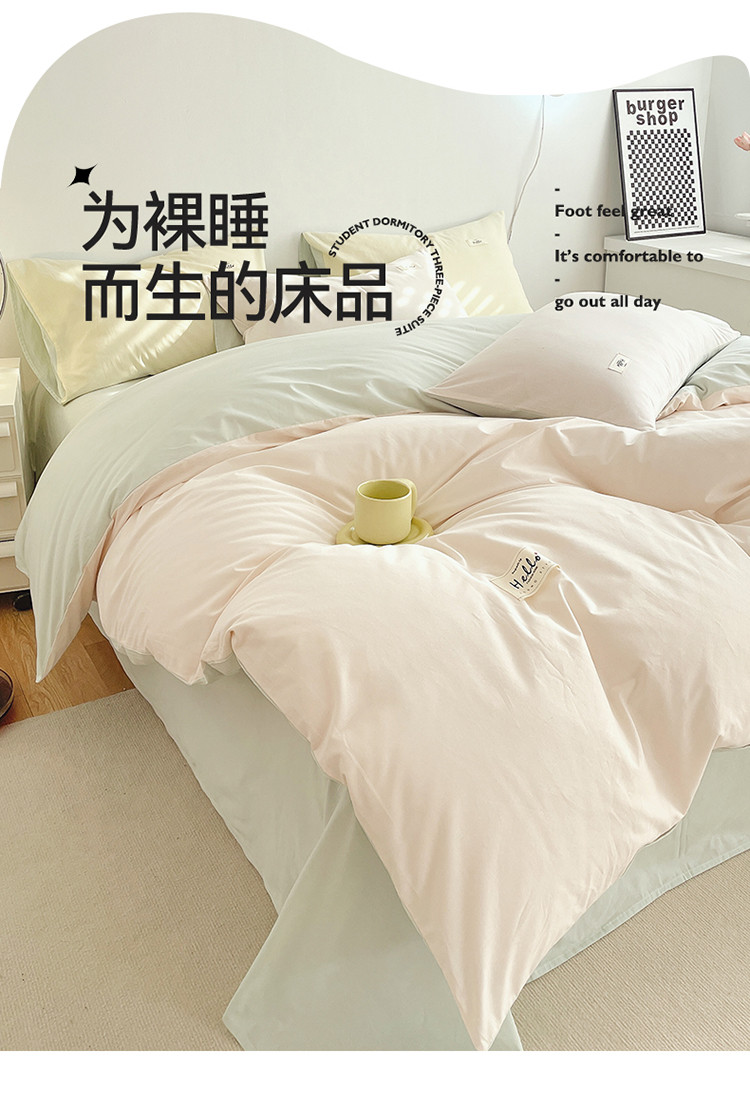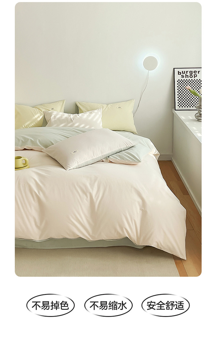 (总)798家纺 2025新款全棉双拼纯色良品四件套,碧绿+奶白,布鲁蓝+梧桐灰,豆绿+芍药粉,奶白+豆绿,奶白+青草绿,浅夏紫+芍药粉,肉肉粉+班尼咖,肉肉粉+千夏紫,肉肉粉+小雏菊,石灰+梧桐灰
