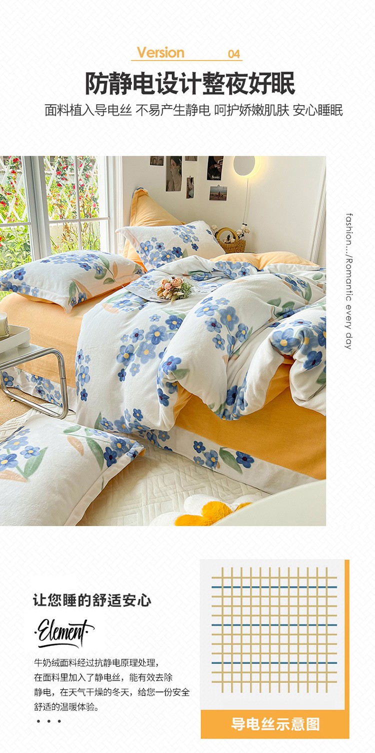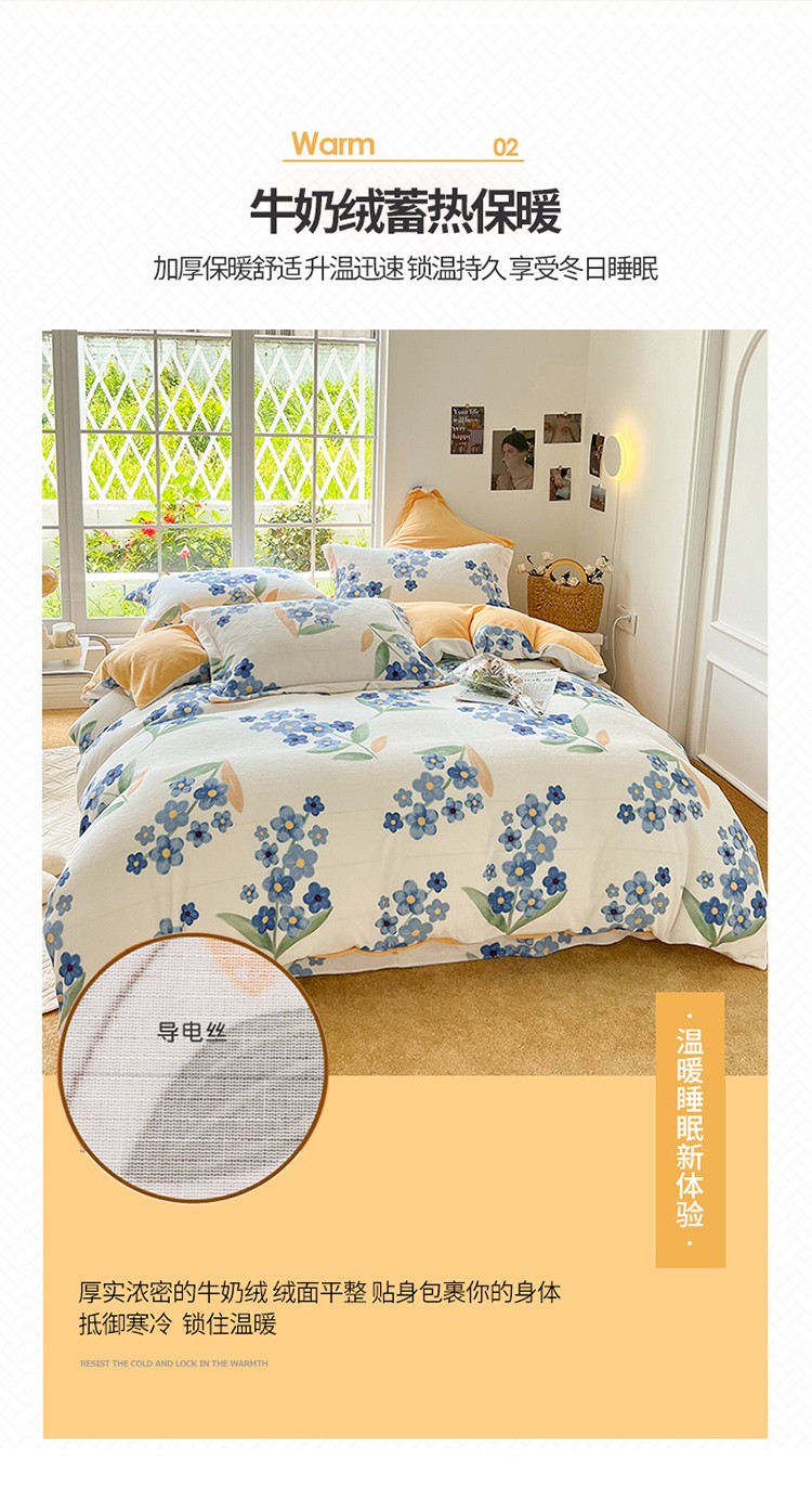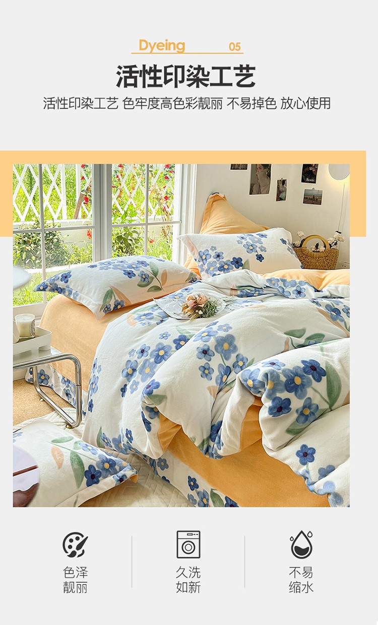 商品名称:呗旺鹿 2022年印花小清新加厚保暖牛奶绒四件套直播 爱丽丝