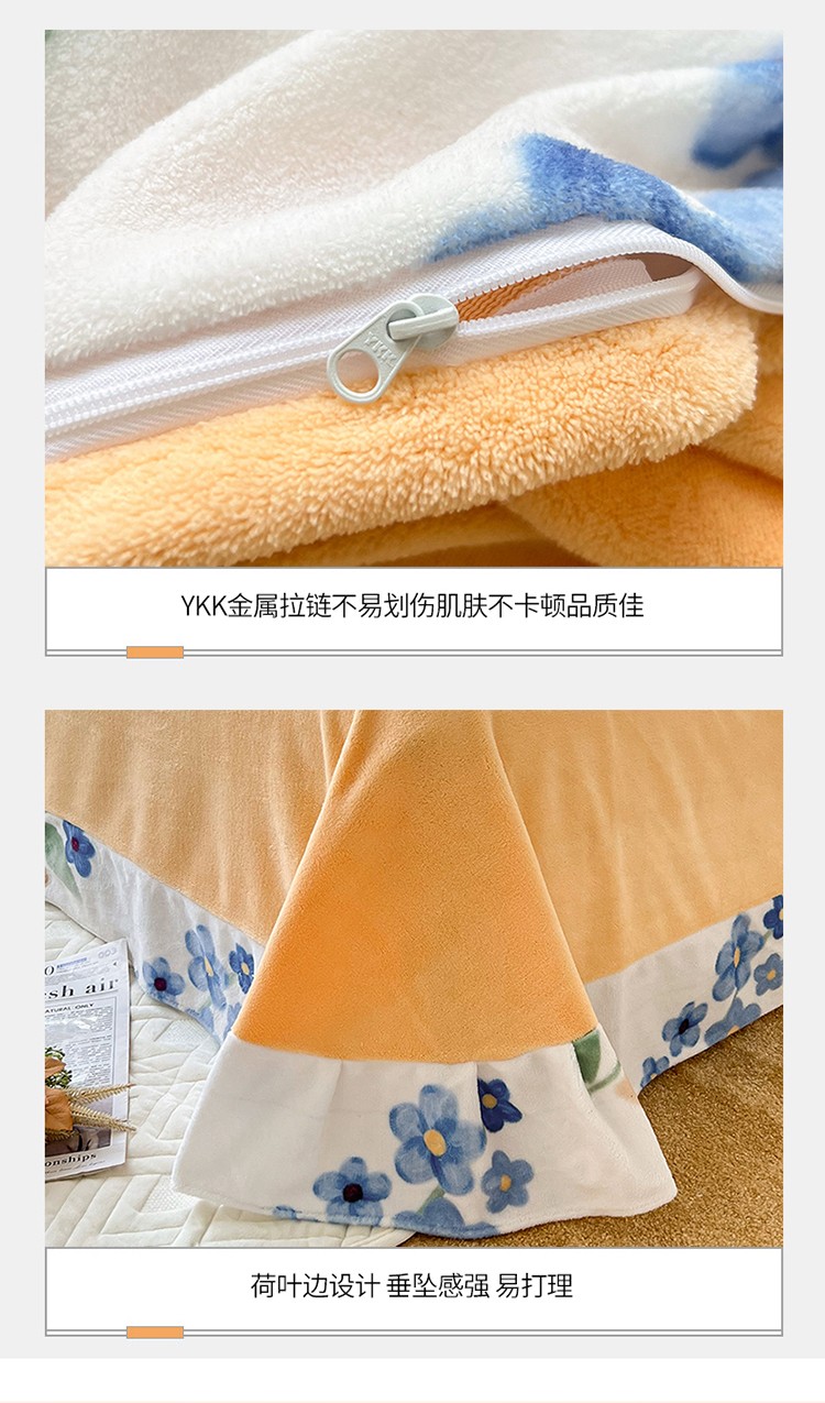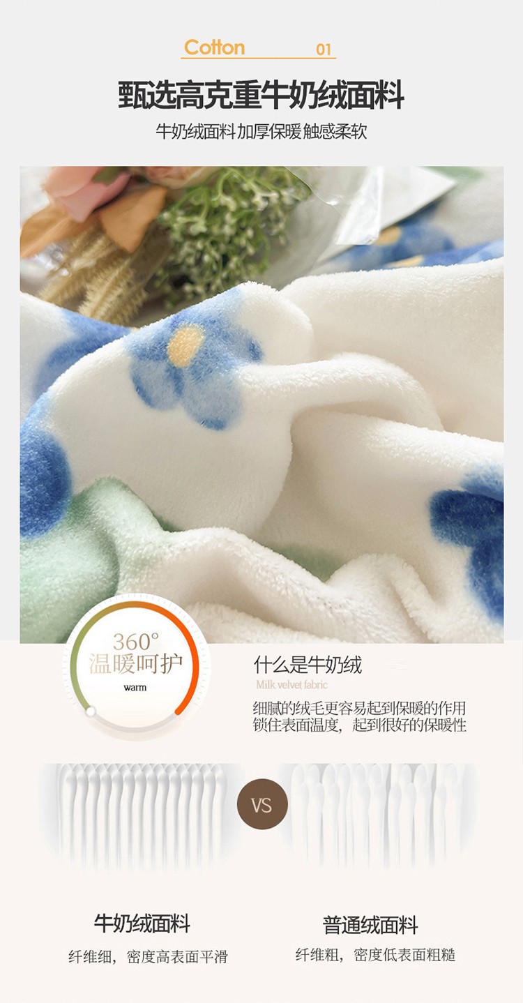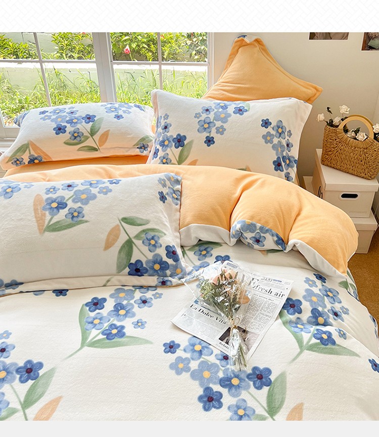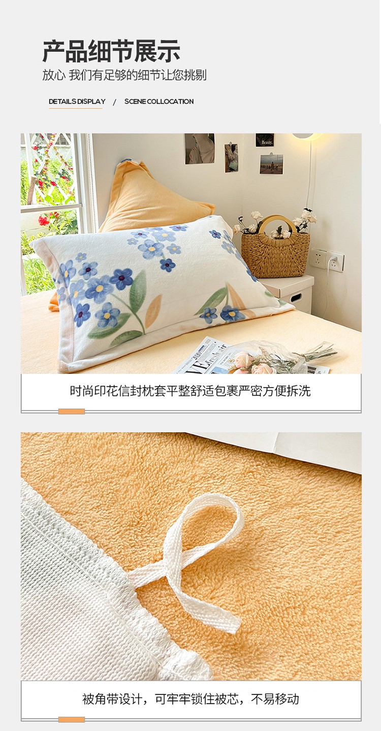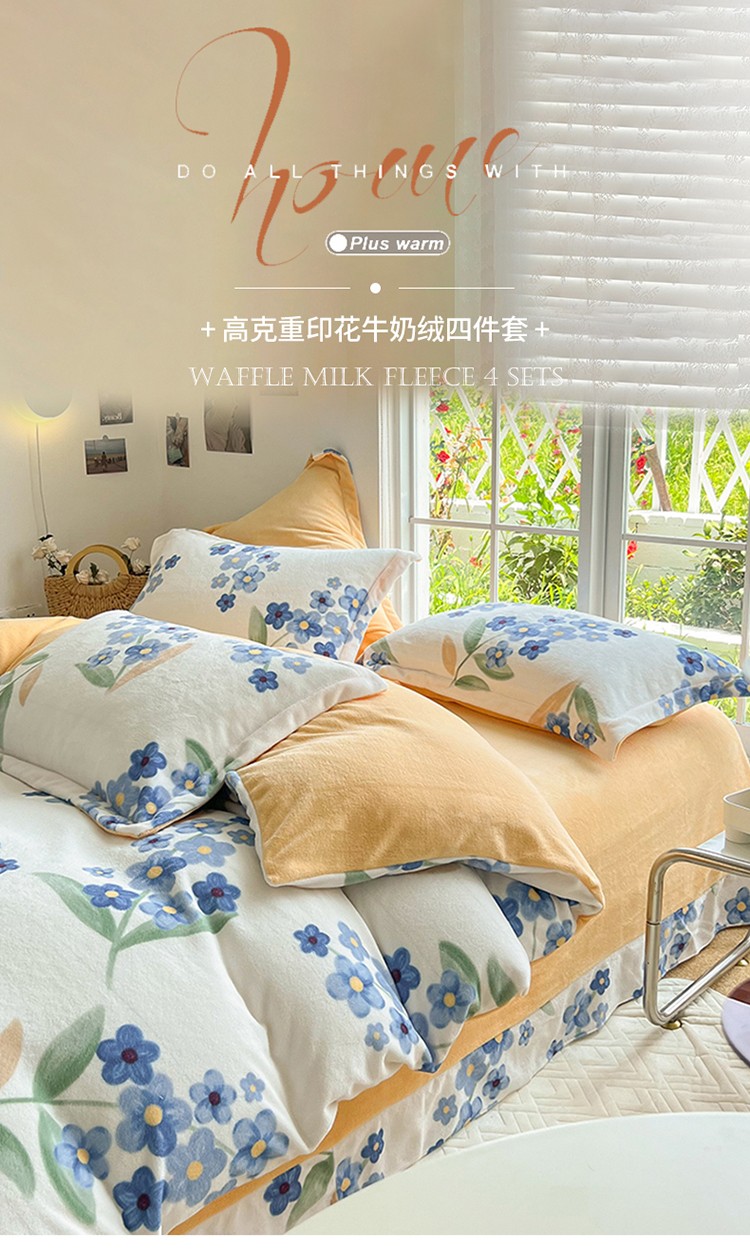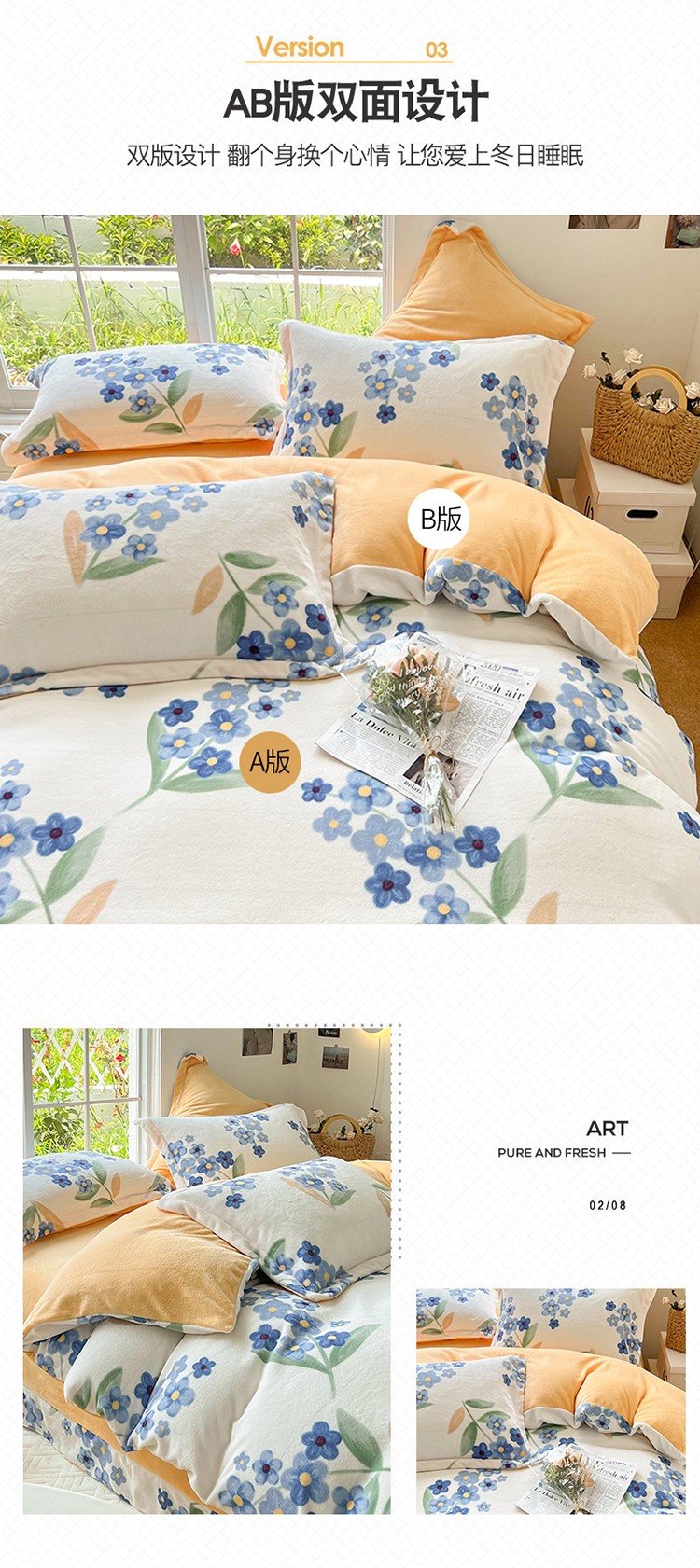 呗旺鹿 2022年印花小清新加厚保暖牛奶绒四件套直播 爱丽丝
