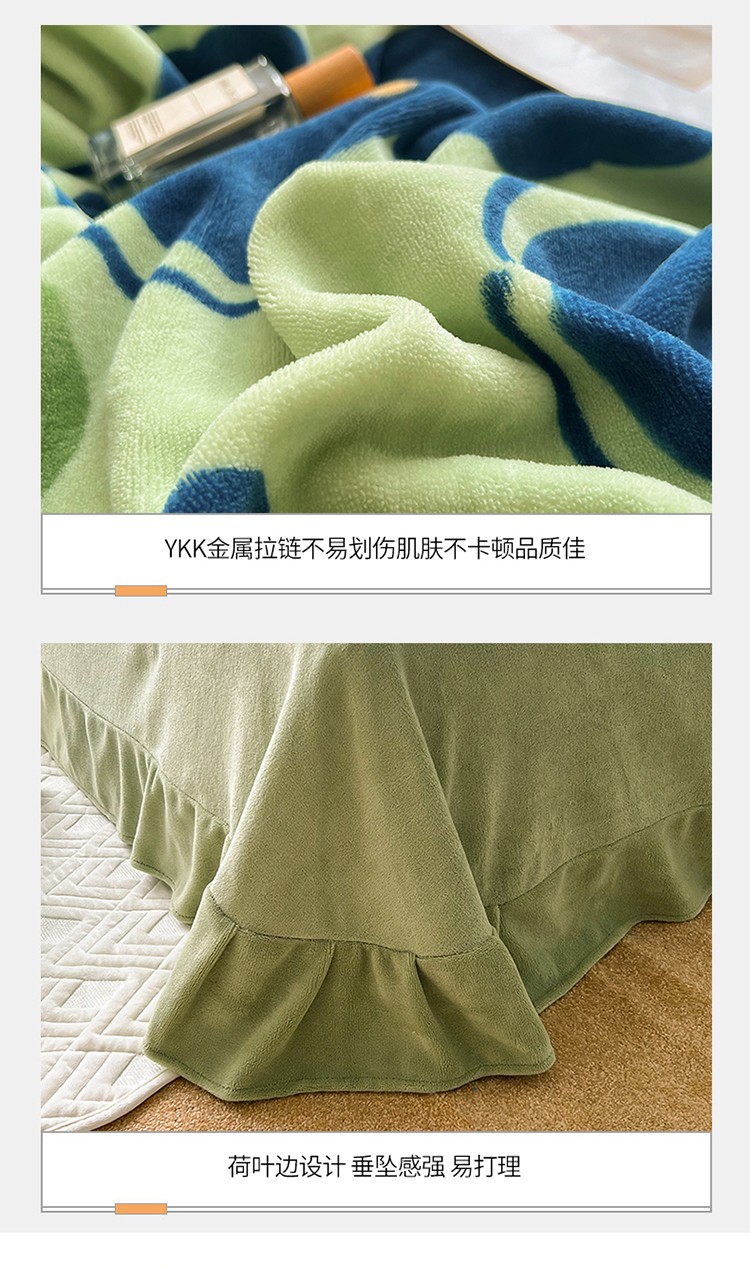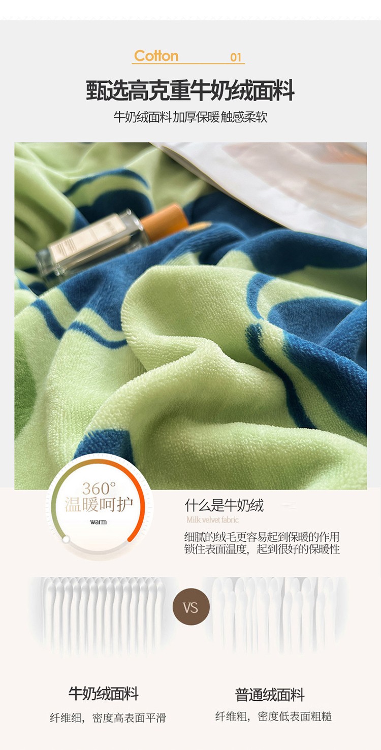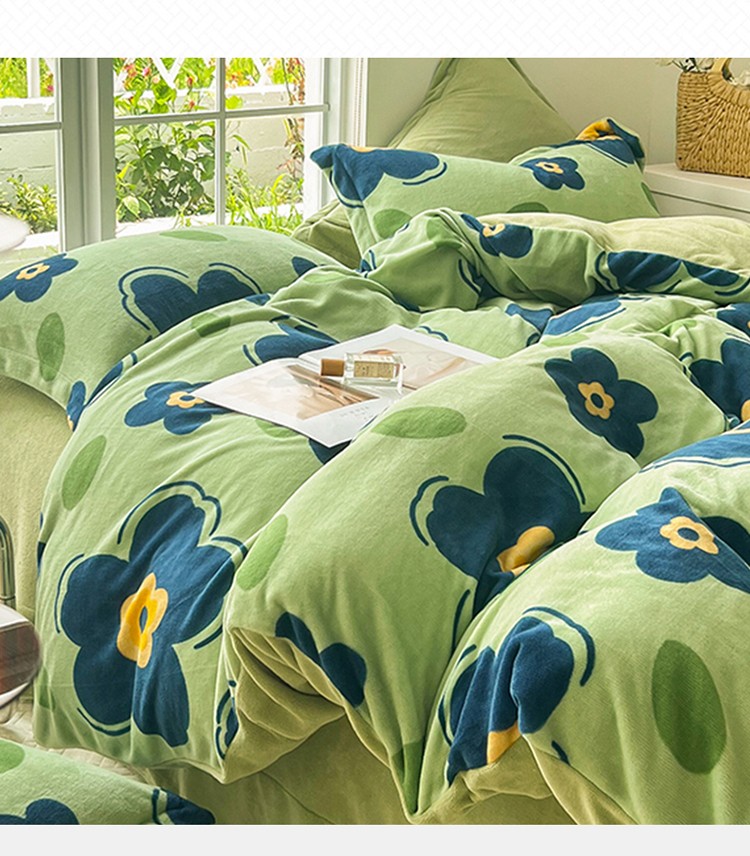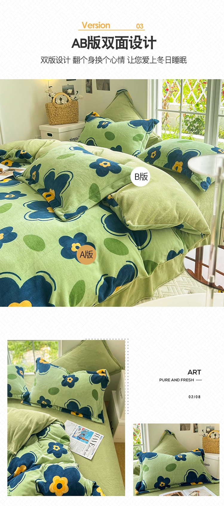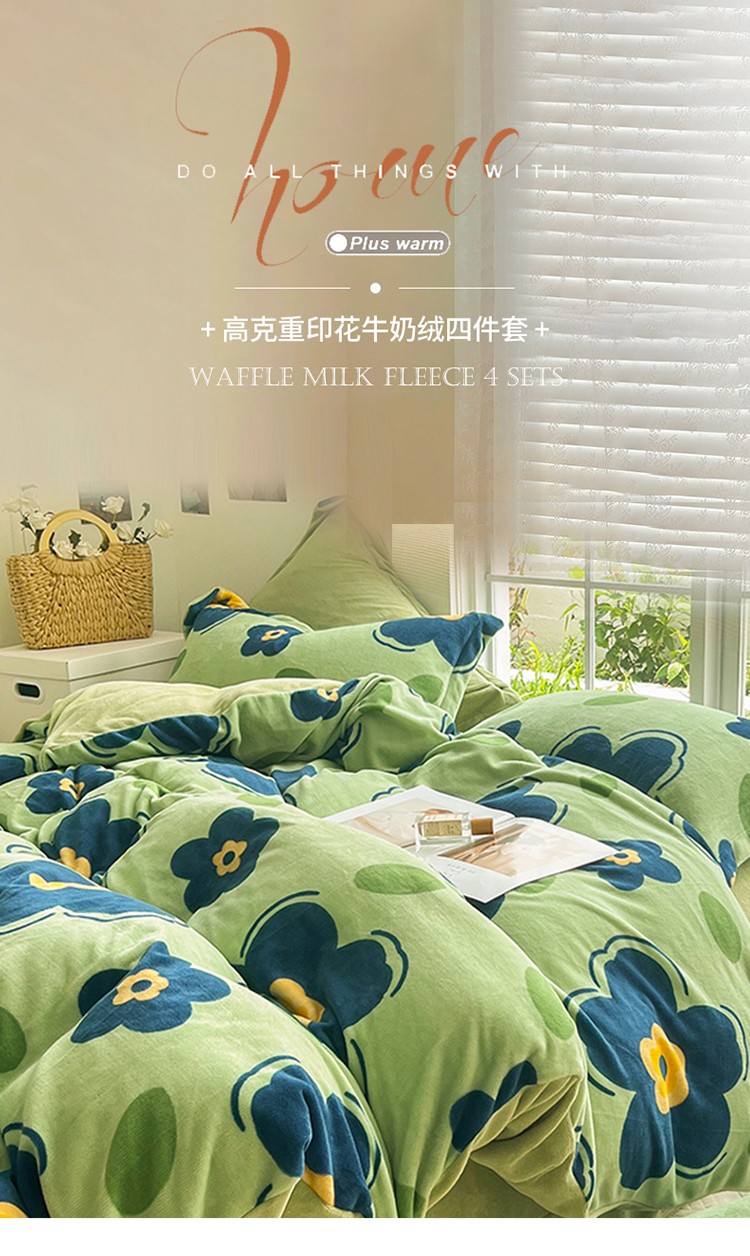 呗旺鹿 2022高克重印花小清新加厚保暖牛奶绒四件套直播夏沫