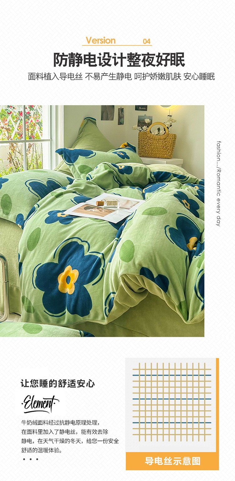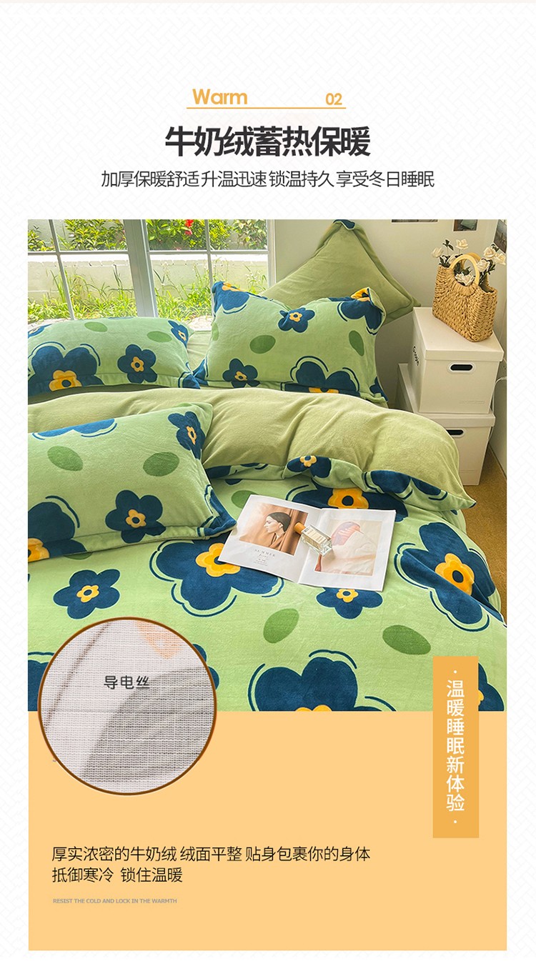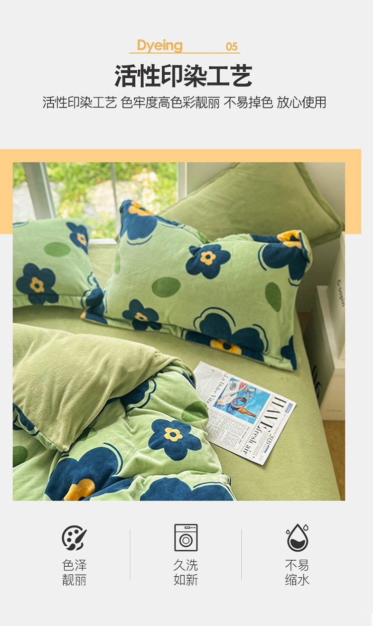 商品名称:呗旺鹿 2022高克重印花小清新加厚保暖牛奶绒四件套直播夏沫