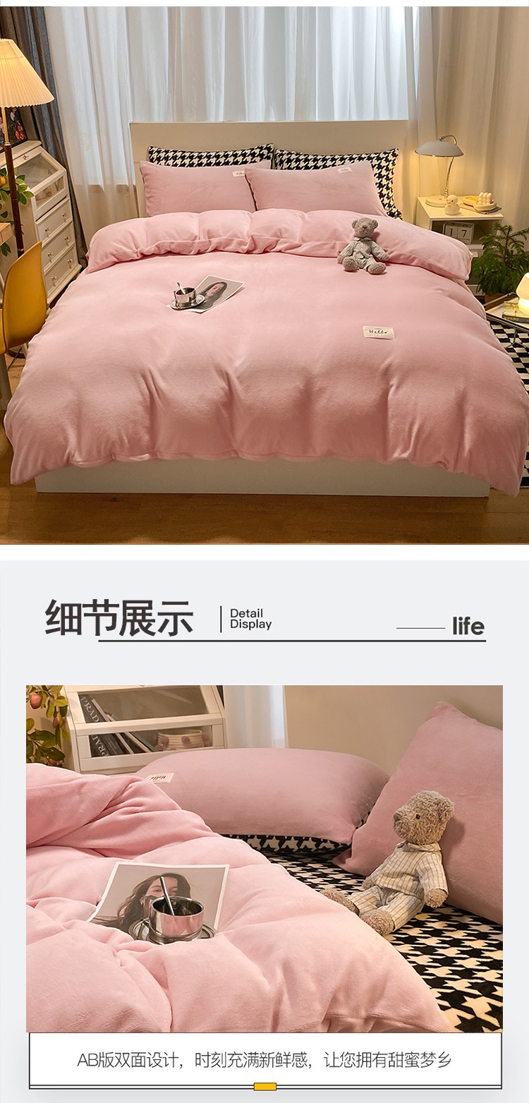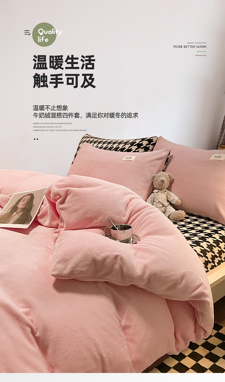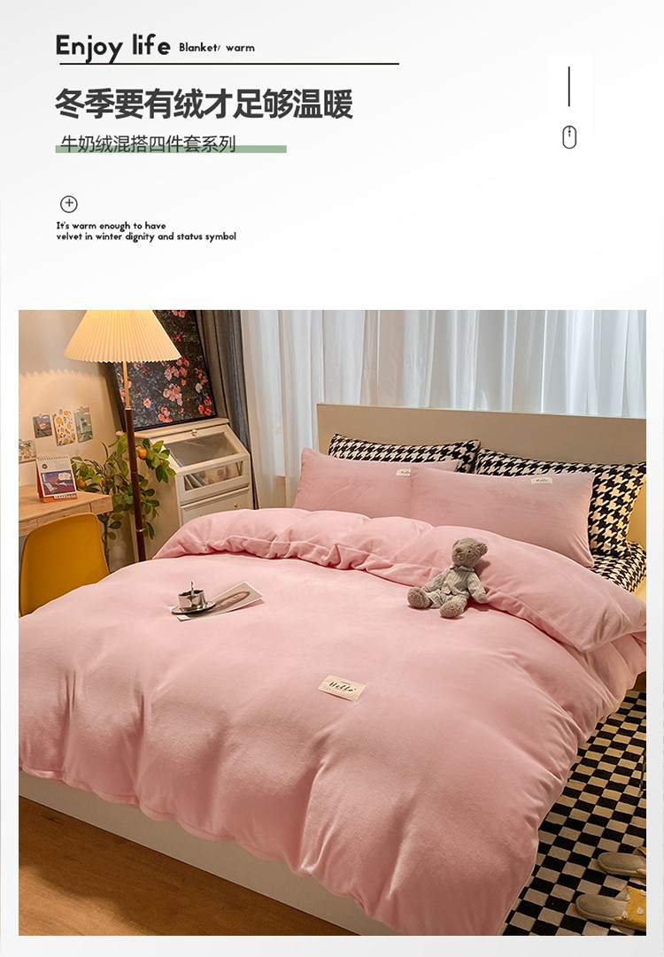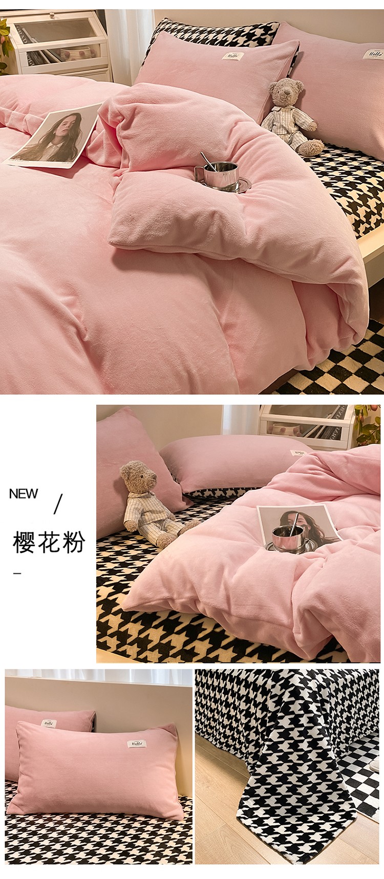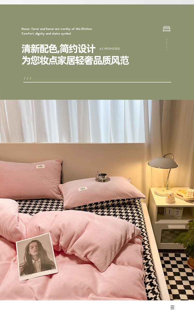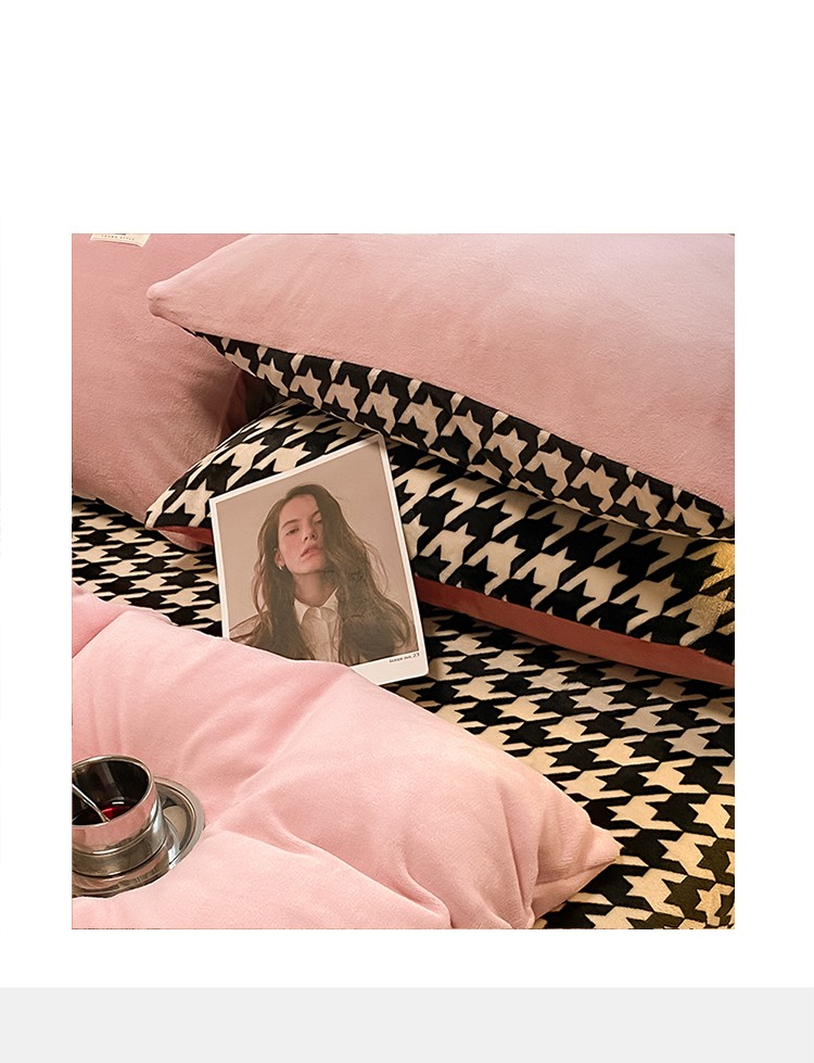 当前位置: 91家纺网 > 商品网购 > 床品套件 > 四件套 > 牛奶绒四件套 > 花漾家居 2023新款秋冬新品千鸟格双拼牛奶绒四件套 樱花粉