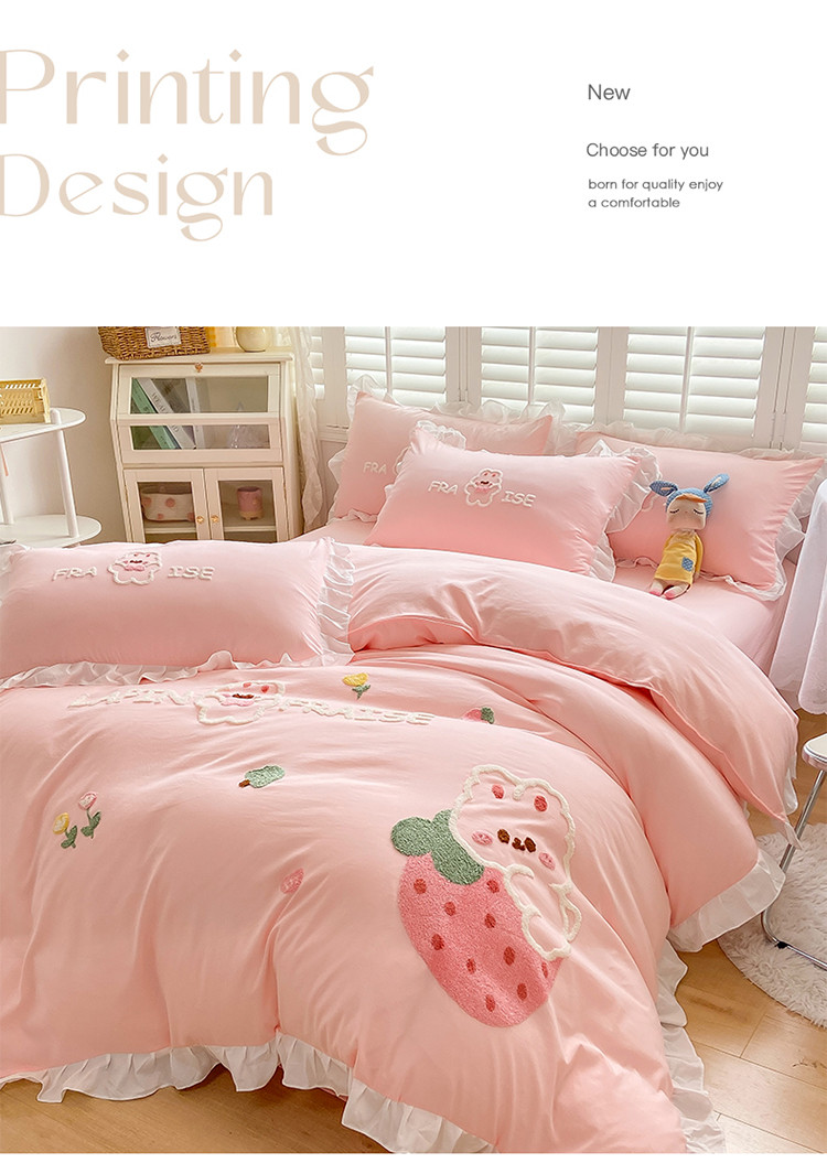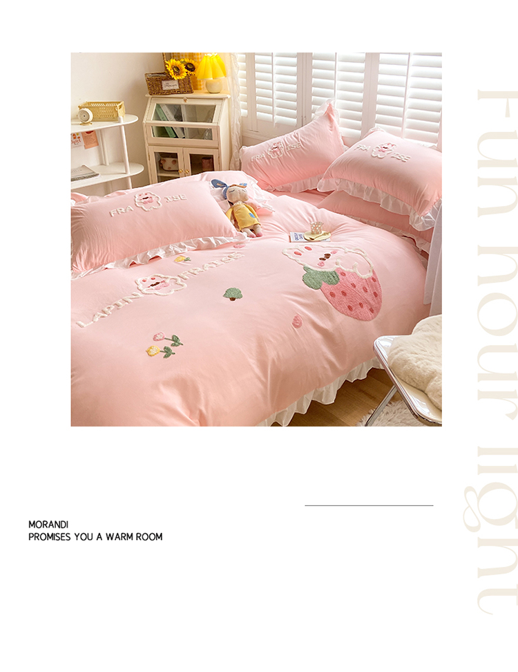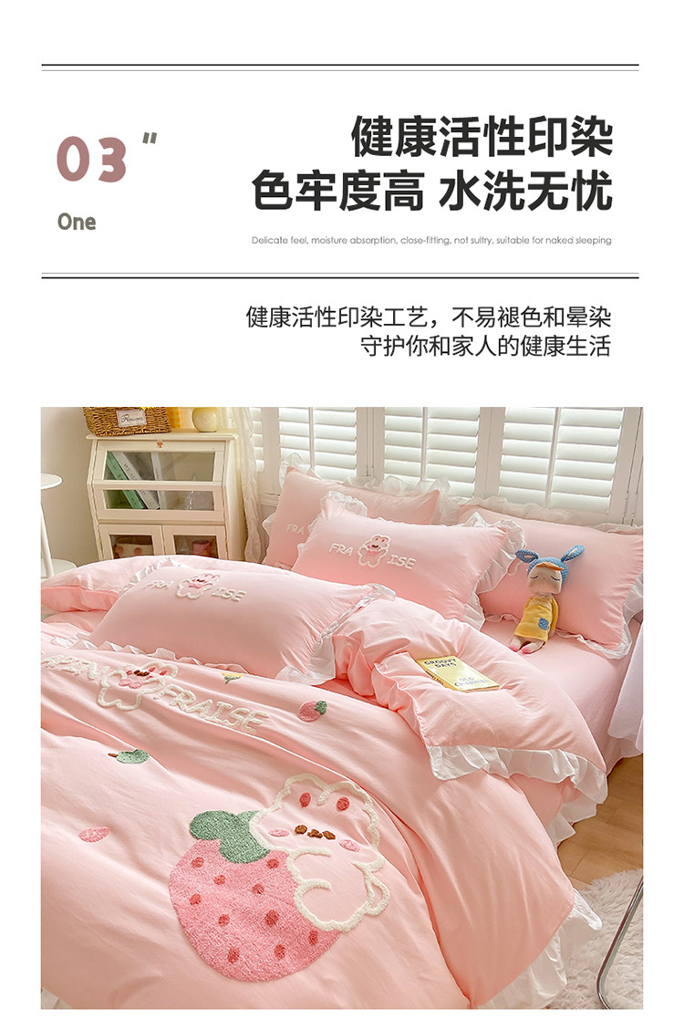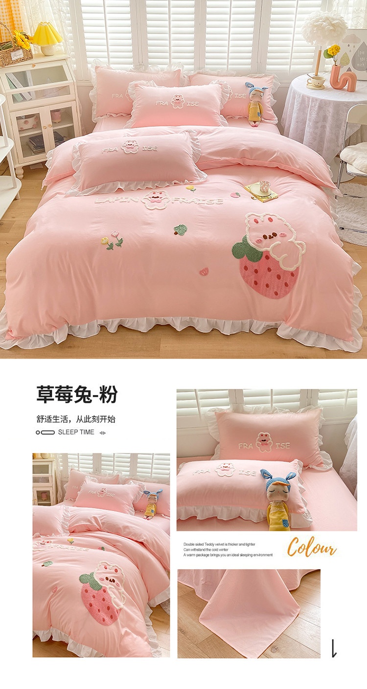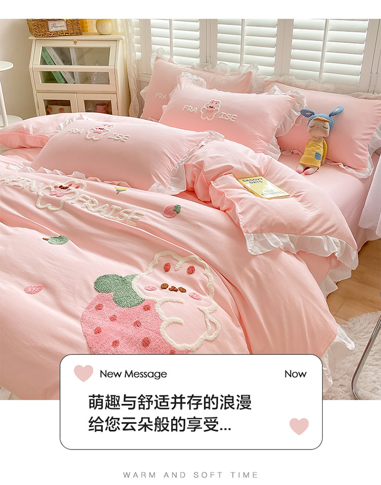 当前位置: 91家纺网 > 商品网购 > 床品套件 > 四件套 > 水洗棉四件套 > 易禾 2022新款水洗亲肤棉毛巾绣草莓兔四件套草莓兔-粉
