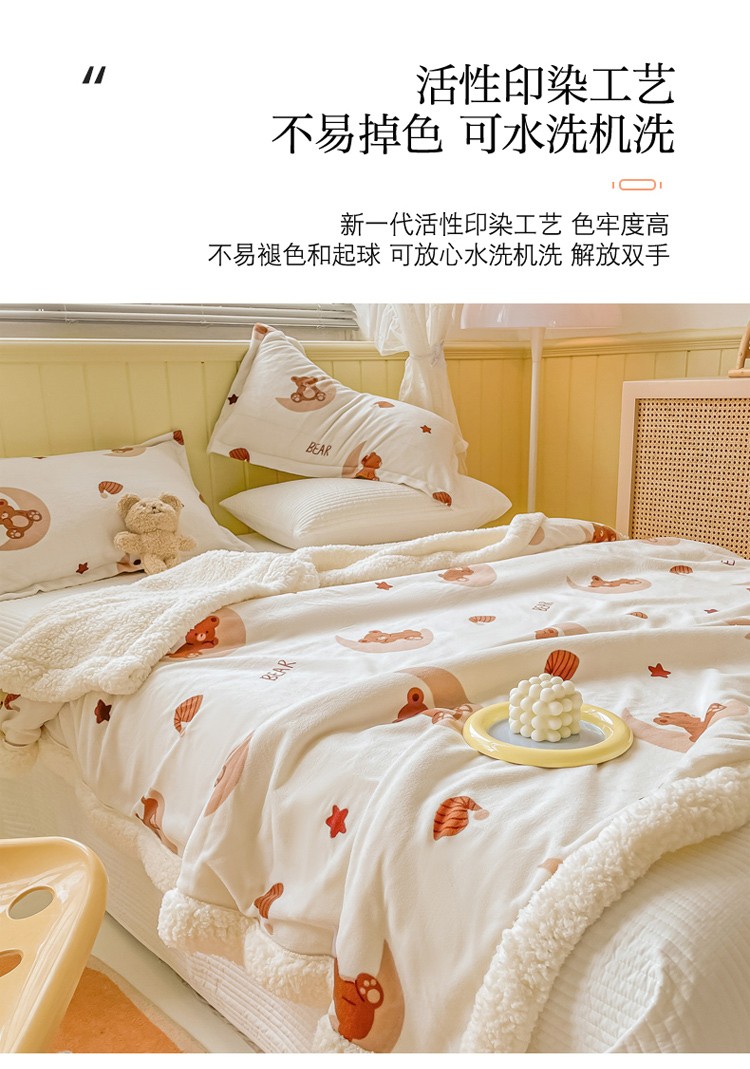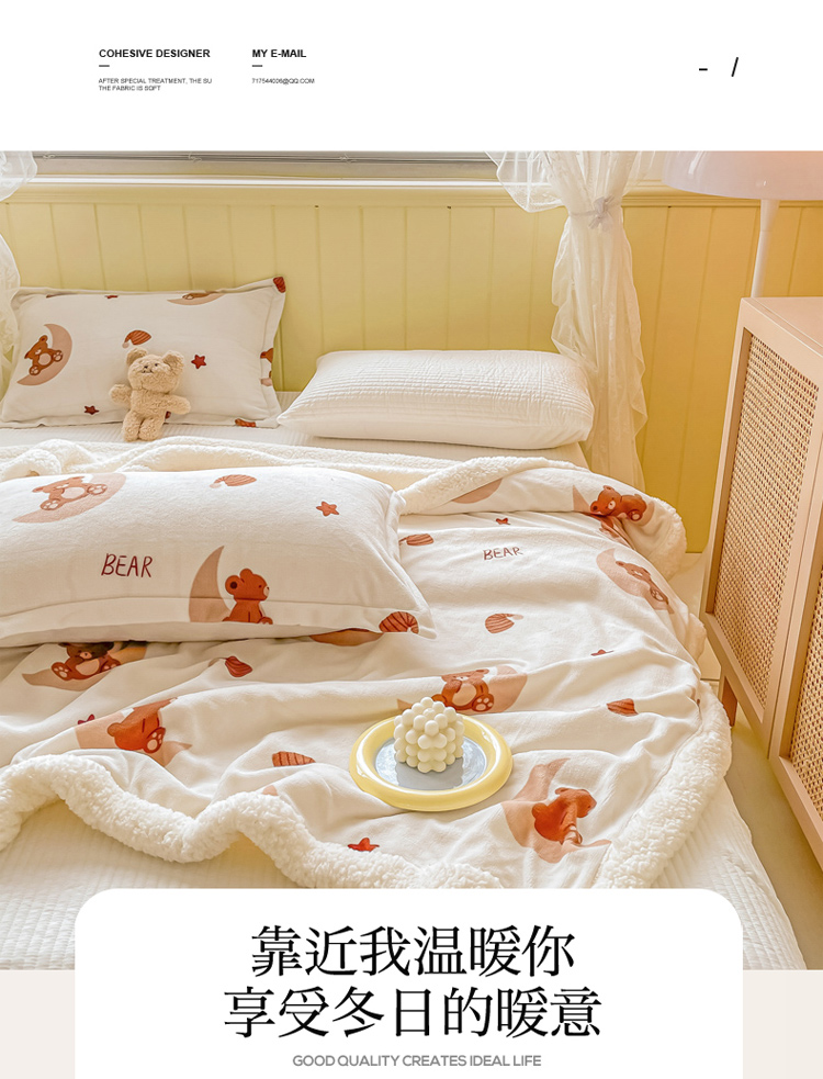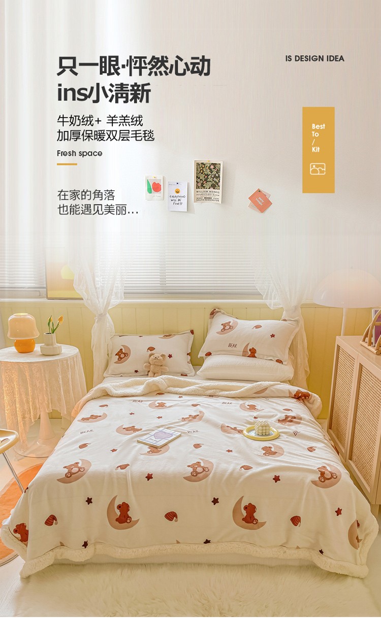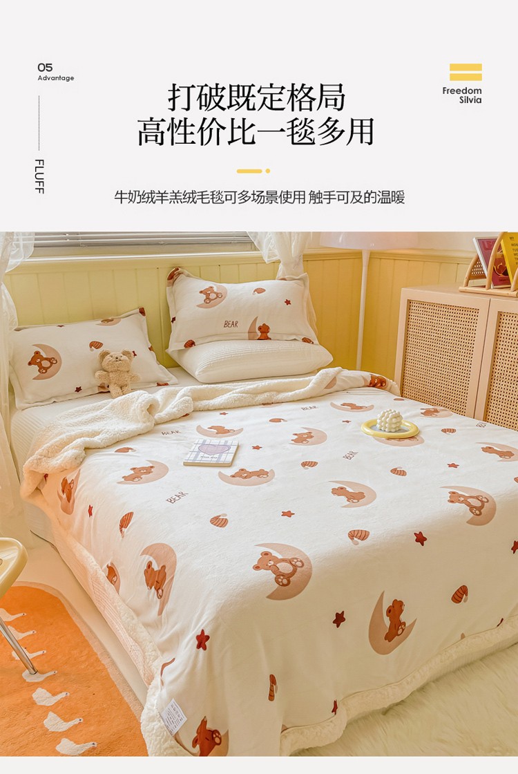 沐慕 2022新款牛奶绒拼羊羔绒毛毯 月亮船