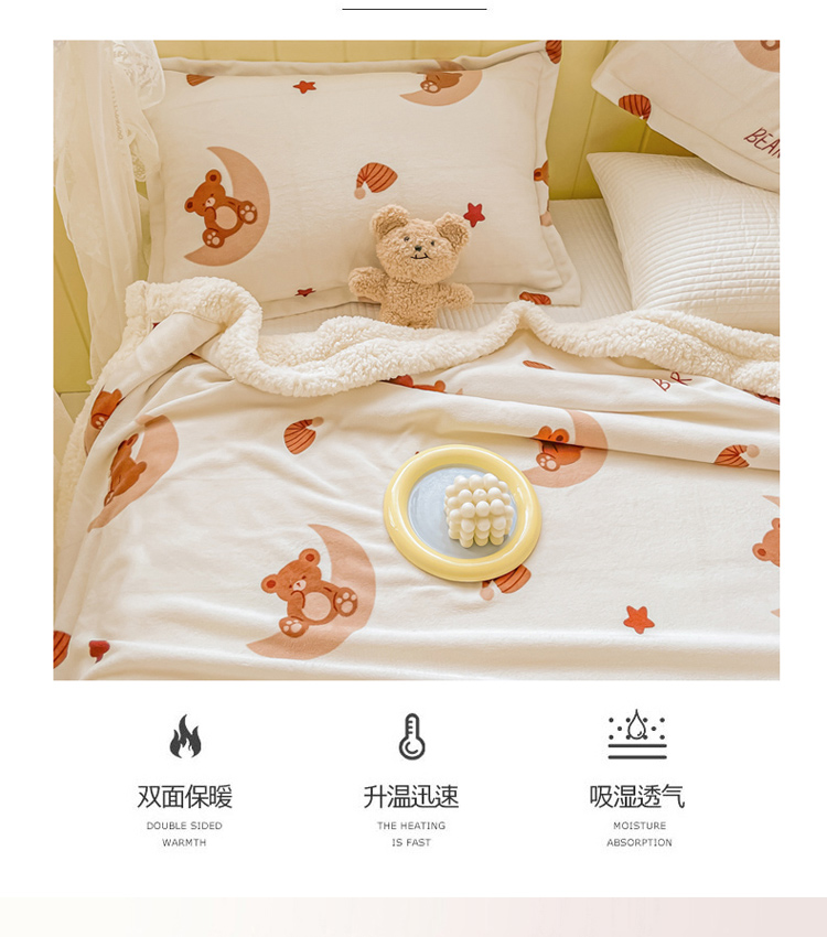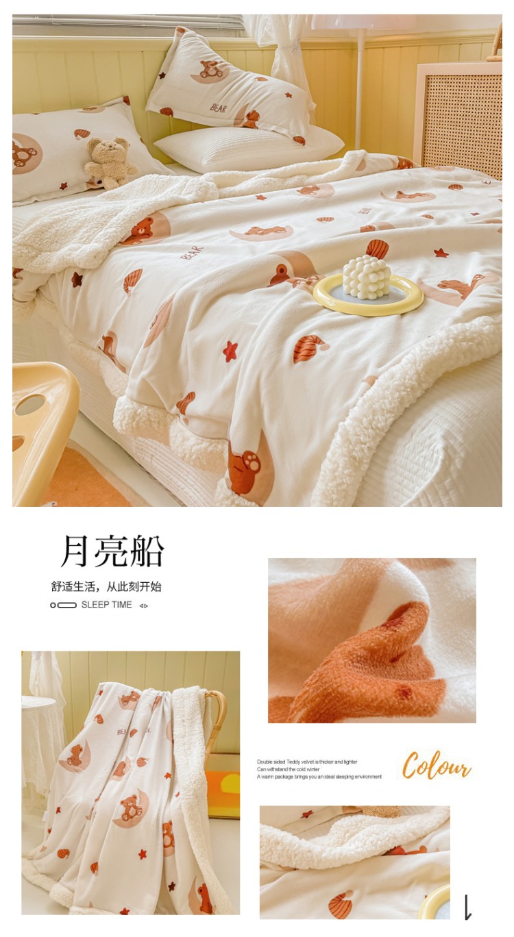 商品名称:沐慕 2022新款牛奶绒拼羊羔绒毛毯 月亮船