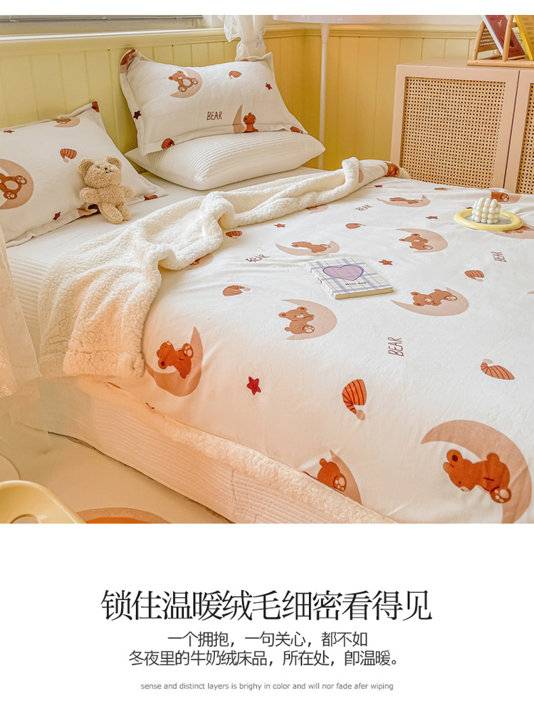 (总)沐慕 2025新款A类200g加厚雪花绒180g牛奶绒四件套,黄油小熊,爱心小熊,豹纹猫咪,彩虹,草莓兔,蛋糕兔,蛋糕小兔,粉嫩郁金香,花花粉兔,可爱熊,小橘子,星星月亮,熊猫伙伴,雪纳瑞,字母萌宠