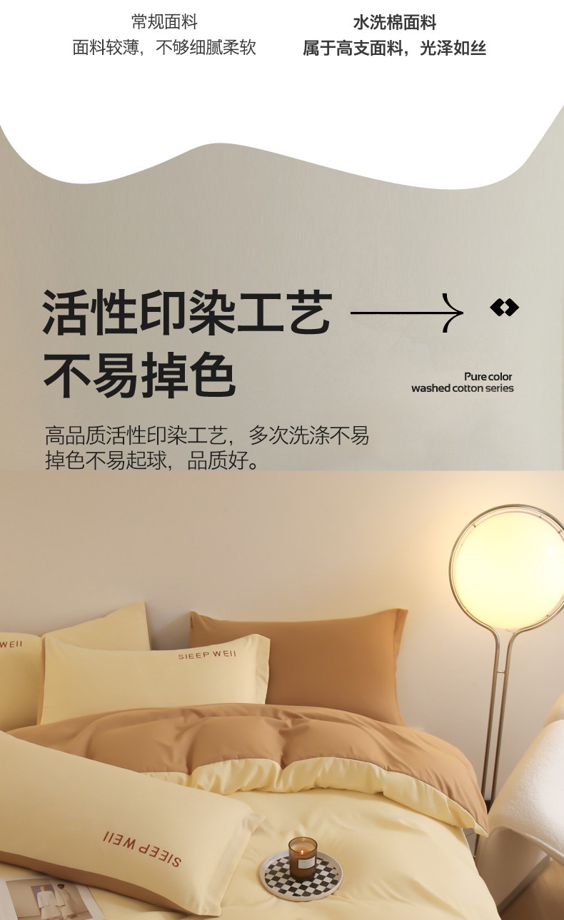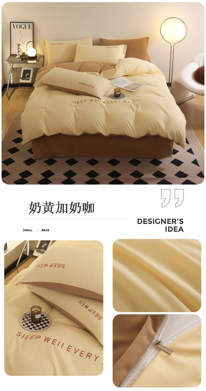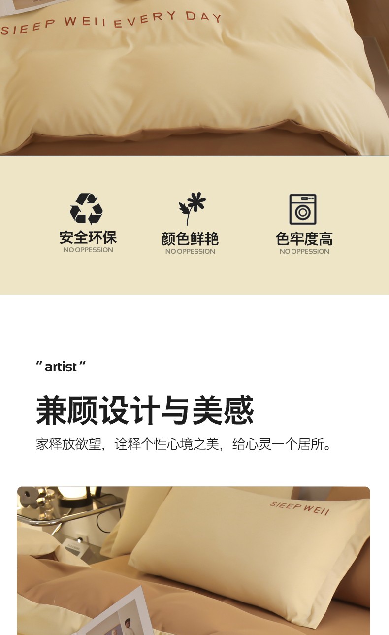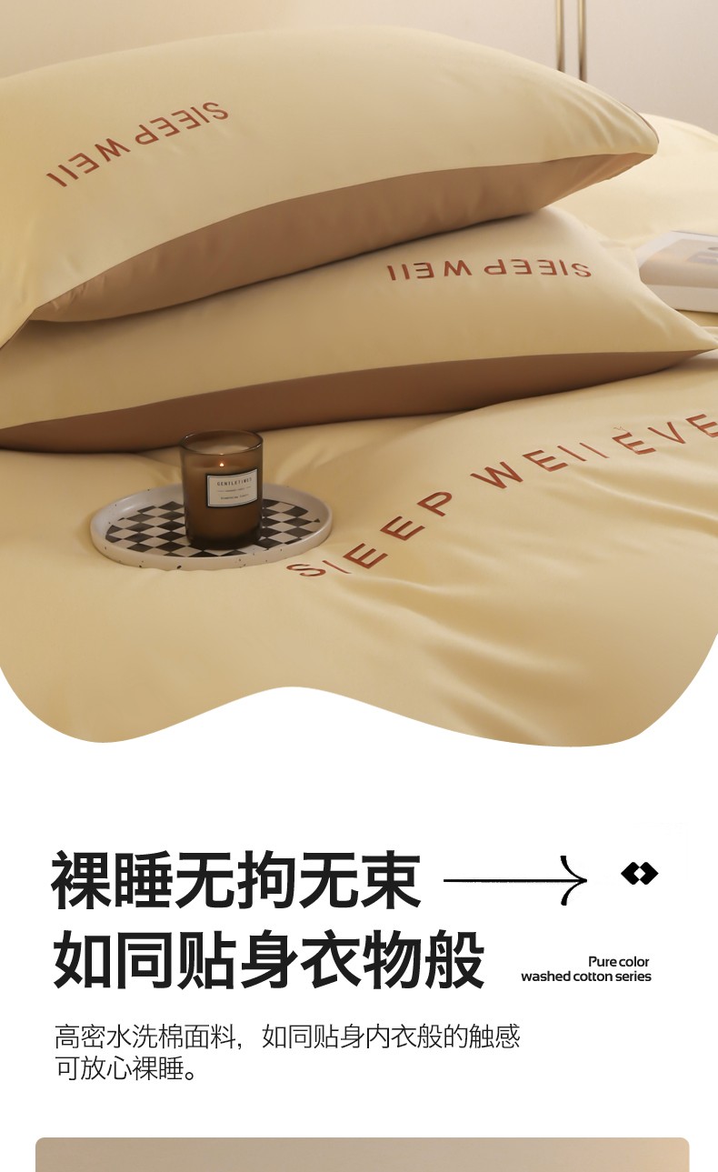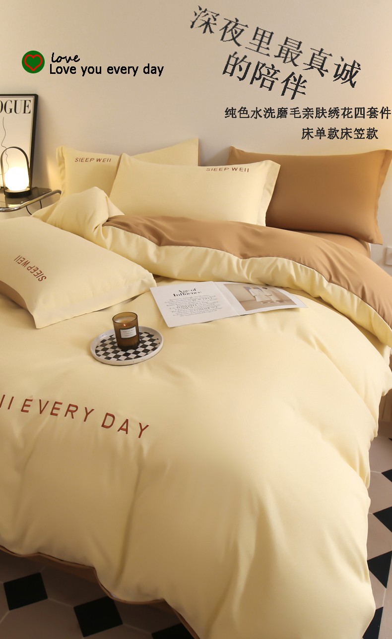 当前位置: 91家纺网 > 商品网购 > 床品套件 > 四件套 > 普通磨毛四件套 > 啊雅家居纯色水洗磨毛亲肤绣花床单款床笠款四套件 奶黄加奶咖