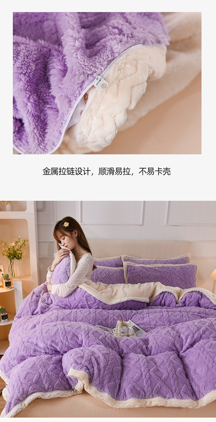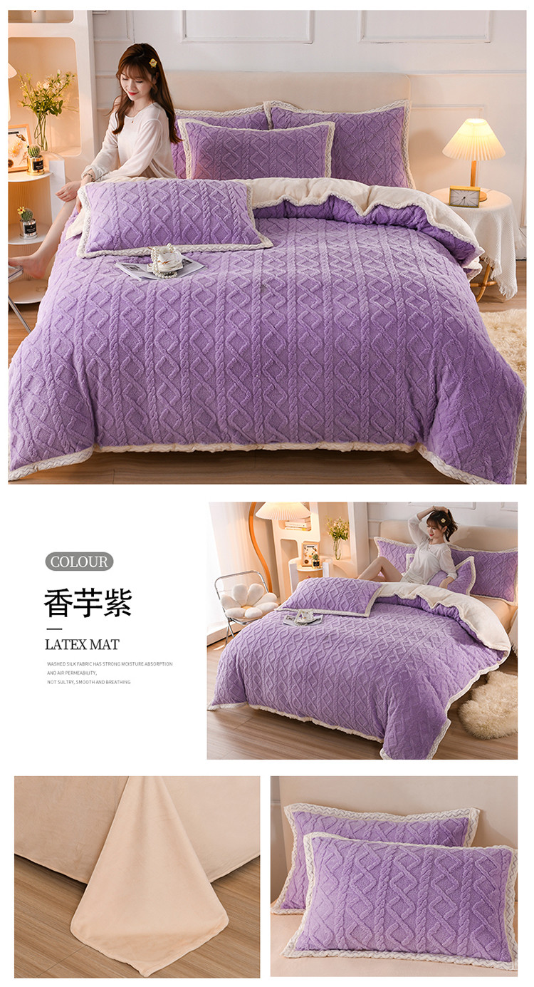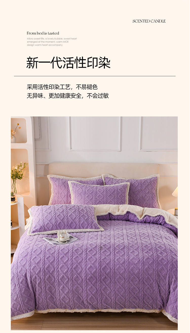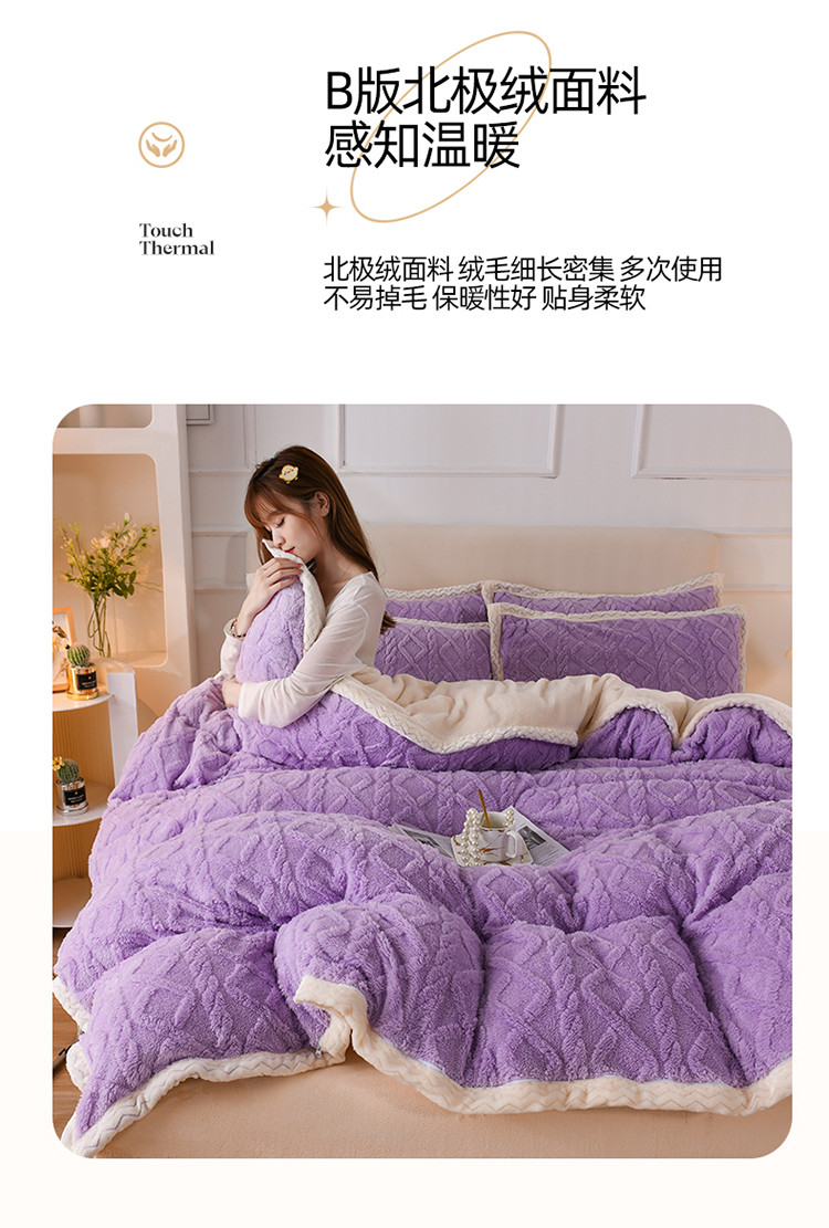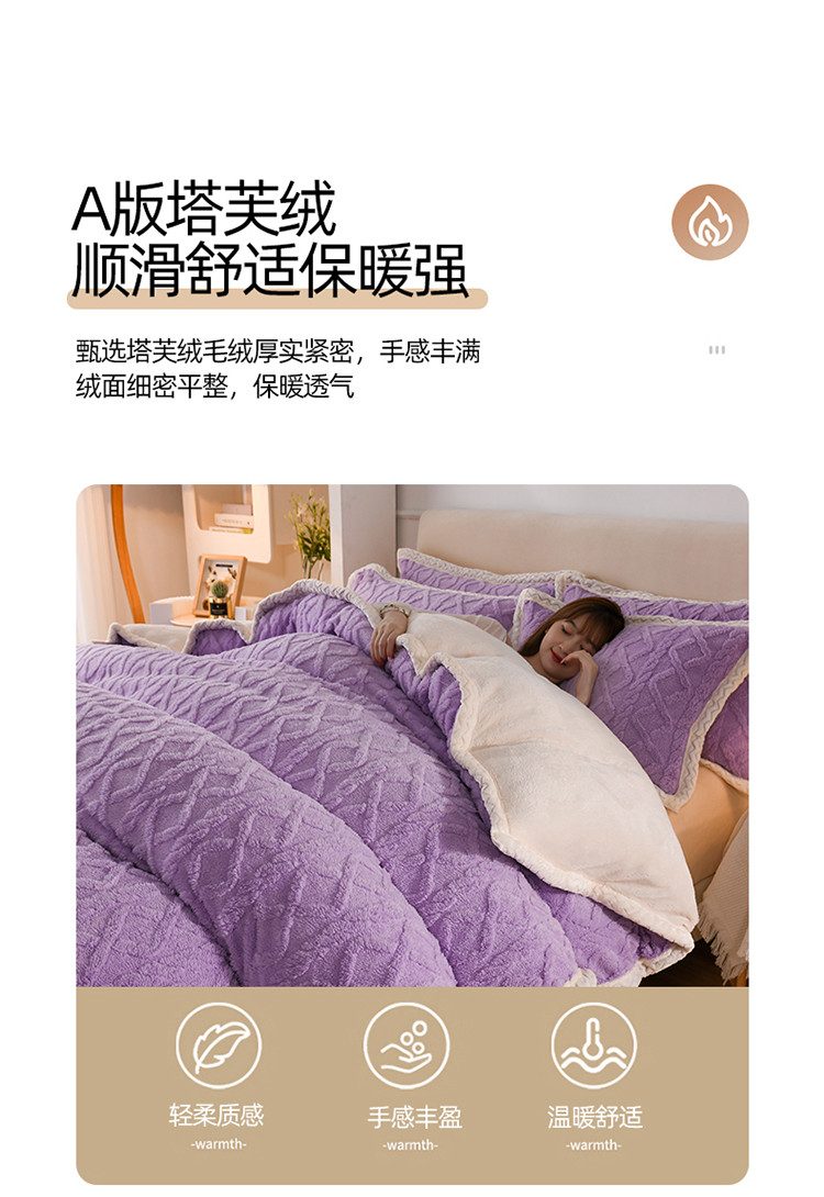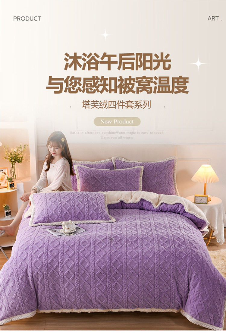 当前位置: 91家纺网 > 商品网购 > 床品套件 > 四件套 > 贝贝绒四件套 > 迷仙巢 2022新款塔夫绒拼北极绒贝贝绒包边四件套 香芋紫