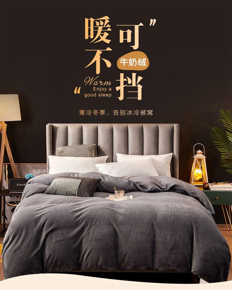 商品名称:丽美人 2022新款加厚保暖纯色简约牛奶绒系列单品被套 摩登灰