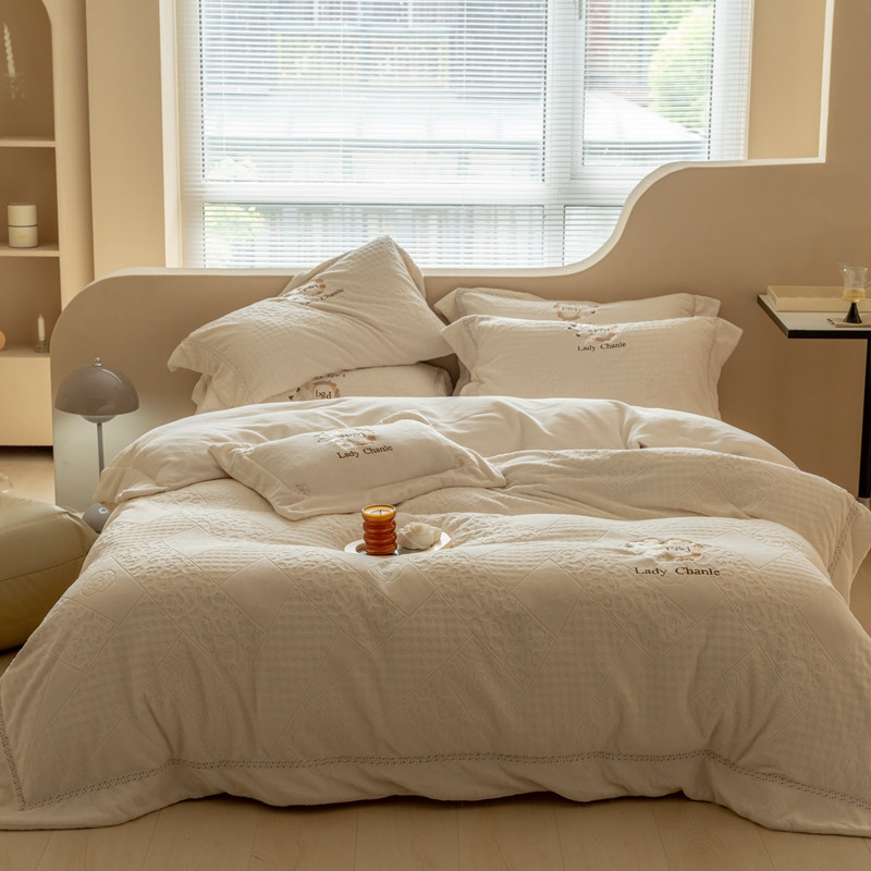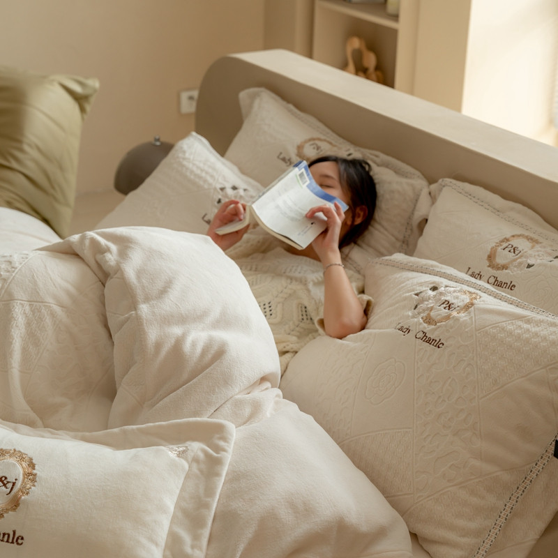 馨蕊 新款秋冬轻奢刺绣煦暖绒四件套-莫奈 (图二) 莫奈-元气白桃
