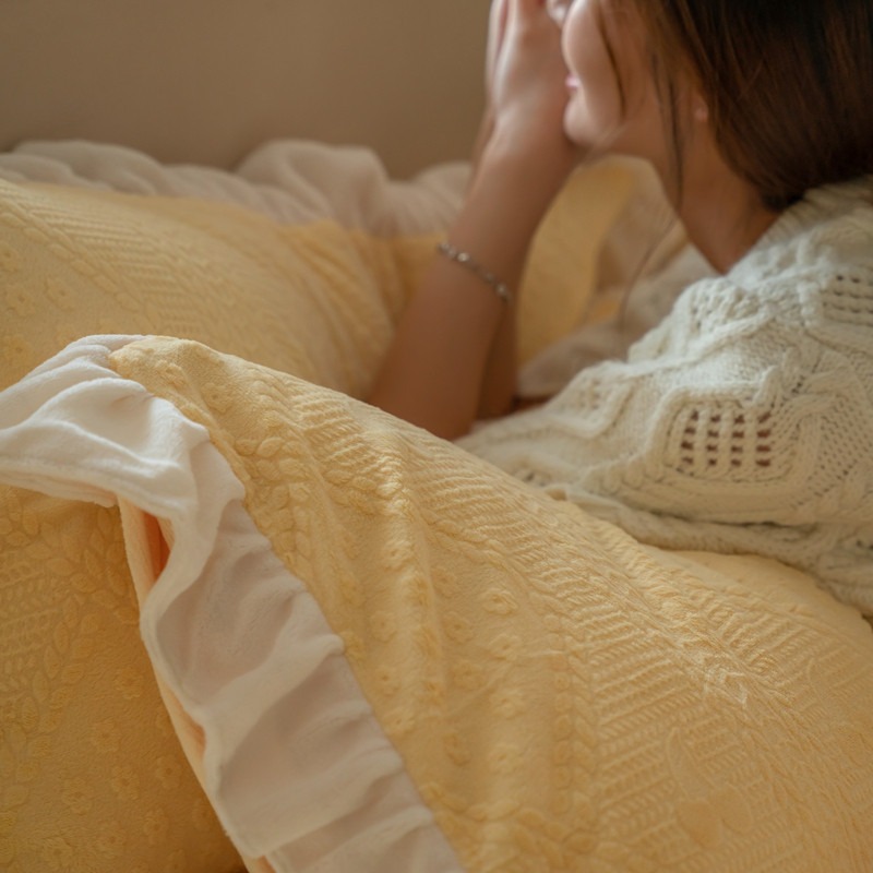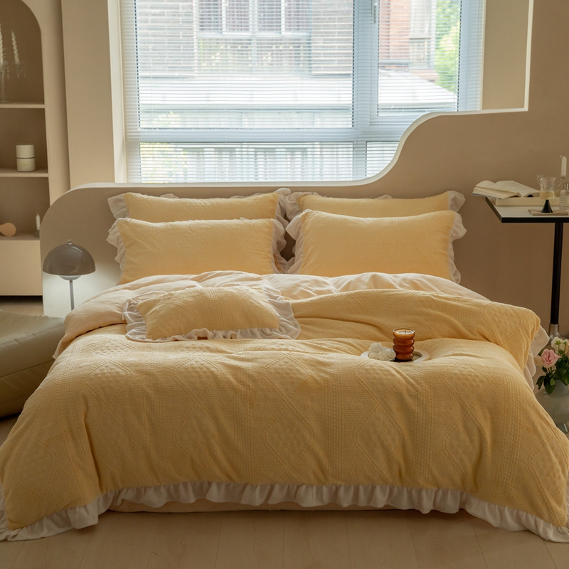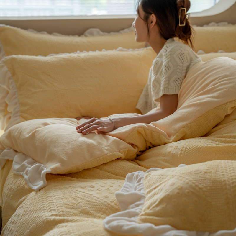 馨蕊 2022新款秋冬轻奢雕花绒煦暖绒四件套-温妮 温妮-氧气黄