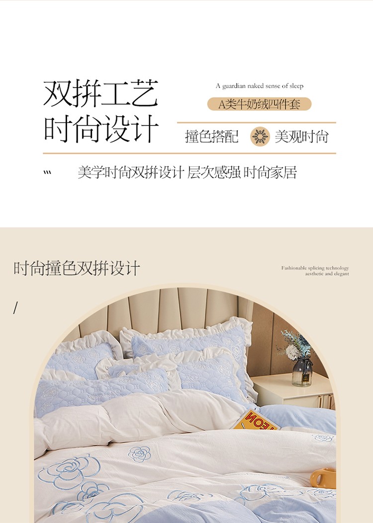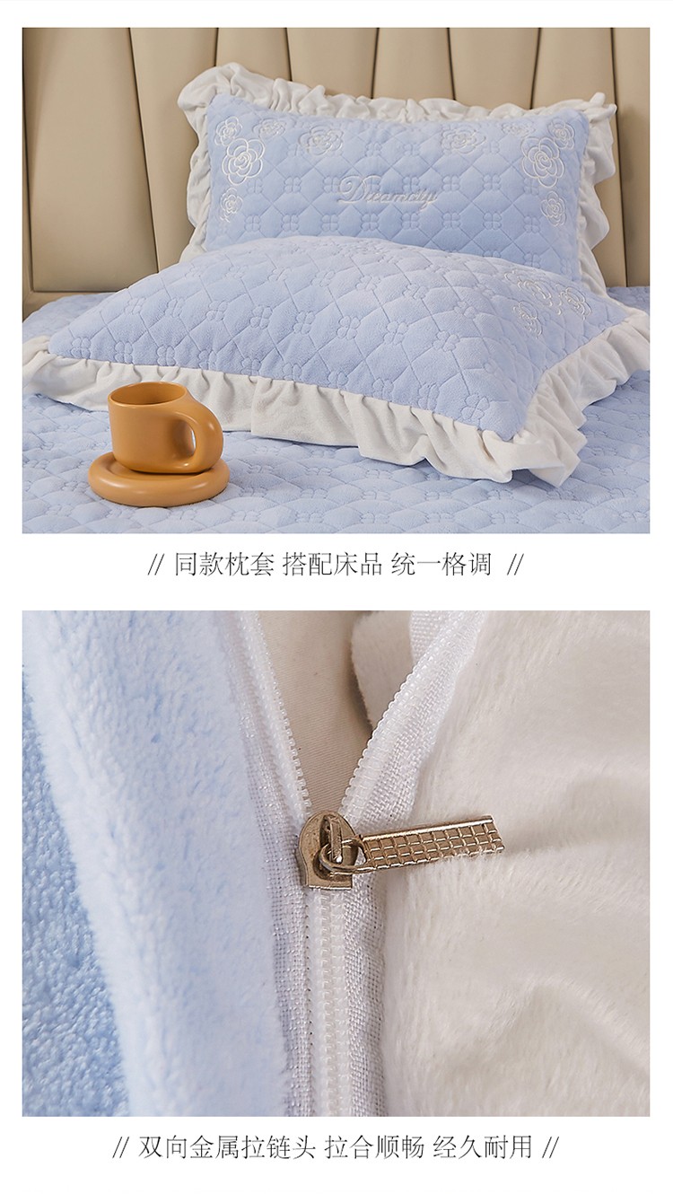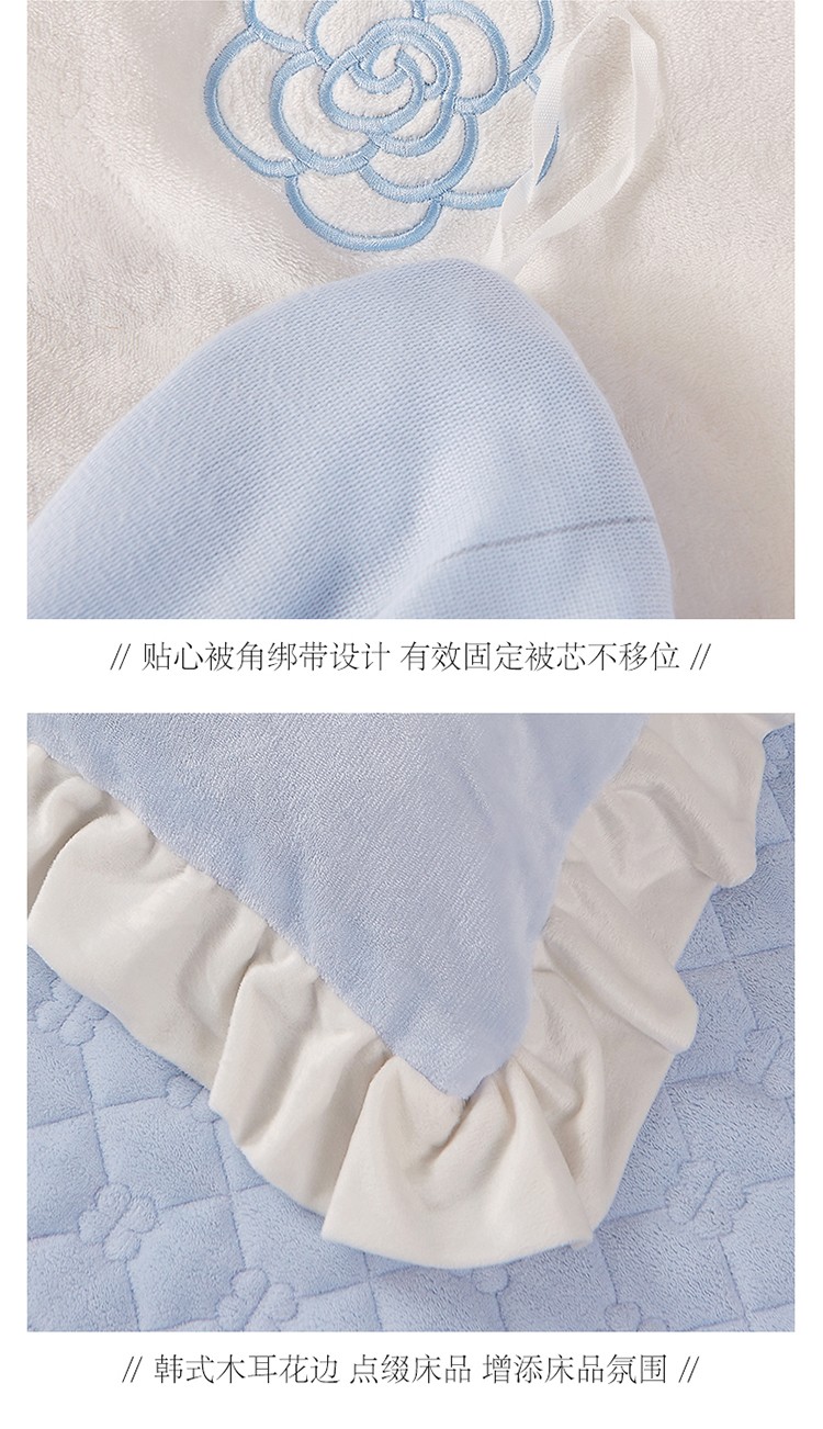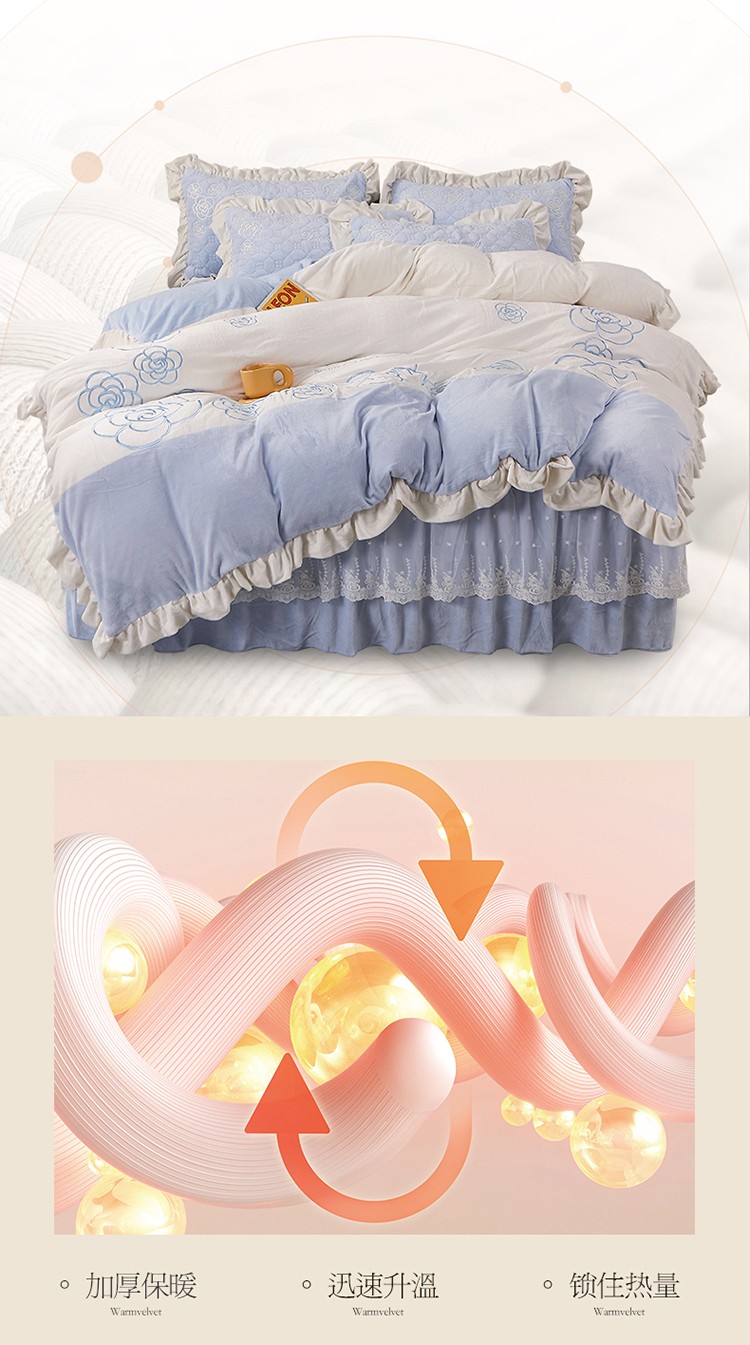 • 91家纺网 家纺一手货源 找家纺 宜凡 2022新款A类牛奶绒绣花床裙三四件套 花间序语-雪青