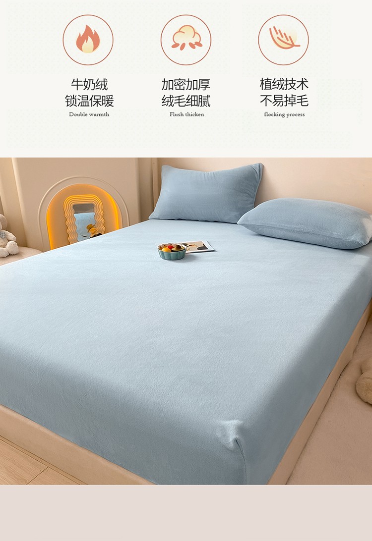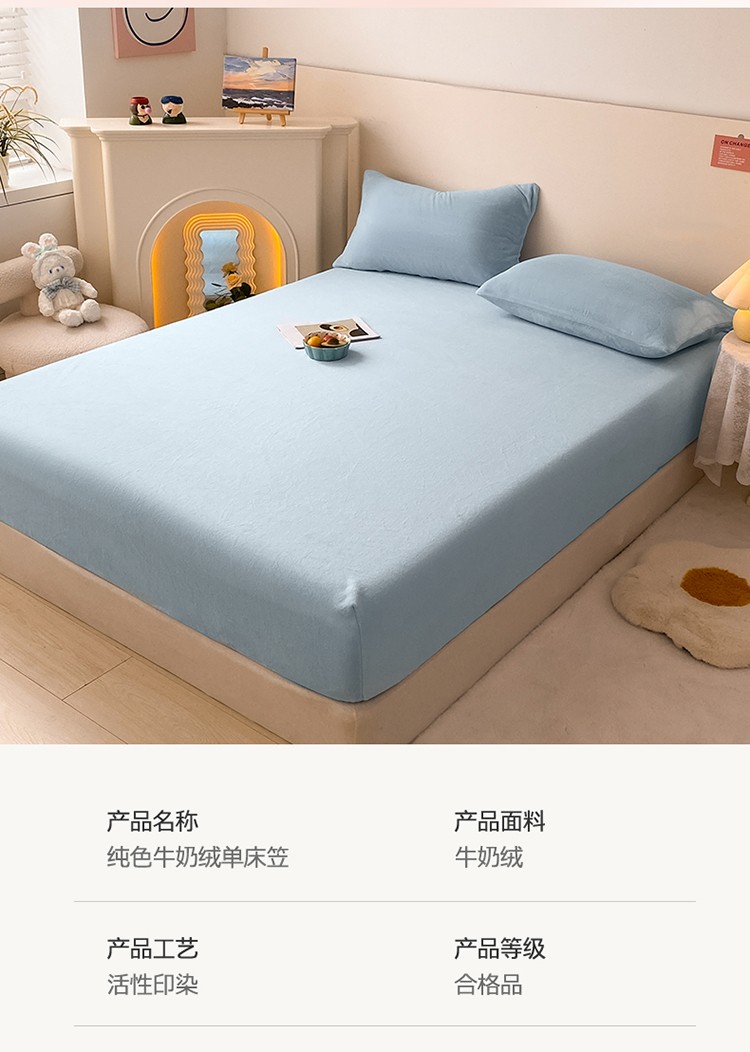 商品名称:眠帛 2022新款纯色牛奶绒单床笠 蓝灰