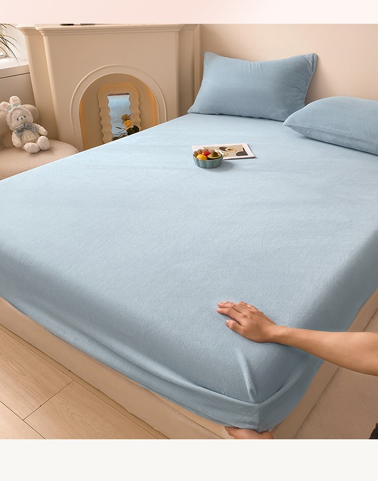 眠帛 2022新款纯色牛奶绒单床笠 蓝灰