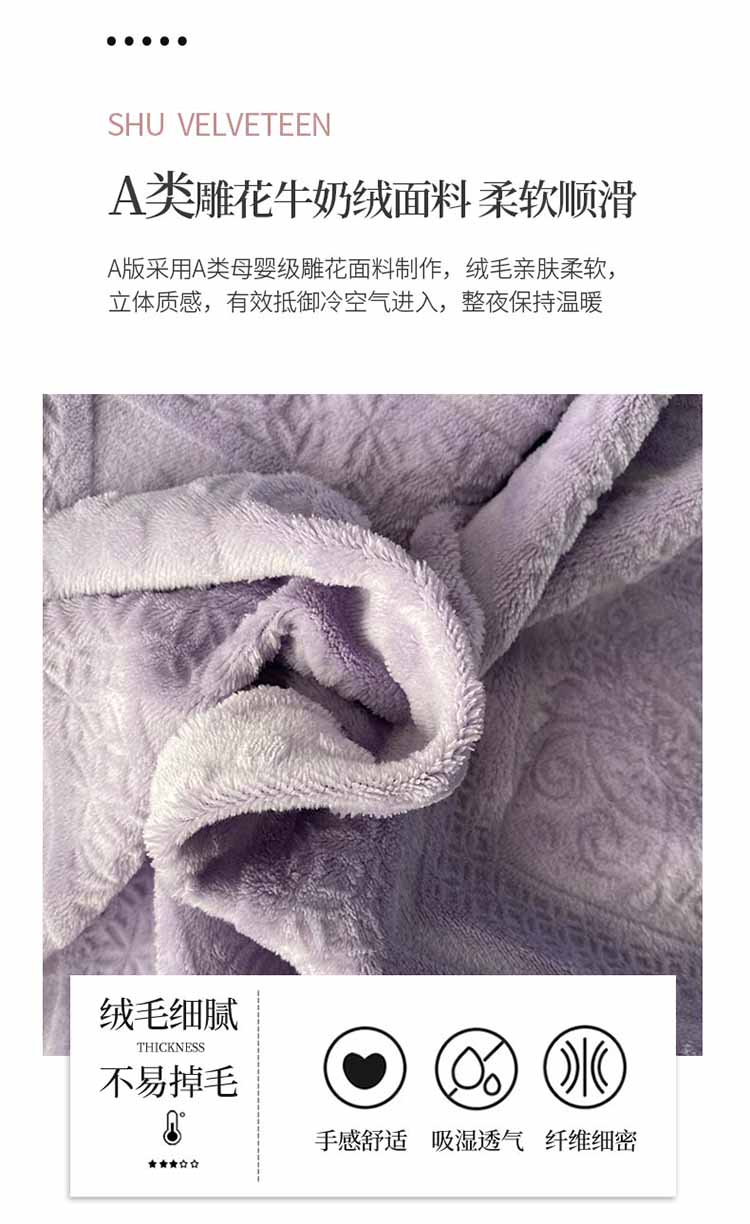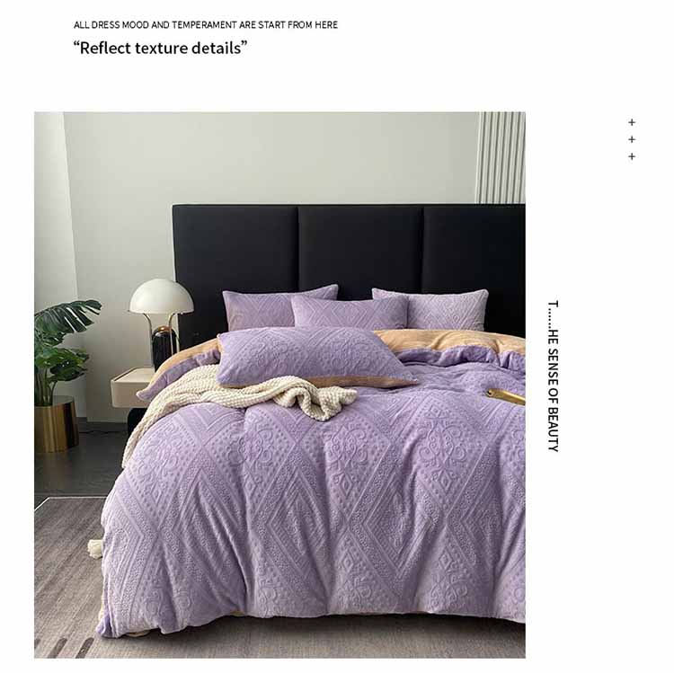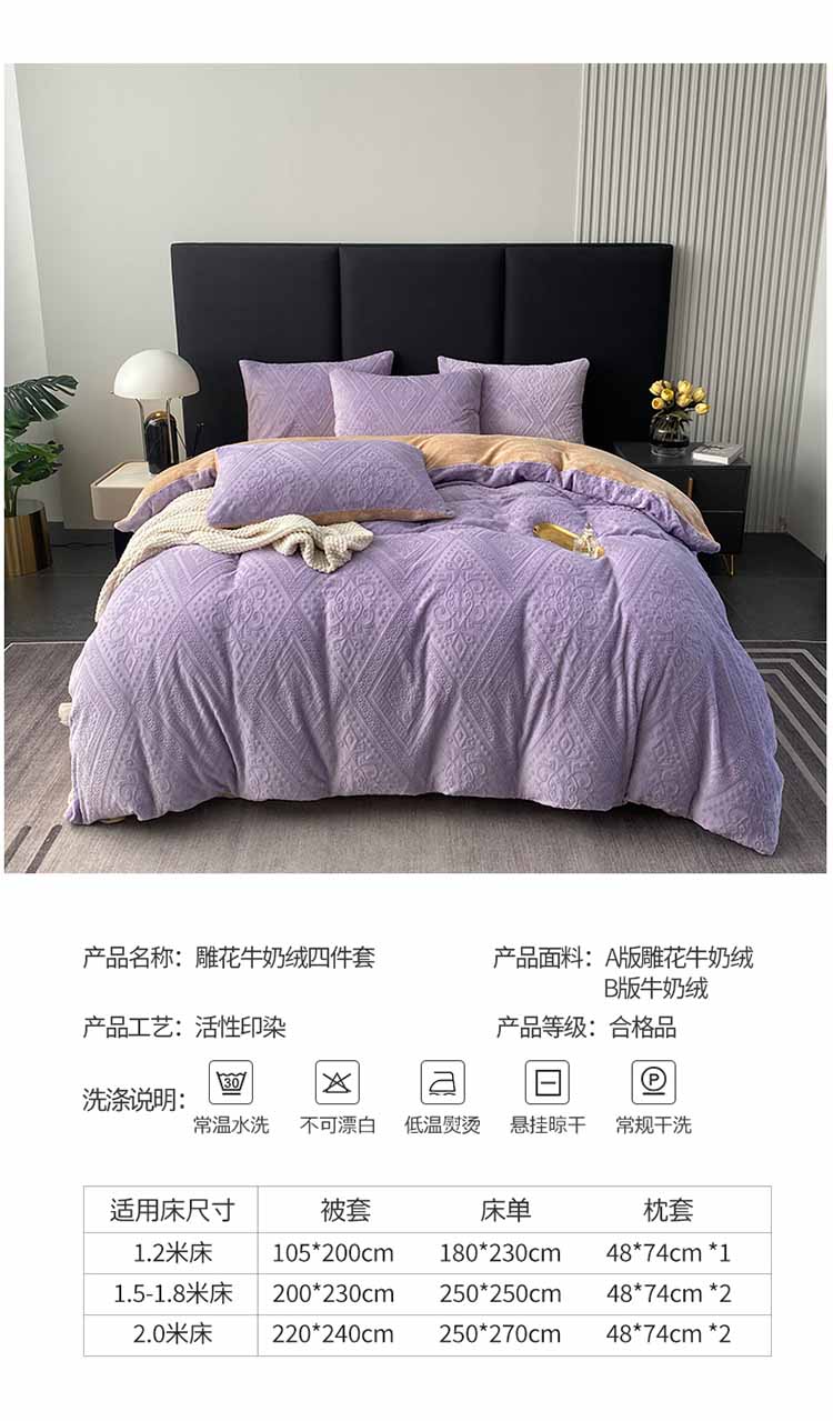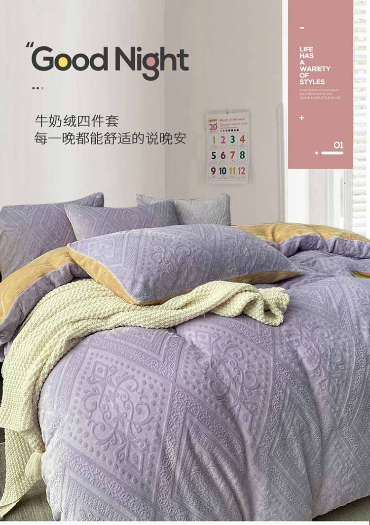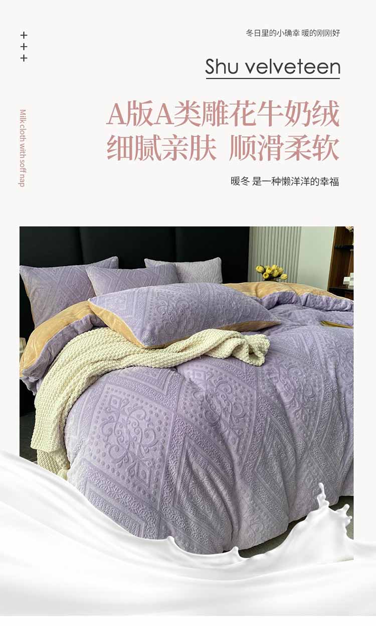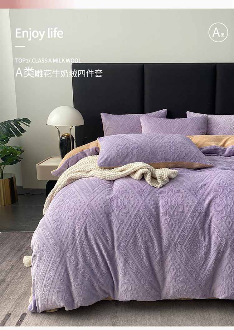 商品名称:铠畅 2023新款230克牛奶绒烂花邂逅系列四件套 邂逅浅紫