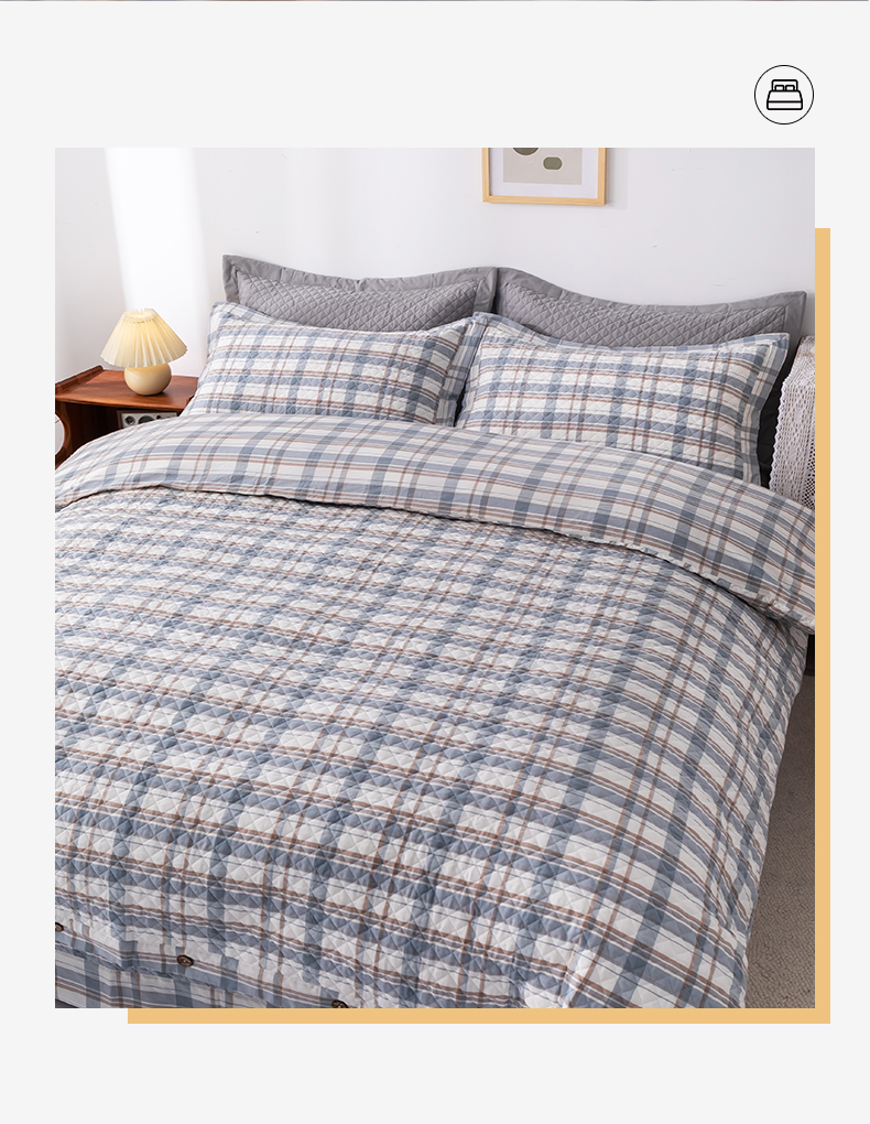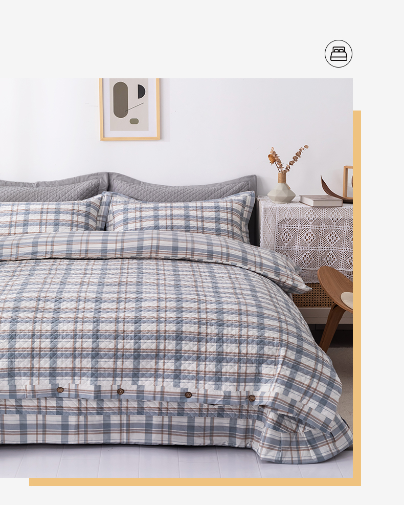 优乐家纺 2025新款全棉四件套水洗纯棉夹棉绗缝加厚被罩 纽爱格兰