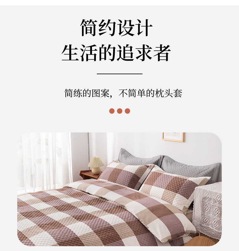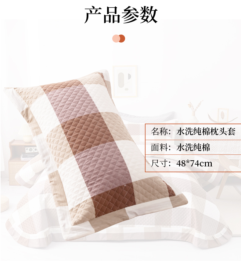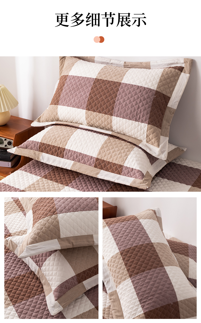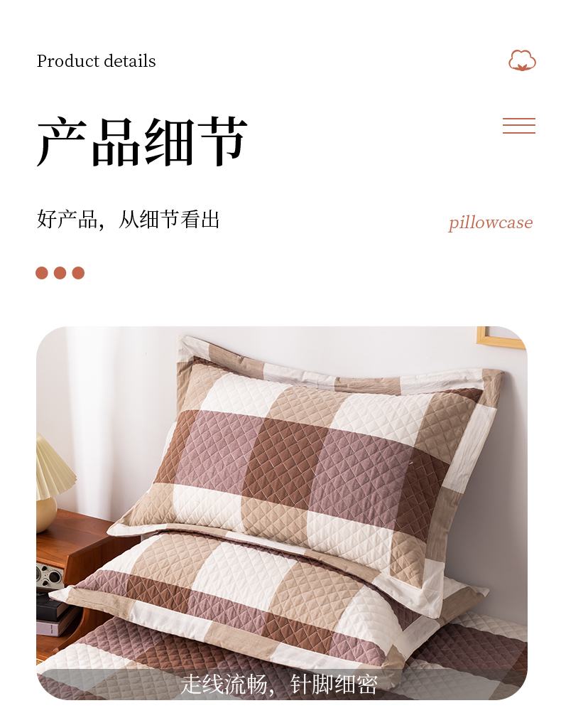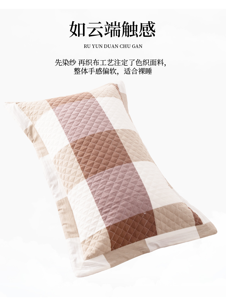 商品名称:优乐家纺 2025新款全棉枕套水洗纯棉夹棉绗缝加厚枕芯罩 咖大格