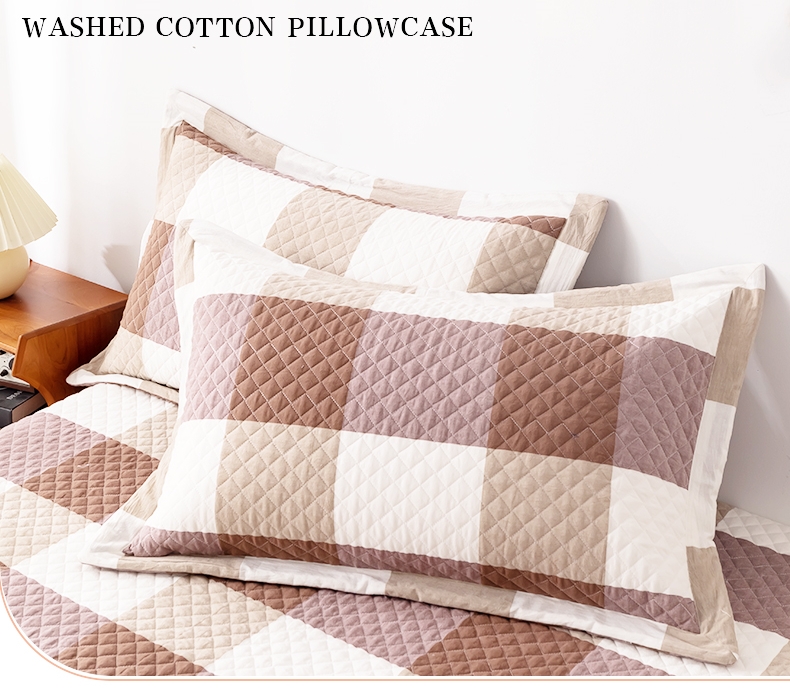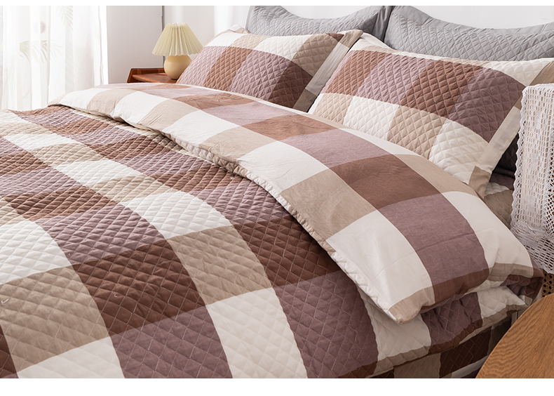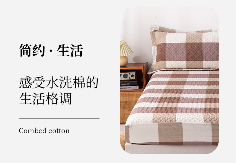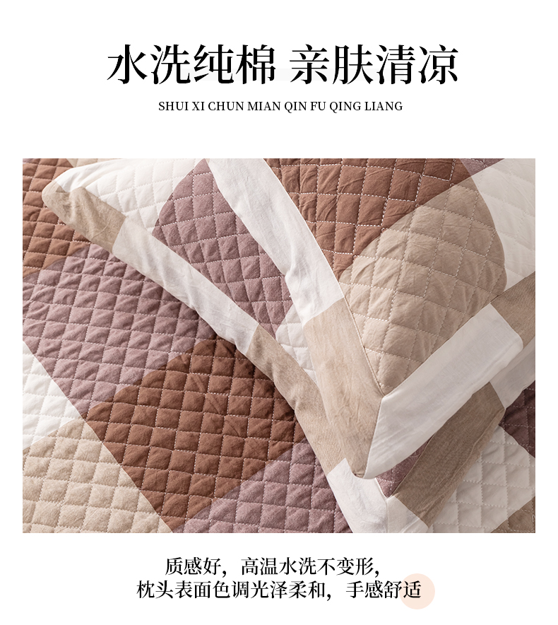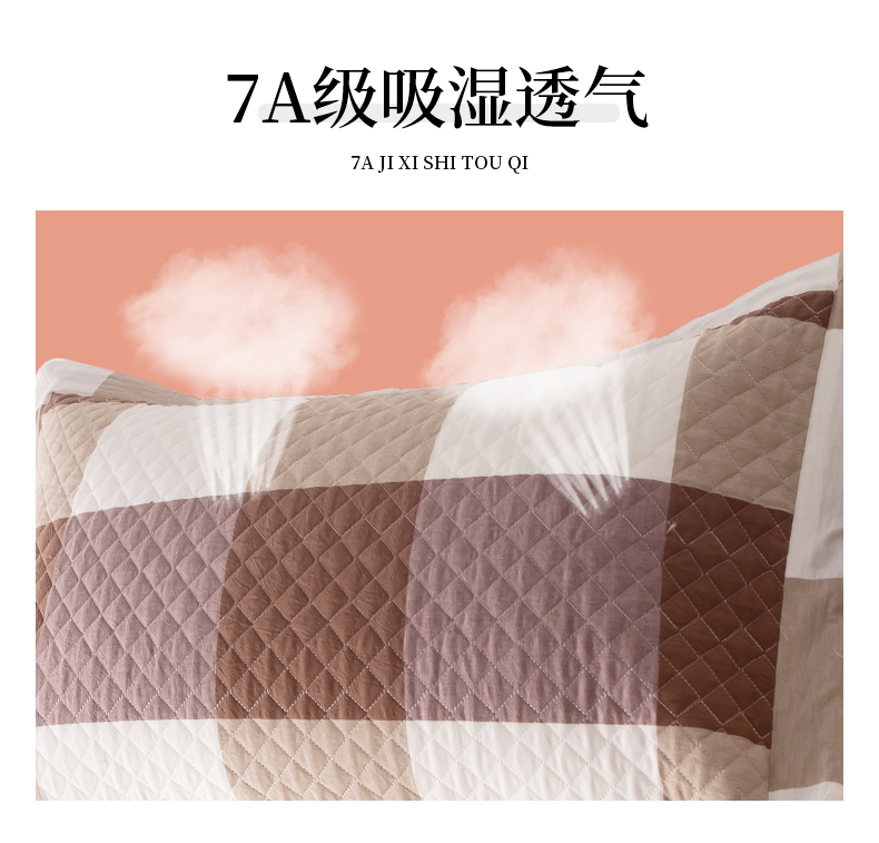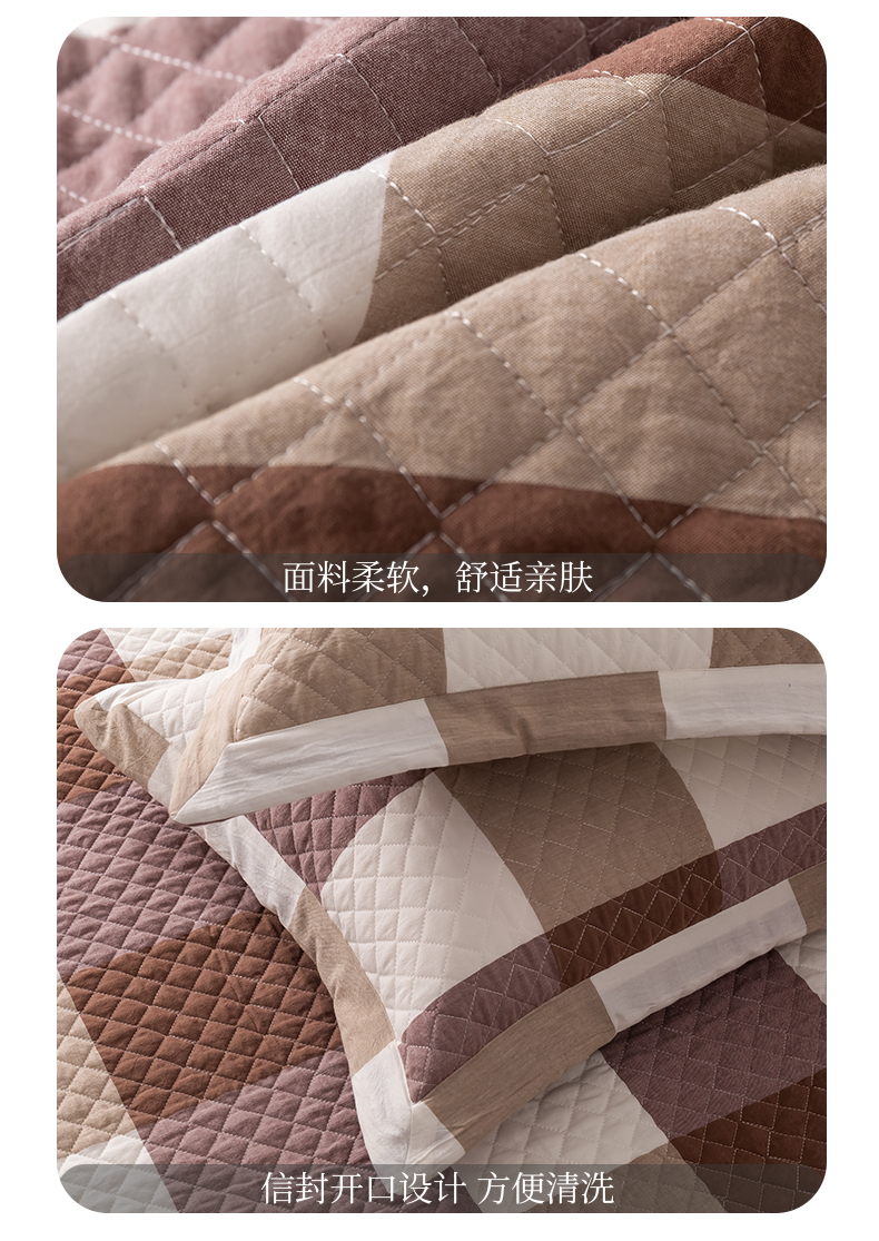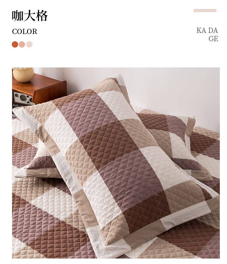 商品名称:优乐家纺 2025新款全棉枕套水洗纯棉夹棉绗缝加厚枕芯罩 咖大格
