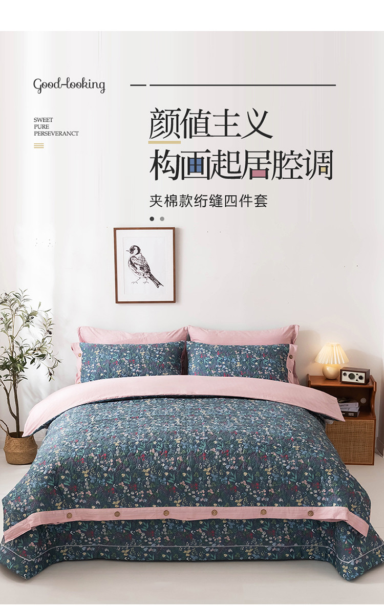 当前位置: 91家纺网 > 商品网购 > 床品套件 > 四件套 > 全棉普通四件套 > 优乐家纺 2023新款全棉印花绗绣四件套 向阳花开